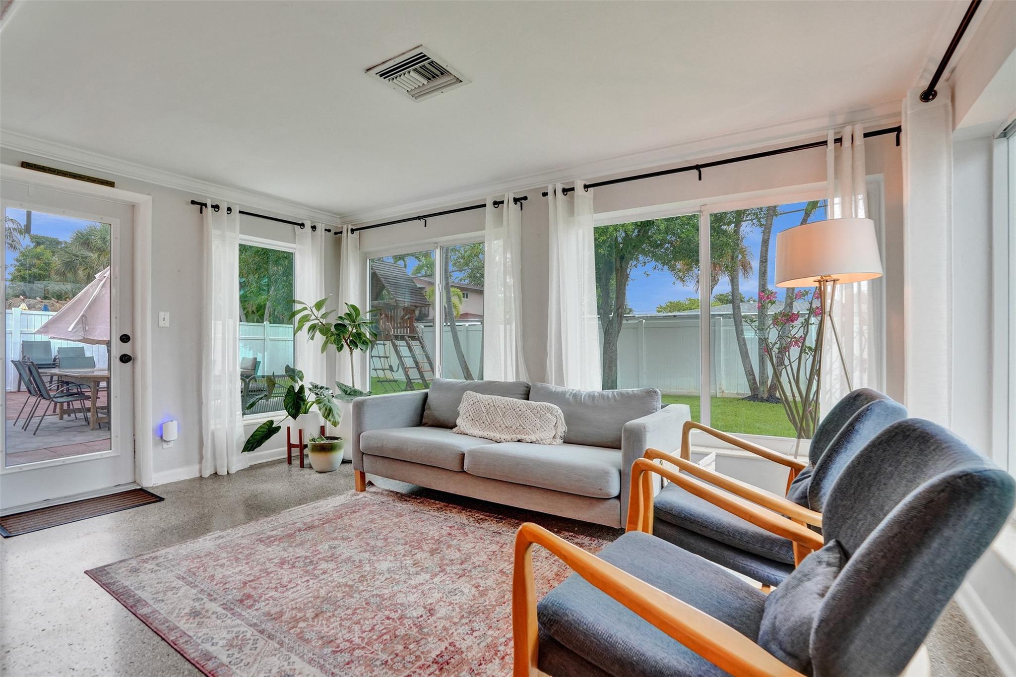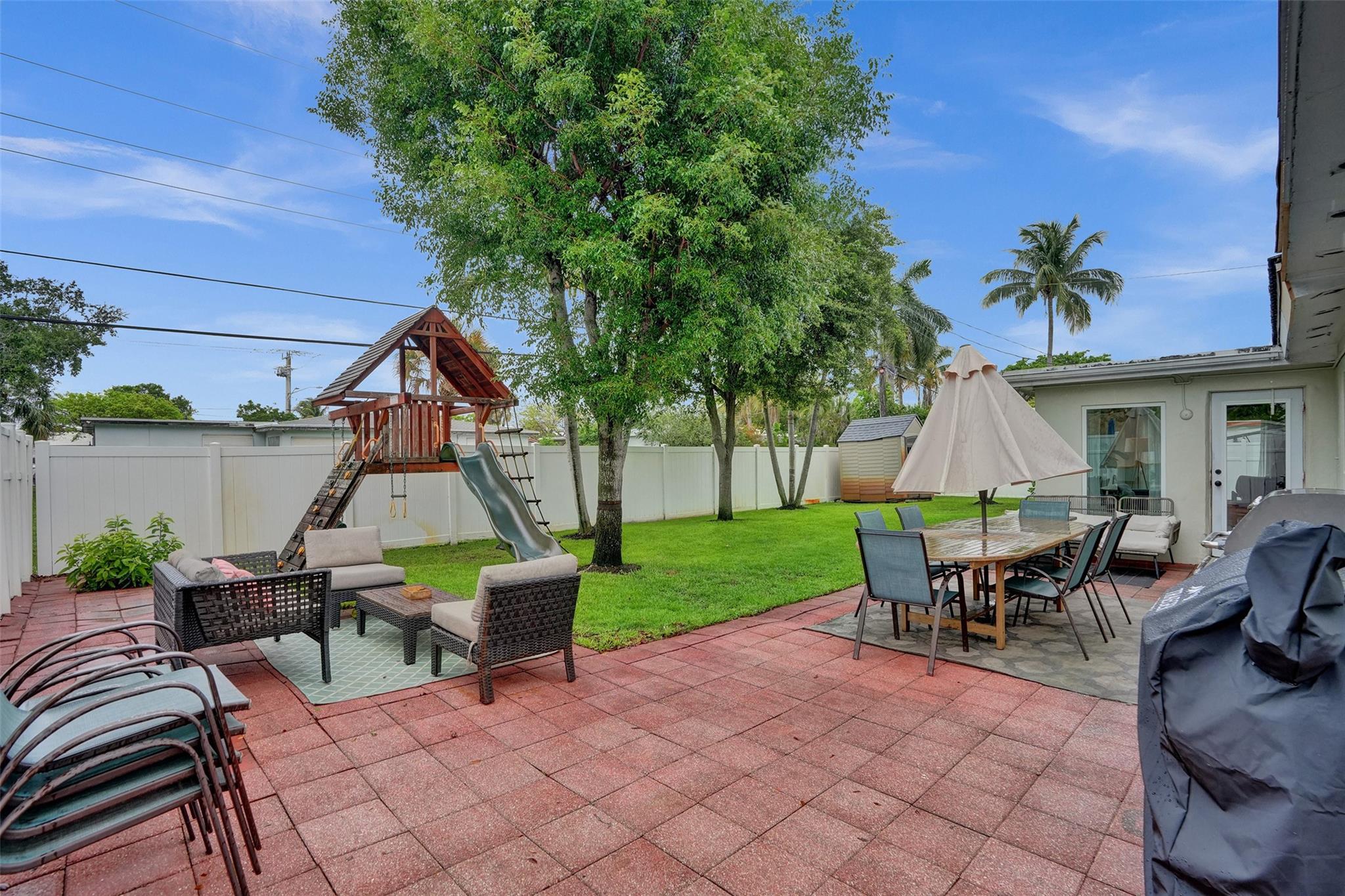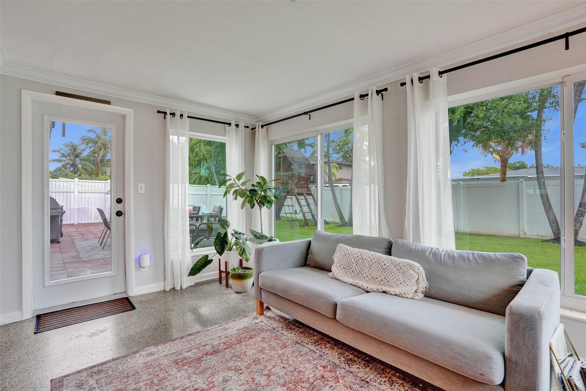 Charming 3 Bed 2 Bath home in Lyons Park neighborhood ready for you to move right in! There is so much natural light in this home. All impact windows & doors. Full home generator. Great layout with open living space leading into an inviting Sunroom. Spacious kitchen features white cabinets, cabinetry lighting, granite counters, reverse osmosis water filter and stainless appliances. Bedrooms have a split floor plan with nice sized rooms. Well-kept terrazzo floor throughout. Enjoy your dedicated laundry room/mud room! Fully fenced yard with nice greenery, sprinklers on well water and plenty of room to add a pool. Outside BBQ connected to natural gas. 1 car garage. Storage shed. Very friendly neighborhood. NO HOA. Conveniently located near the newly renovated Pompano Pier, shopping & dining.