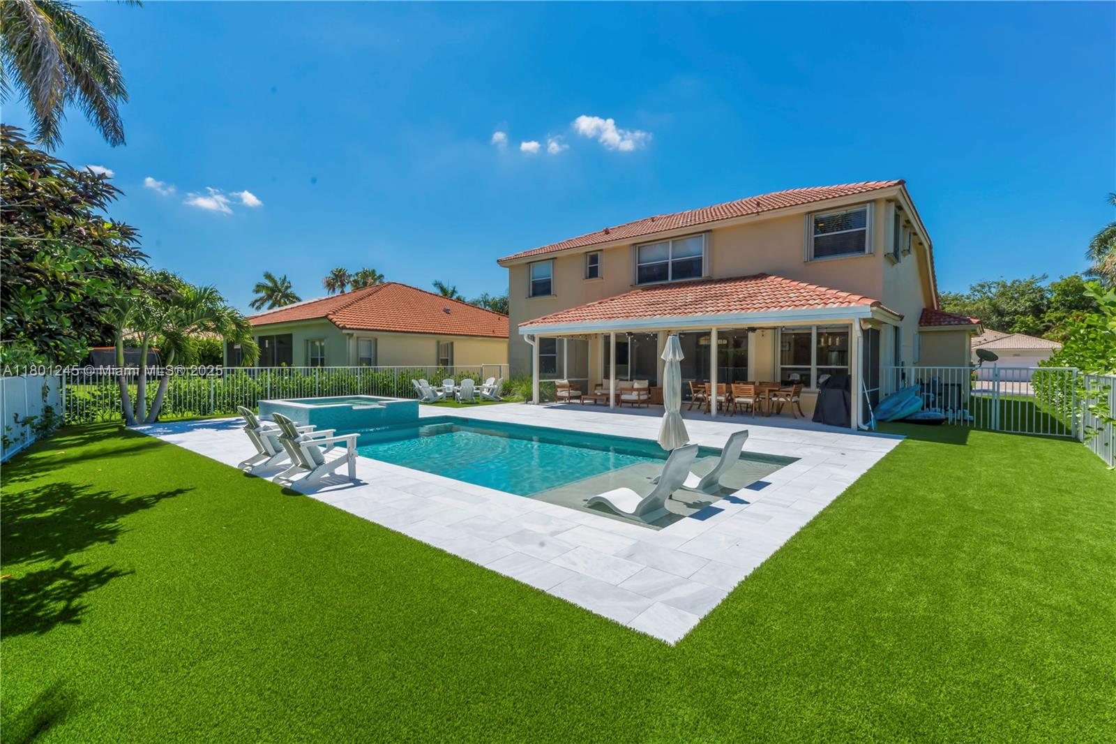 Welcome to the home of your dreams. This 5-bedroom, 3-bath home offers the perfect blend of comfort and style. A desirable layout includes 1 bedroom and a full bath on the main level. The home also features a mudroom with laundry and a generous walk-in pantry. The open-concept gourmet kitchen overlooks the inviting family room, where expansive windows provide spectacular views of the sparkling, newly built pool and spa—perfect for sunny summer days. Step outside to a large covered patio, ideal for entertaining. Upstairs, you'll find 4 additional bedrooms, including a luxurious primary suite that serves as a peaceful retreat. The en-suite bathroom offers a soaking tub, separate shower, and large walk-in closet. All bedrooms are generously sized and there is plenty of storage throughout.