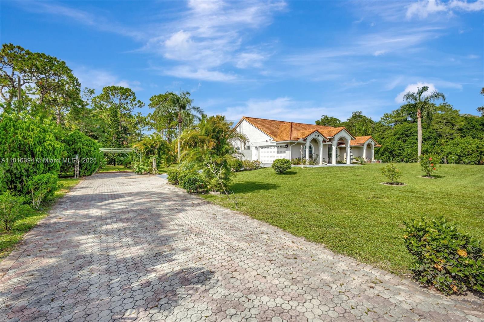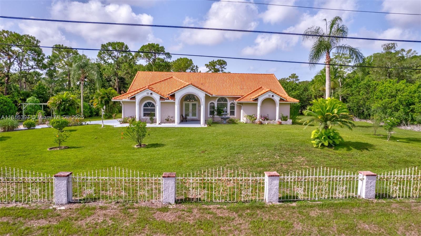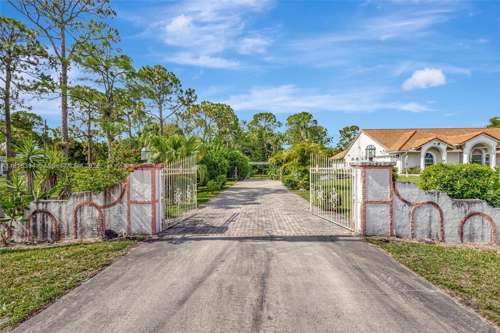 Experience luxury living surrounded by nature in this beautifully upgraded 4-bedroom, 2-bath home on 1.14 serene acres in Loxahatchee. Filled with natural light, it features elegant bathrooms and a spa-style master suite with a spacious walk-in closet. New tile flooring complements an open layout with a breakfast bar. Ideal for entertaining, the expansive covered patio and pergola overlook a fully fenced yard with double-gated entry—perfect for RV, boat storage, or equestrian use. Extras include mango and avocado trees, two wells, a sprinkler system, 2 car garage, ADT security, new roof (2019). Conveniently located minutes from shopping, dining, Lion Country Safari, and top hospitals, this home offers a rare blend of comfort, privacy, and upscale features. Make it yours today!