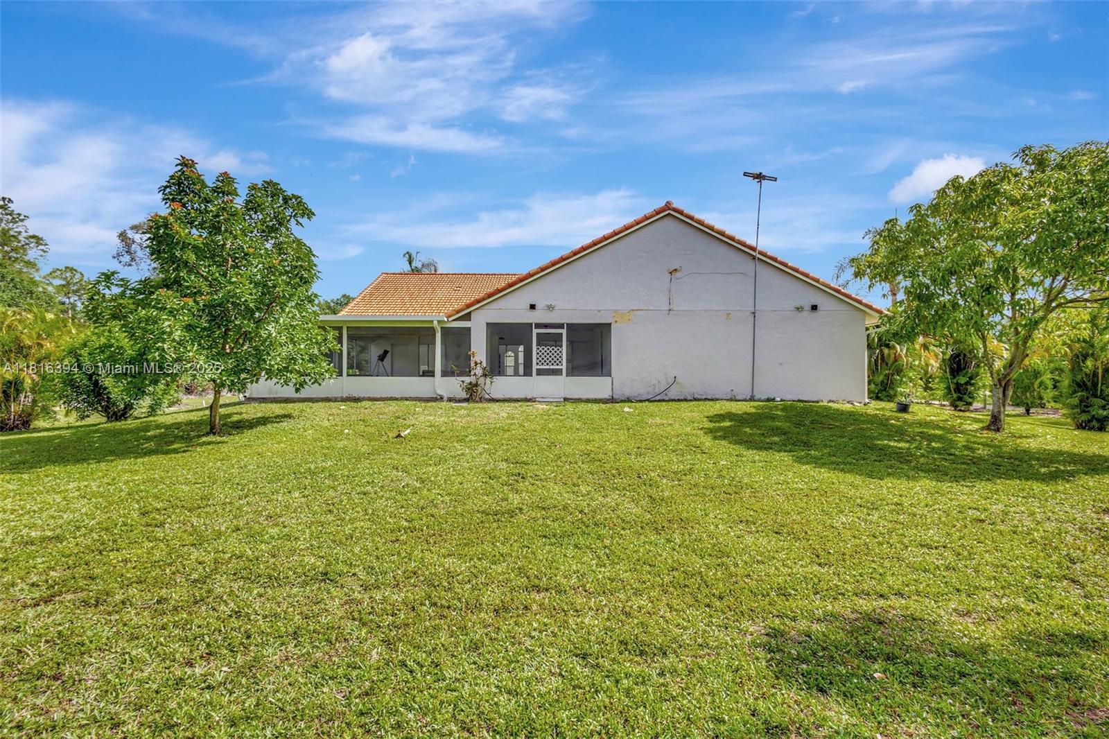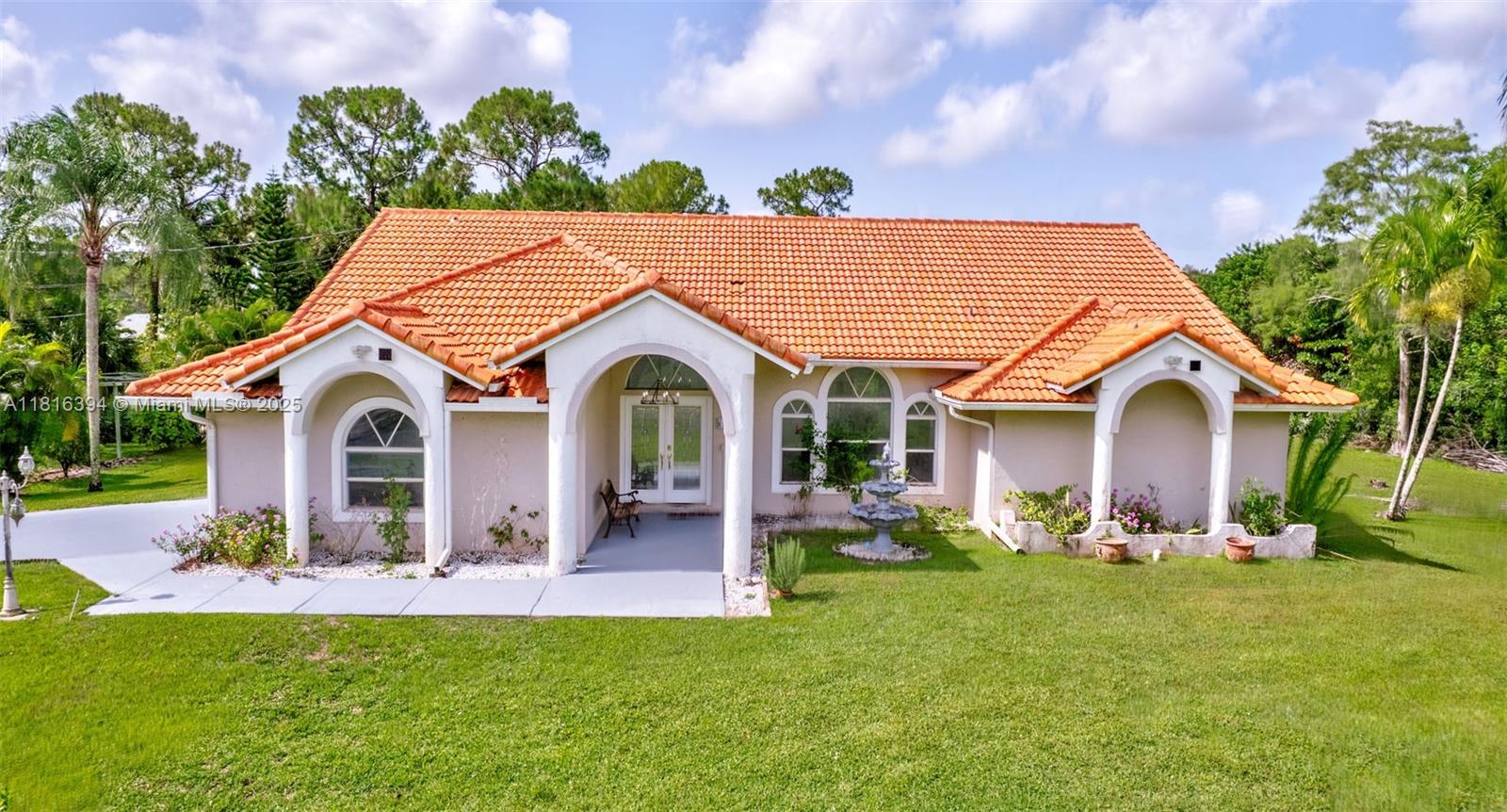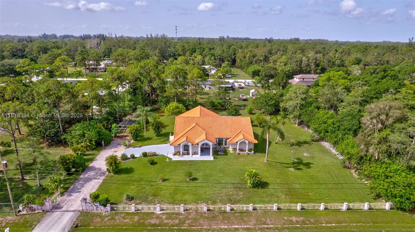 Experience luxury living surrounded by nature in this beautifully upgraded 4-bedroom, 2-bath home on 1.14 serene acres in Loxahatchee. Filled with natural light, it features elegant bathrooms and a spa-style master suite with a spacious walk-in closet. New tile flooring complements an open layout with a breakfast bar. Ideal for entertaining, the expansive covered patio and pergola overlook a fully fenced yard with double-gated entry—perfect for RV, boat storage, or equestrian use. Extras include mango and avocado trees, two wells, a sprinkler system, 2 car garage, ADT security, new roof (2019). Conveniently located minutes from shopping, dining, Lion Country Safari, and top hospitals, this home offers a rare blend of comfort, privacy, and upscale features. Make it yours today!