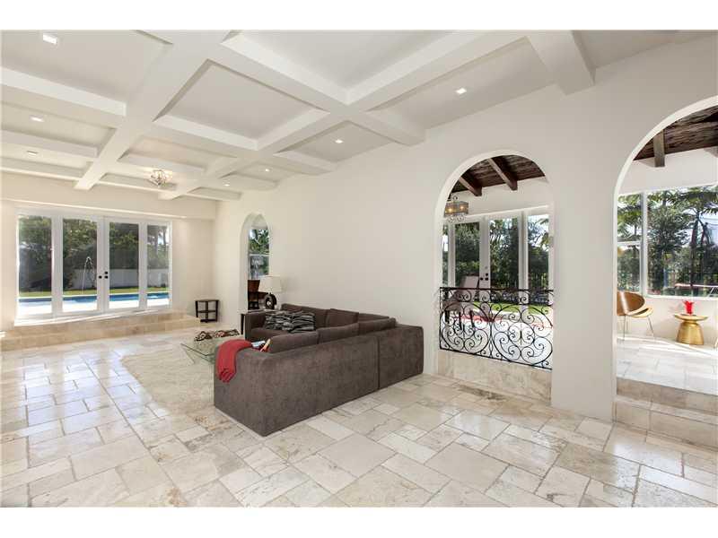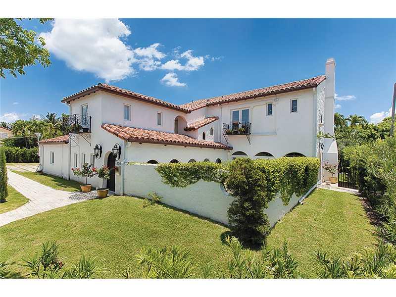 Built by Carl Fisher, this 2-story Mediterranean home is situated on an oversized corner lot and enjoys fabulous golf course views. Features 5 bedrooms, 5.5 baths, beautiful gourmet kitchen, Italian stone floors on the first level and Brazilian cherry woo d floors on the second level. Heated pool, hurricane resistant windows. +/-4,640 Sf. of living area (as per owner).