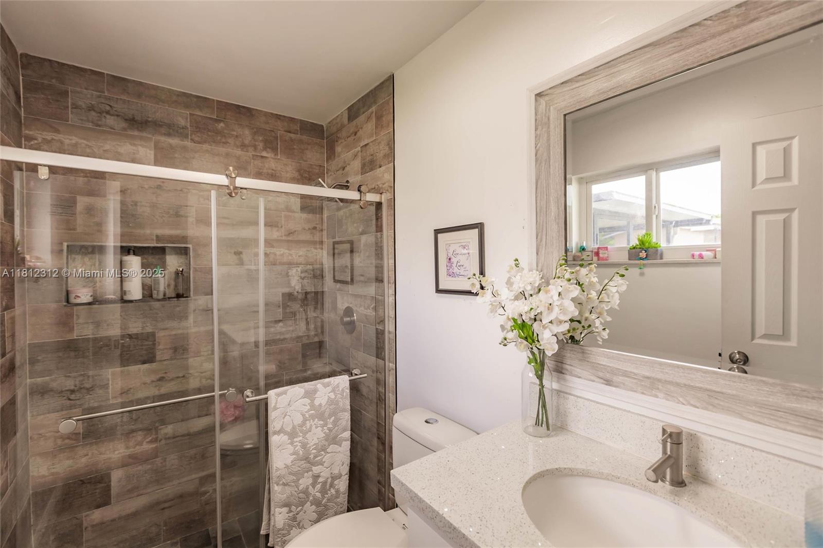 Text to schedule a showing. Beautifully maintained 3-bed, 2-bath one-story home in a peaceful neighborhood. Features open-concept living/dining, remodeled kitchen and baths, and a primary suite with a custom wall-to-wall closet. Enjoy the screened-in patio and spacious, lush backyard with well-maintained landscaping—perfect for relaxing, entertaining, or adding a pool or playset.