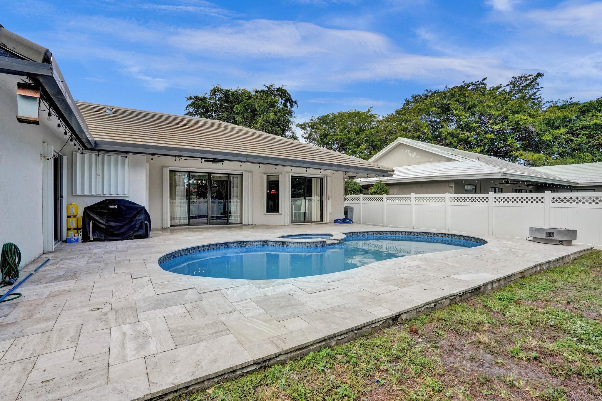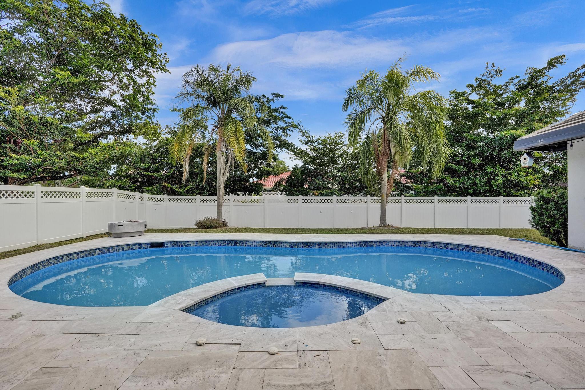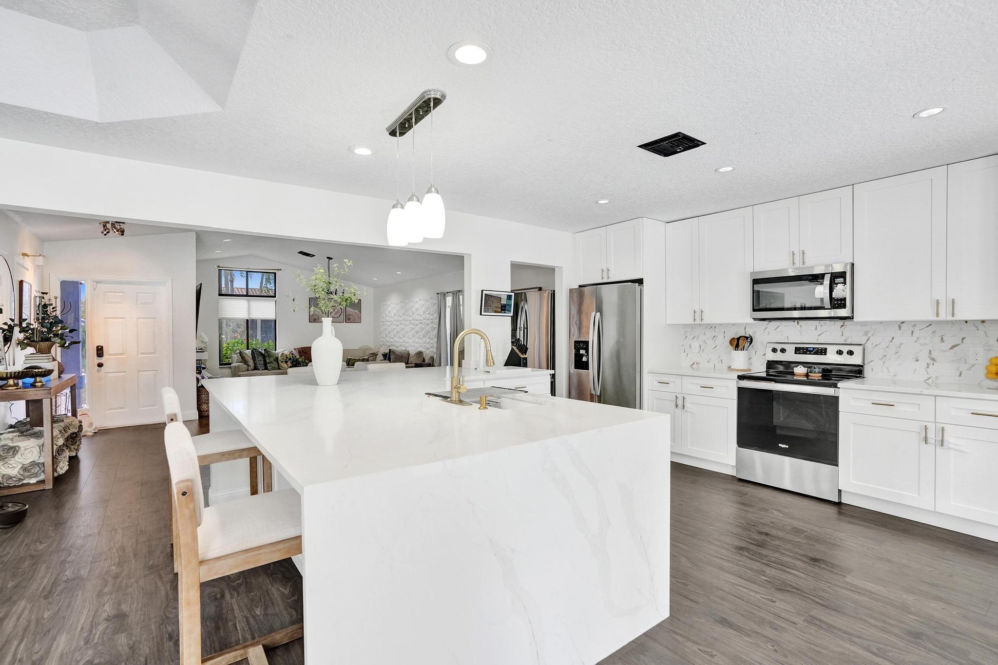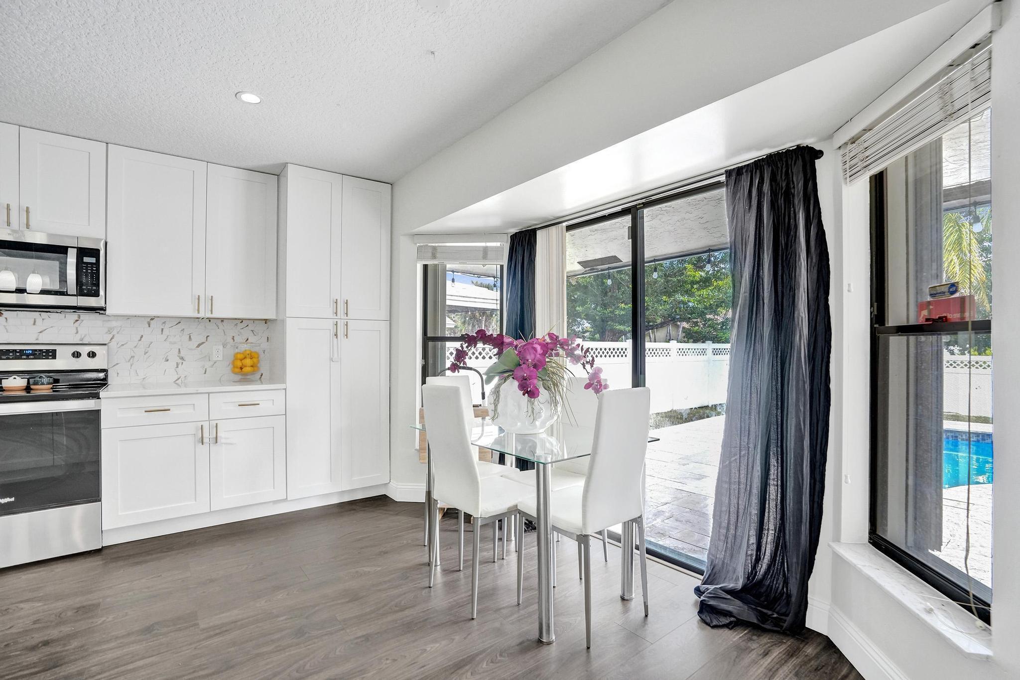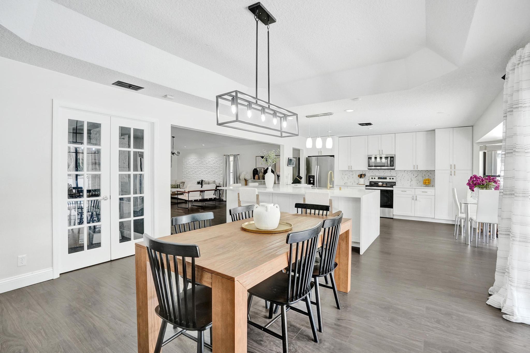Beautifully renovated 4-bedroom, 2-bathroom home with 2-car garage in the highly desirable Crossings community of Coral Springs. This move-in ready home features a spacious, open layout with vaulted ceilings, large living and dining areas, and a fully remodeled kitchen (2023) with modern cabinetry, plenty of counterspace and stainless-steel appliances. Laminate flooring throughout (2019) except the bathrooms. The oversized master suite includes a generously sized walk-in closet and direct access to the pool area. One of the bathrooms also serves as a cabana bath, offering convenience for outdoor entertaining. Enjoy your private, fenced backyard oasis, refinished pool and spa (2019). Additional updates include accordion shutters, Newer A/C (Aug 2024), and water heater (2019).