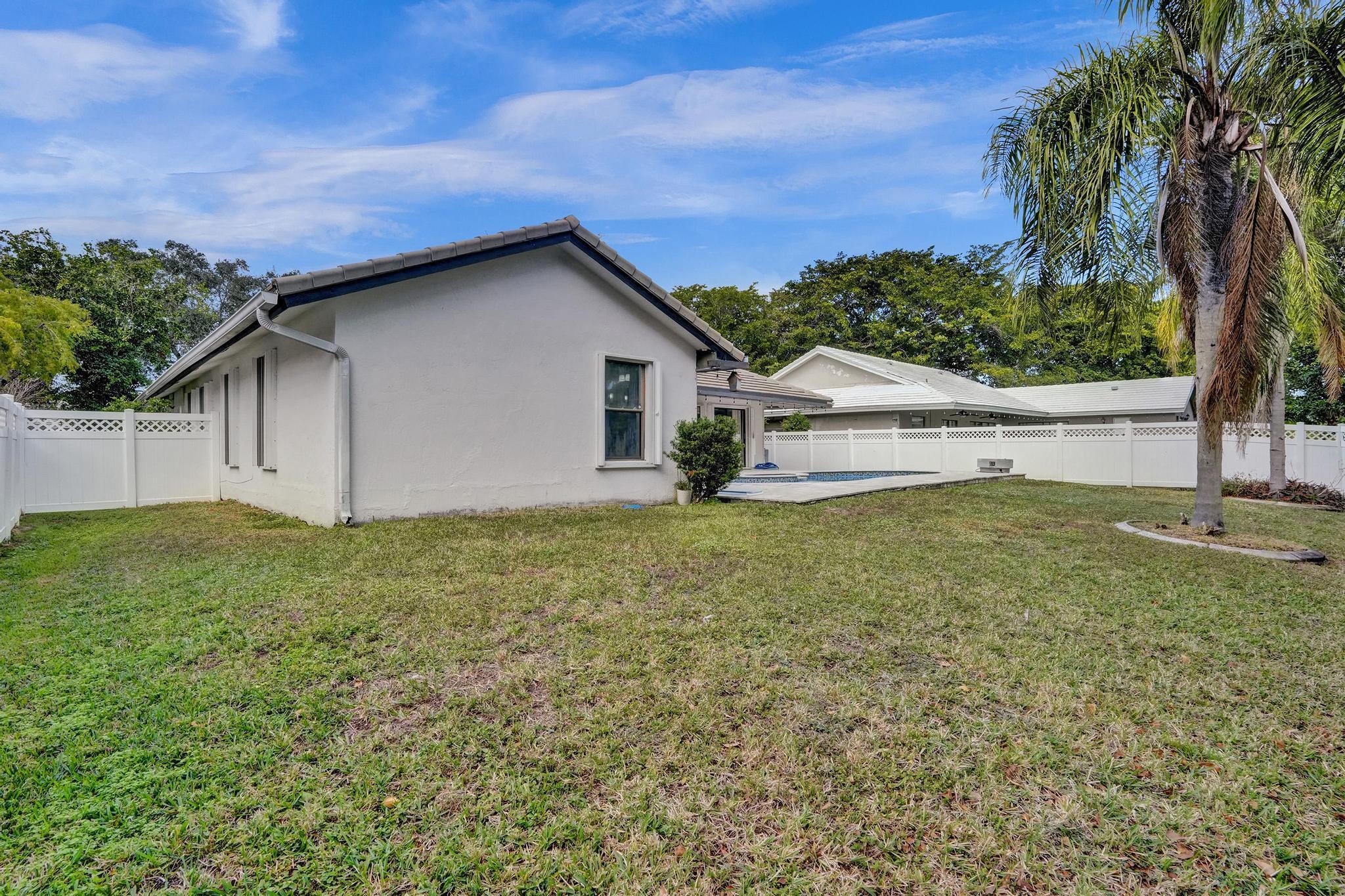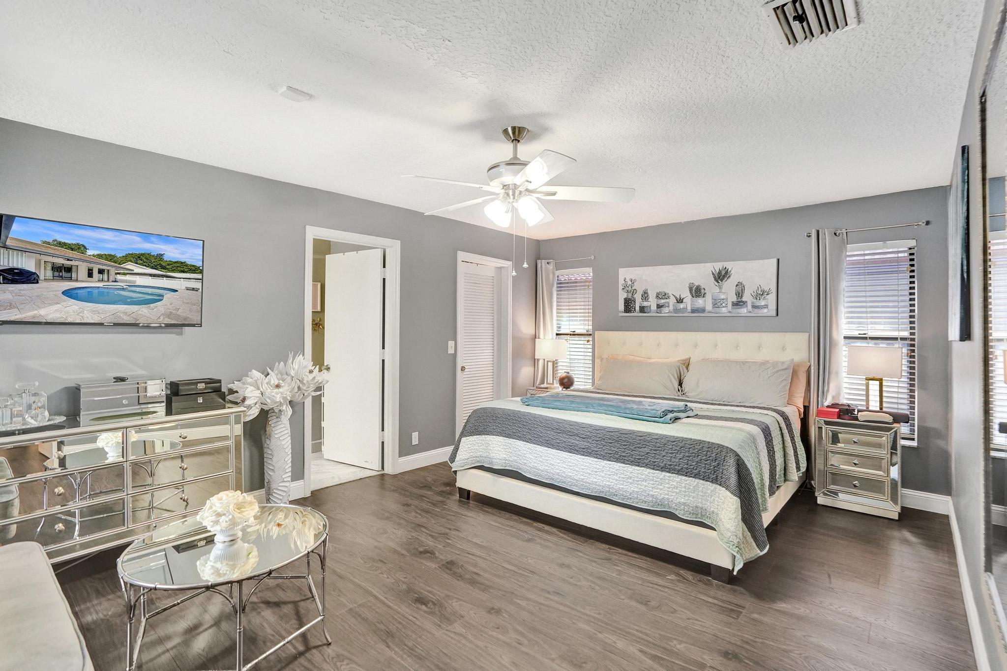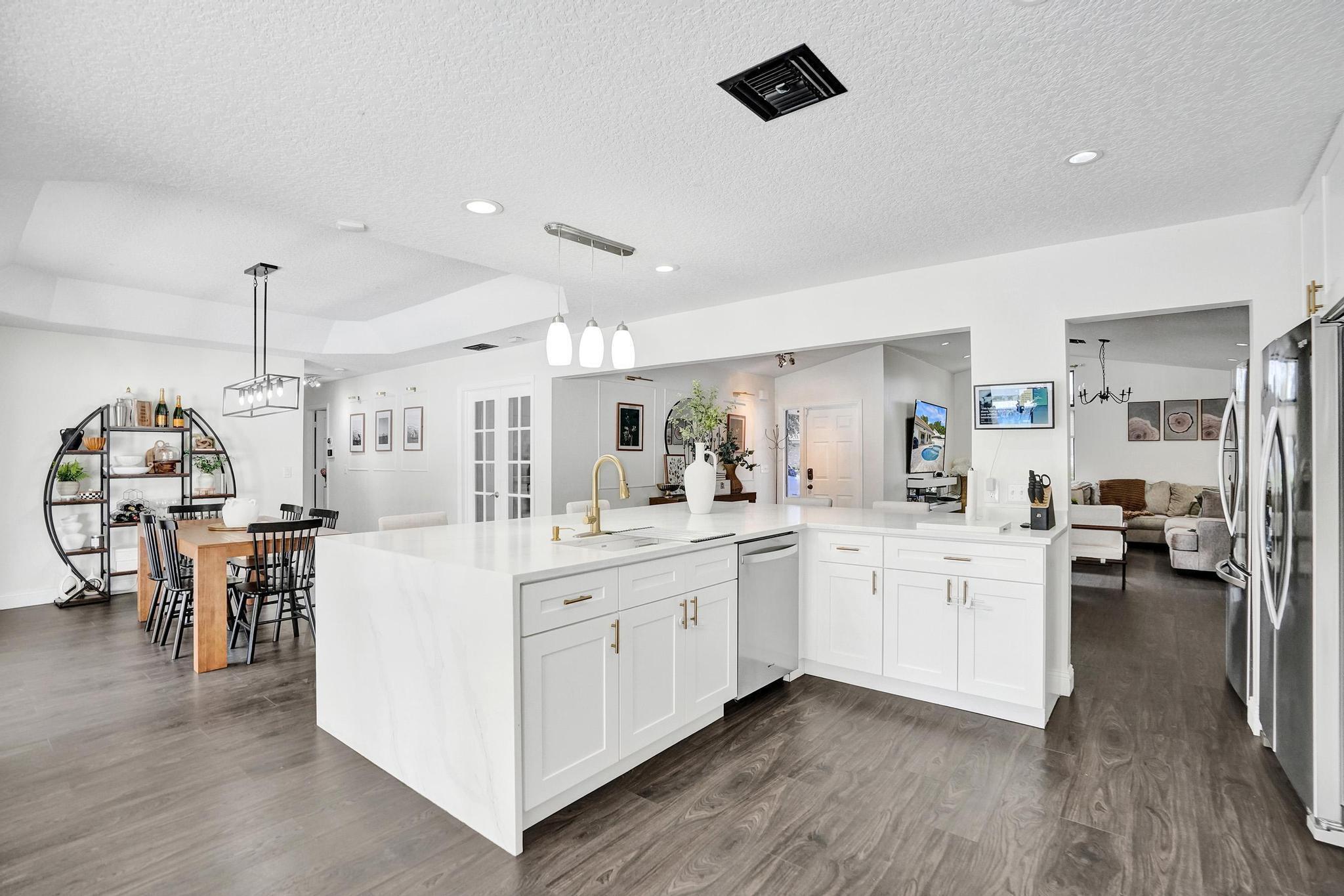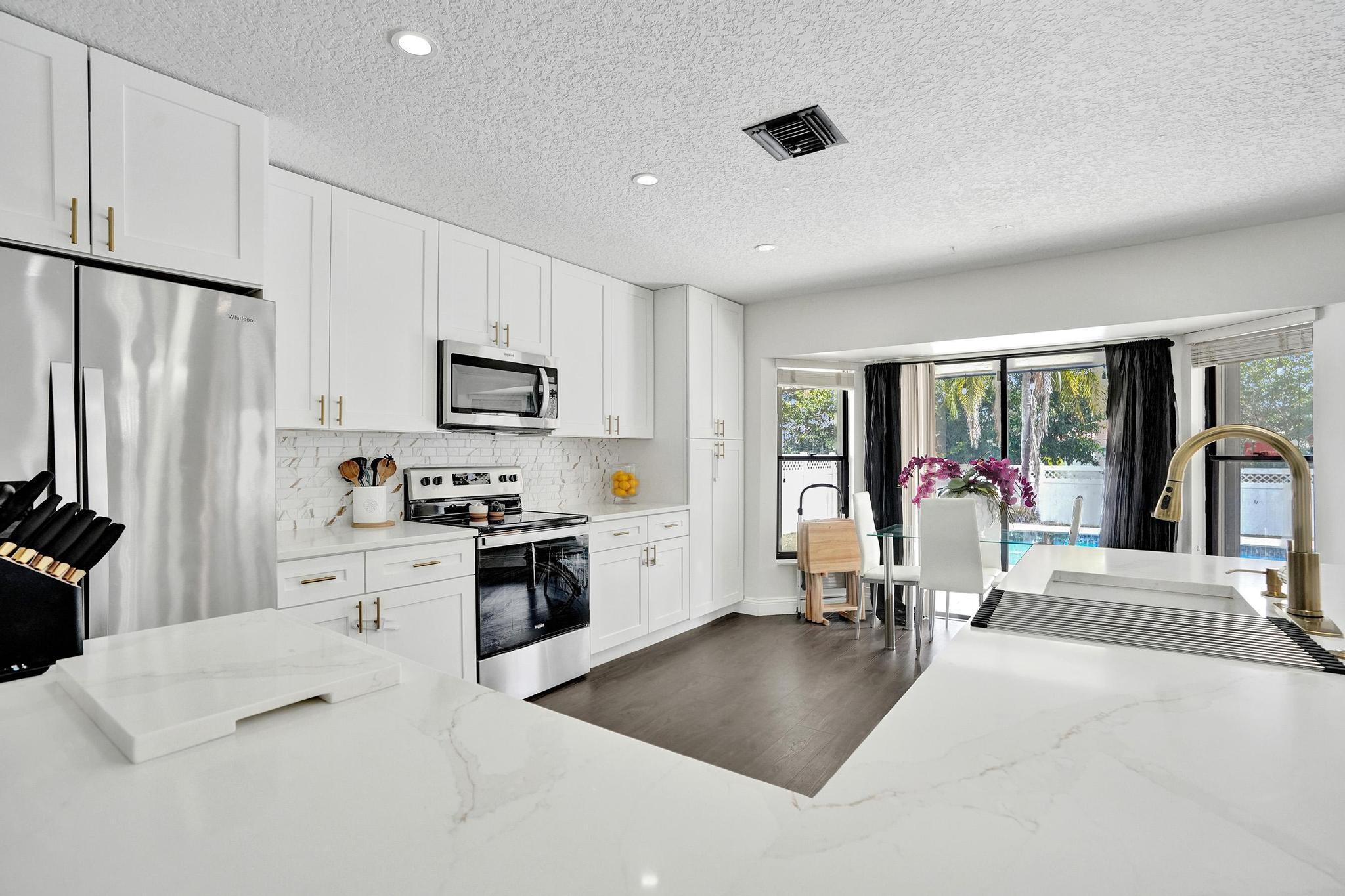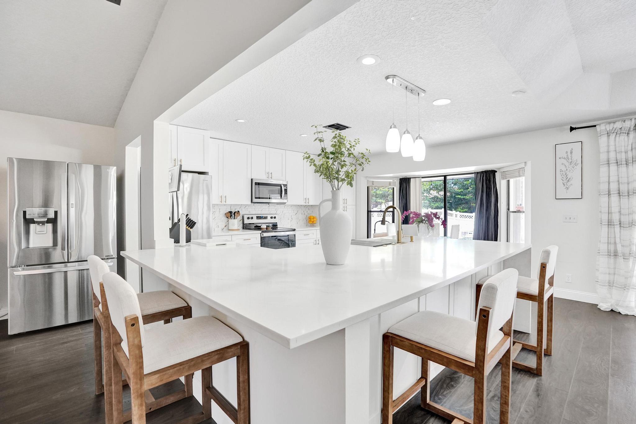Beautifully renovated 4-bedroom, 2-bathroom home with 2-car garage in the highly desirable Crossings community of Coral Springs. This move-in ready home features a spacious, open layout with vaulted ceilings, large living and dining areas, and a fully remodeled kitchen (2023) with modern cabinetry, plenty of counterspace and stainless-steel appliances. Laminate flooring throughout (2019) except the bathrooms. The oversized master suite includes a generously sized walk-in closet and direct access to the pool area. One of the bathrooms also serves as a cabana bath, offering convenience for outdoor entertaining. Enjoy your private, fenced backyard oasis, refinished pool and spa (2019). Additional updates include accordion shutters, Newer A/C (Aug 2024), and water heater (2019).