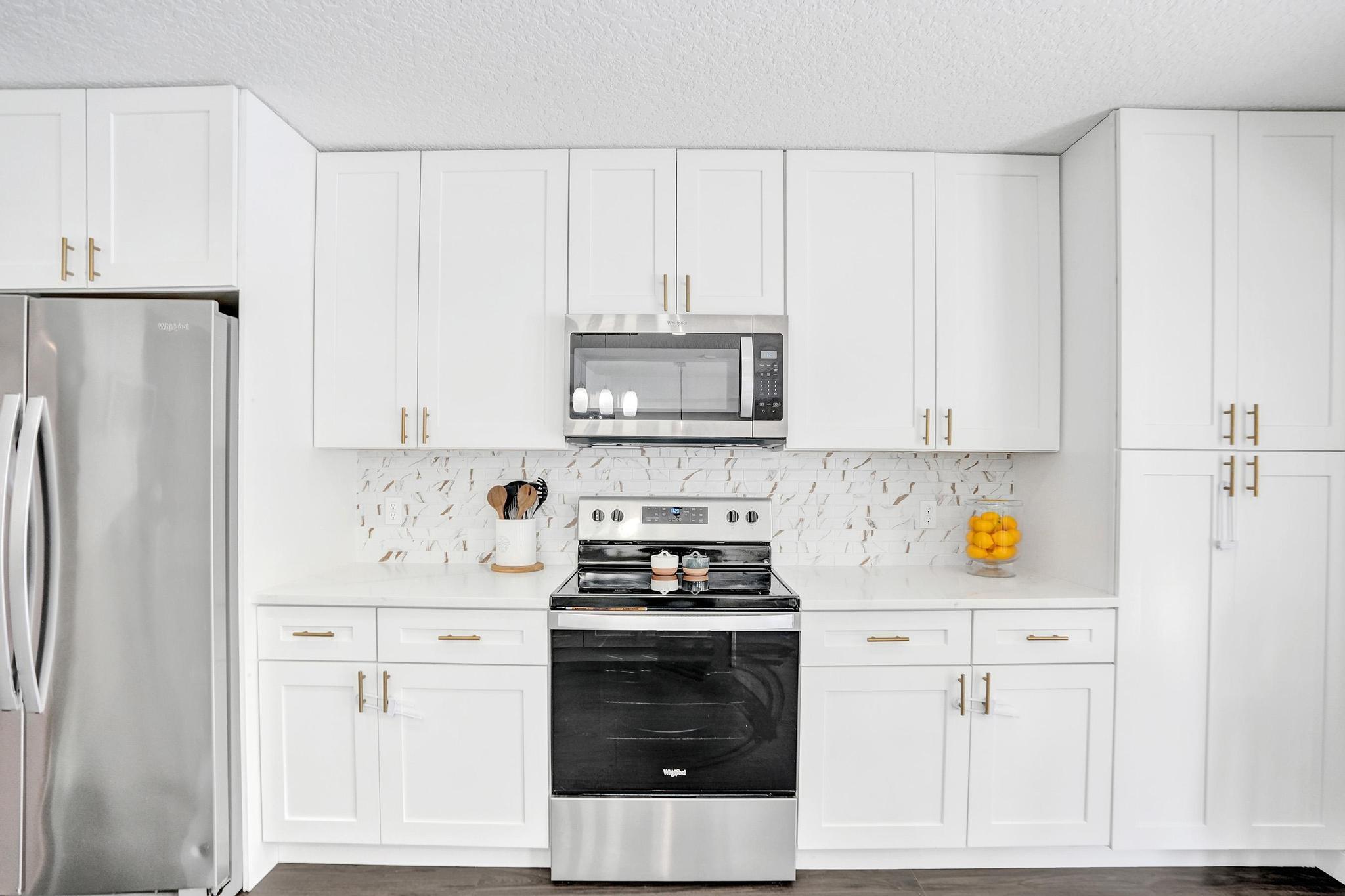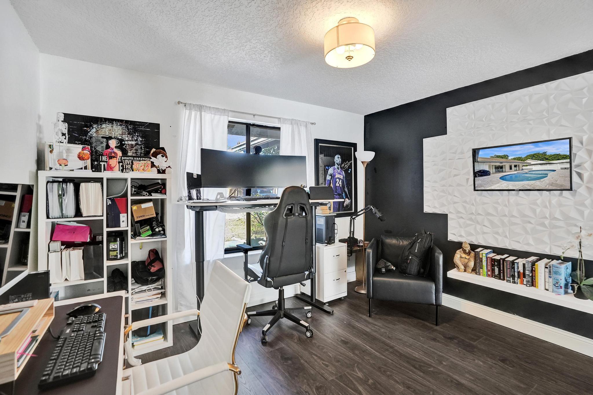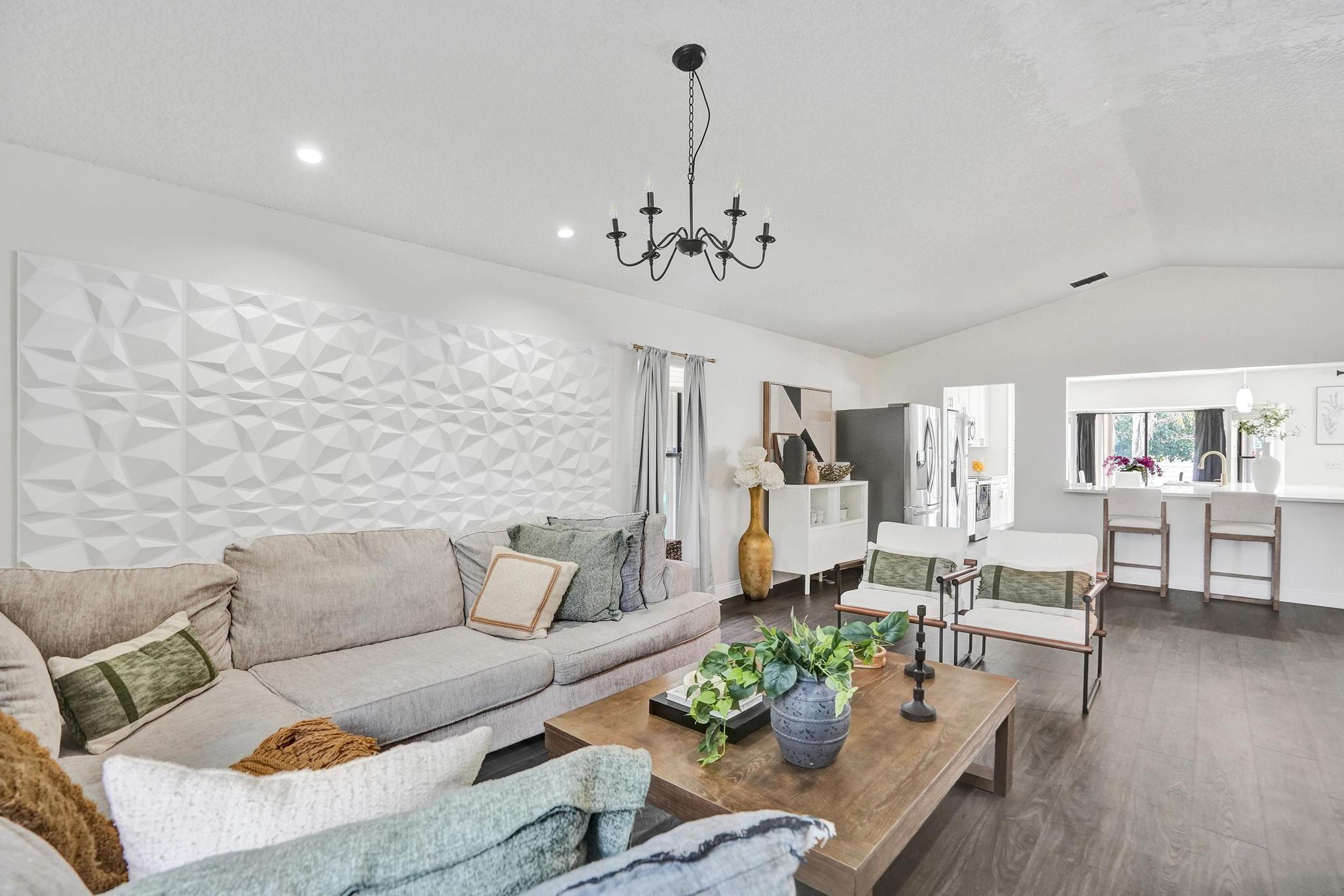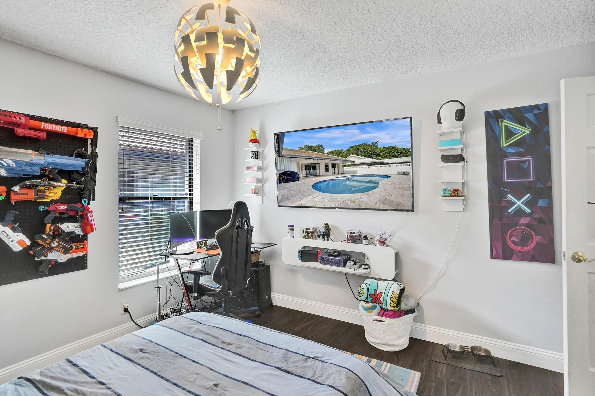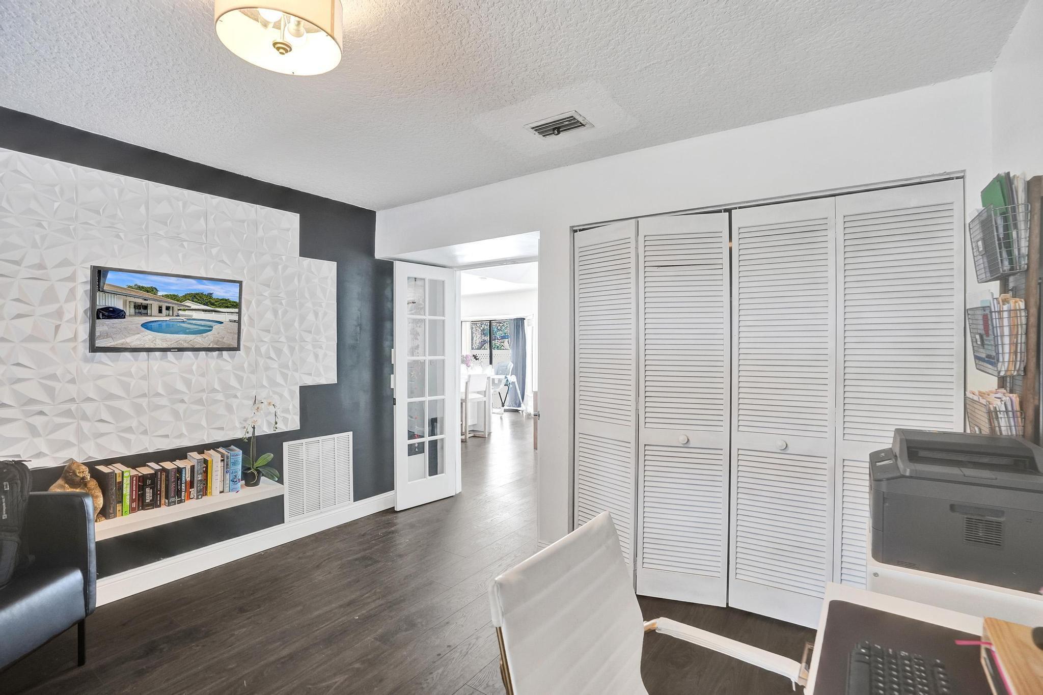Beautifully renovated 4-bedroom, 2-bathroom home with 2-car garage in the highly desirable Crossings community of Coral Springs. This move-in ready home features a spacious, open layout with vaulted ceilings, large living and dining areas, and a fully remodeled kitchen (2023) with modern cabinetry, plenty of counterspace and stainless-steel appliances. Laminate flooring throughout (2019) except the bathrooms. The oversized master suite includes a generously sized walk-in closet and direct access to the pool area. One of the bathrooms also serves as a cabana bath, offering convenience for outdoor entertaining. Enjoy your private, fenced backyard oasis, refinished pool and spa (2019). Additional updates include accordion shutters, Newer A/C (Aug 2024), and water heater (2019).