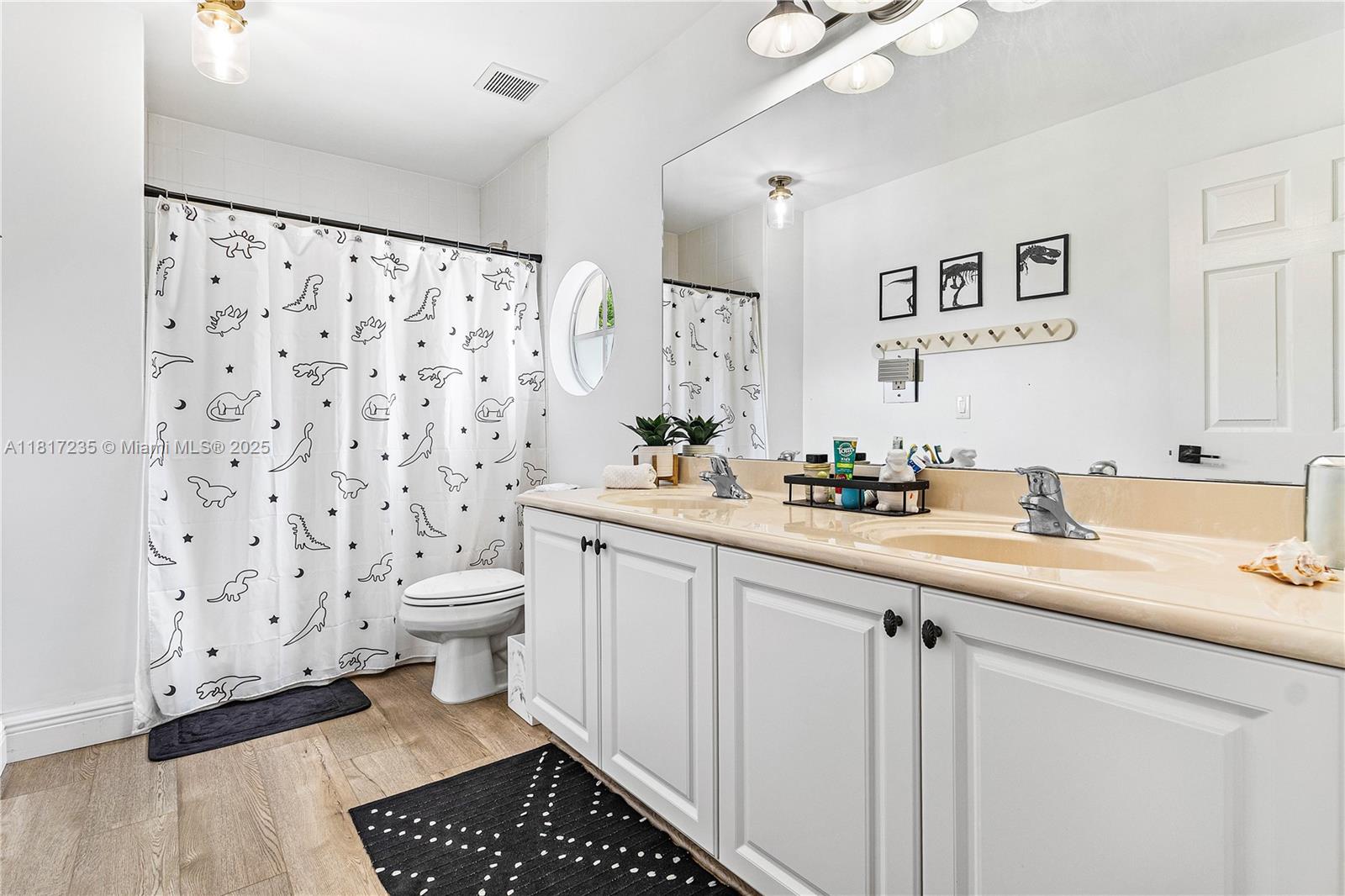 Waterfront Sunset Falls home. Two Story home w/lake views from most every window. Featuring newly remodeled contemporary kitchen cabinetry & appliances, island quartz waterfall top, new flooring throughout, new water heater + freshly painted. This home is designed w/open concept kitchen, breakfast nook & family room. Formal living room & dining room. Main floor guest bedroom & bath. Upper-level Master Bedroom w/separate sitting area, 2 large walk-in closets, his/hers baths w/germ resistant door hardware, oversized lake view balcony. Upper Laundry. Fully fenced lakefront yard w/outdoor extended covered waterfront gathering area w/room for outdoor kitchen. Outdoor BUG Swat System. Roof Maintained. Sunset Falls is prof. managed w/amenities, resort style poos, tennis, basketball, fitness.