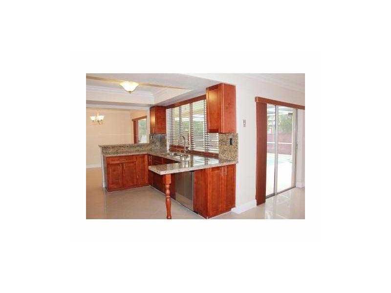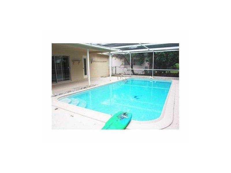 Spacious and bright home with screen enclosed pool. Fully updated with large porcelain floors throughout and wood flooring in bedrooms. Family room currently used as 4th bedroom. New kitchen with granite countertop and wood cabinets, Bathrooms with new va nities & granite countertops. Garage tastefully converted to in-law quarters with a half bath - owner willing revert to garage or give credit at closing. Large storage shed included in sale.
