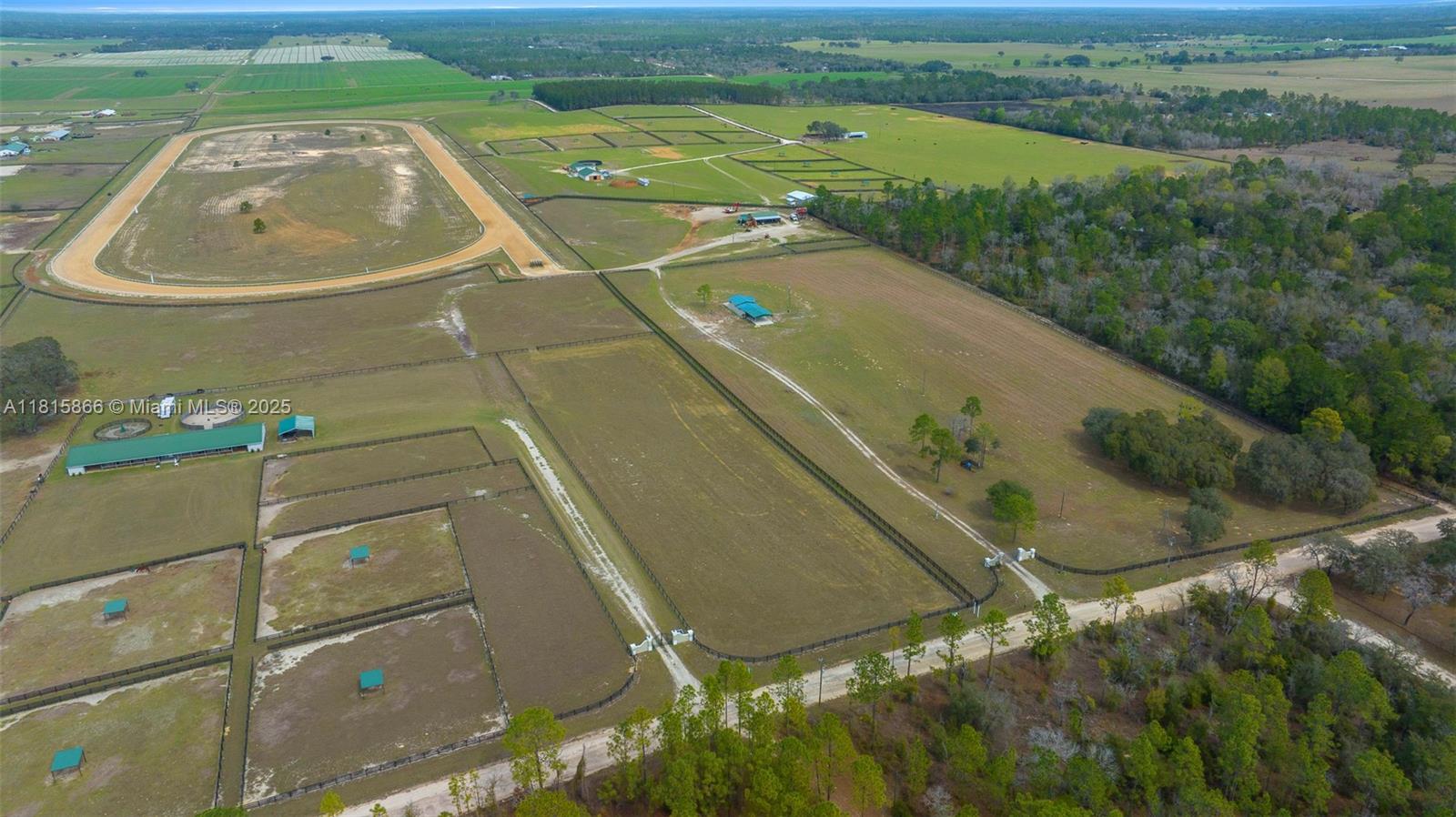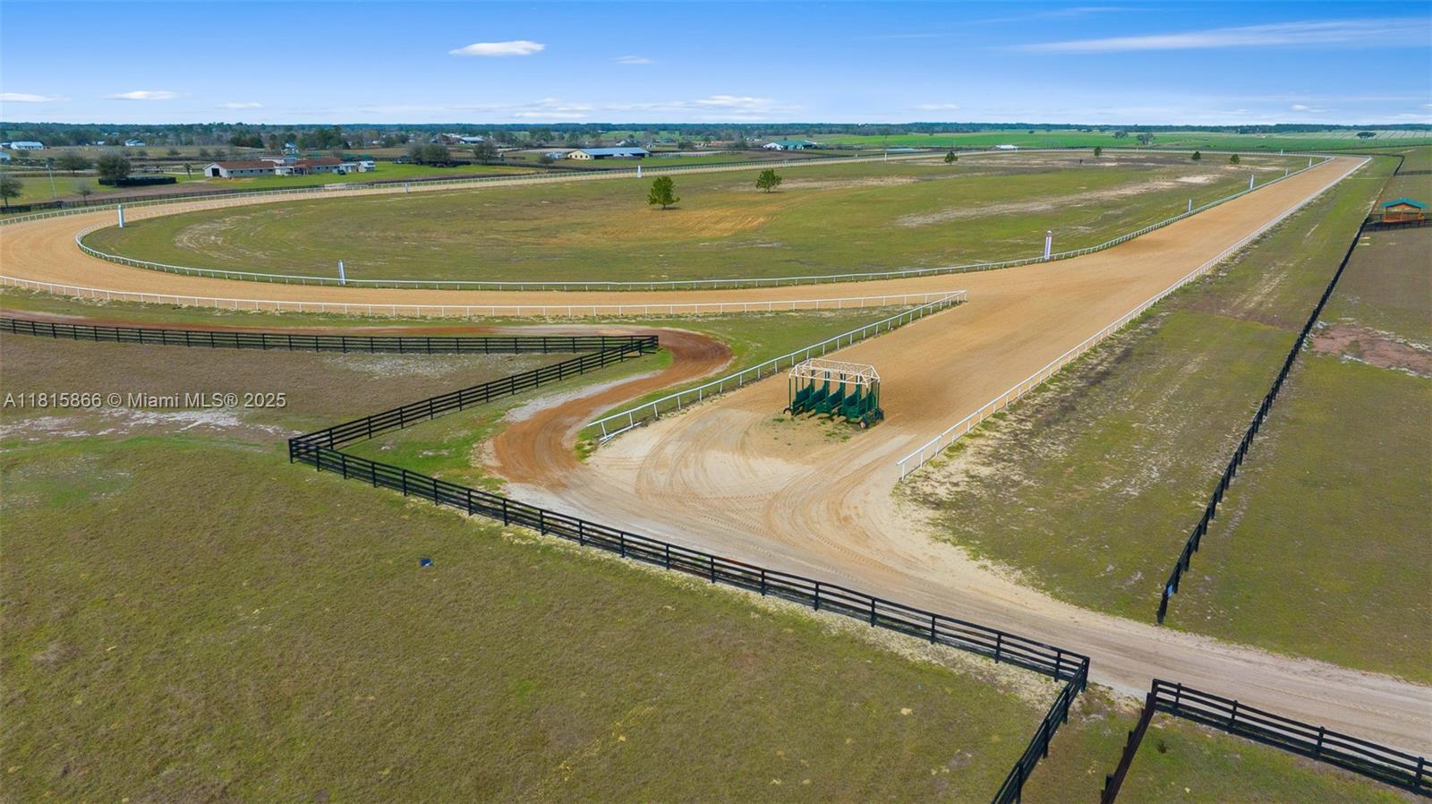 Located within the prestigious Florida Mile Training Center, this exceptional 21+acre equestrian estate offers exclusive access to a meticulously maintained 1-mile training track. Designed for serious /novice equestrians, the track accommodates a variety of disciplines, including Thoroughbred and/or Quarter Horse racing, Standardbred and harness training & general horse fitness or rehabilitation. Featuring starting gate, watering system, and superior footing, this track provides optimal training conditions. With high and dry land ensuring year-round usability, it is the perfect setting for both professional and recreational equestrians. The estate also includes a small hay field, providing a sustainable feed source, reducing costs, and enhancing self-sufficiency for equestrian operations.