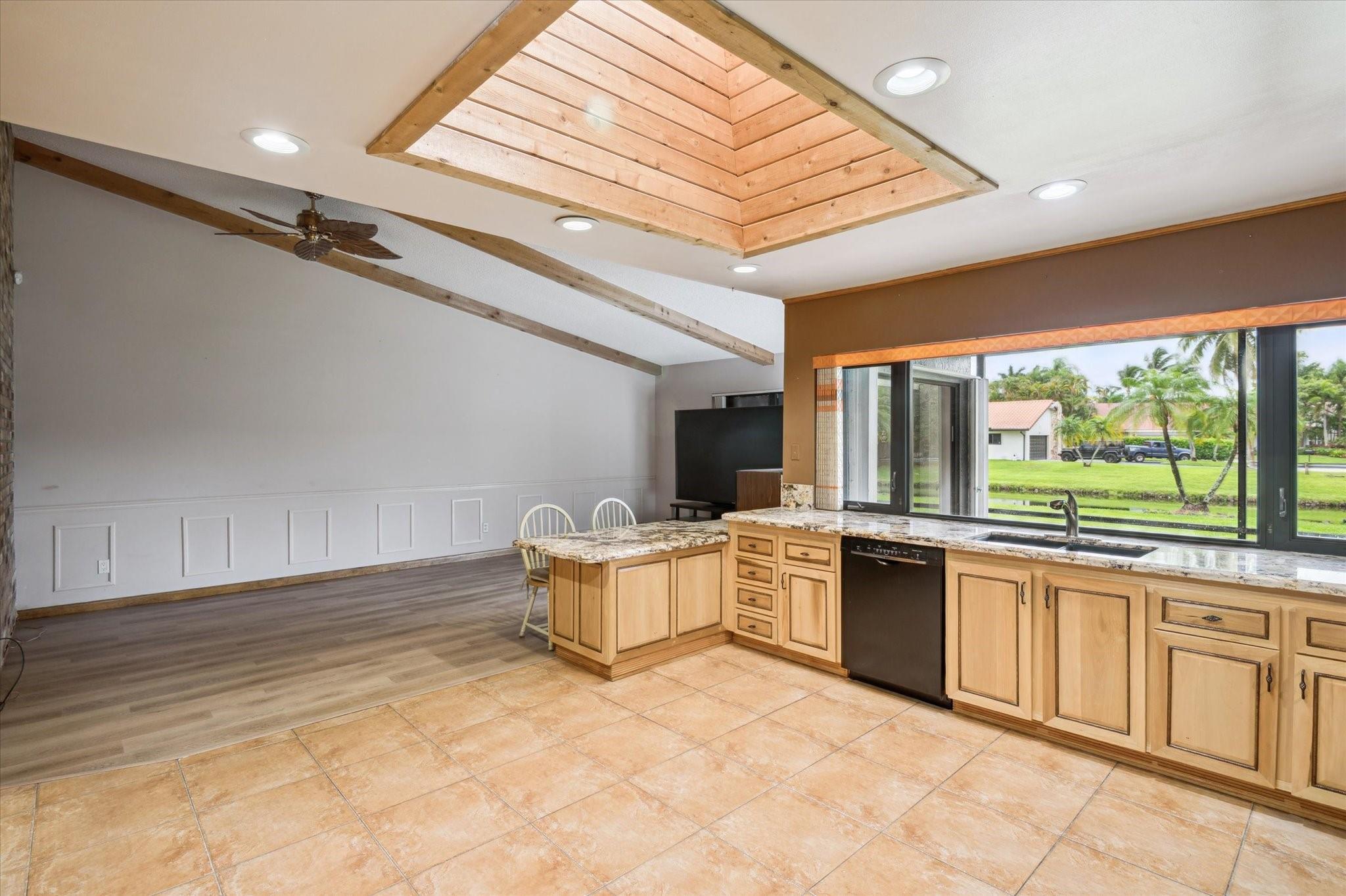 Reduced $50,000.00 in Jacaranda Lakes! This split/stacked four bedroom two bathroom home has 2,478 square feet under air and is located on an interior wide canal lot with no home directly behind the canal. This home overlooks a canal then a cul-de-sac. The living area is very spacious with a family room off the large kitchen-new vinyl flooring as of 5/25 in FR, skylight in kitchen brings in a lot of natural light, sunken living room, formal dining room overlooks screened patio and back yard. Bedrooms are all good sizes. Whole house propane gas generator installed in 2017, roof is 16 years old, hot water heater is 7 years old, paver driveway and patio. Accordian hurricane shutters throughout. Great square footage for the money! Needs updating but priced to Sell! So, hurry & see now!