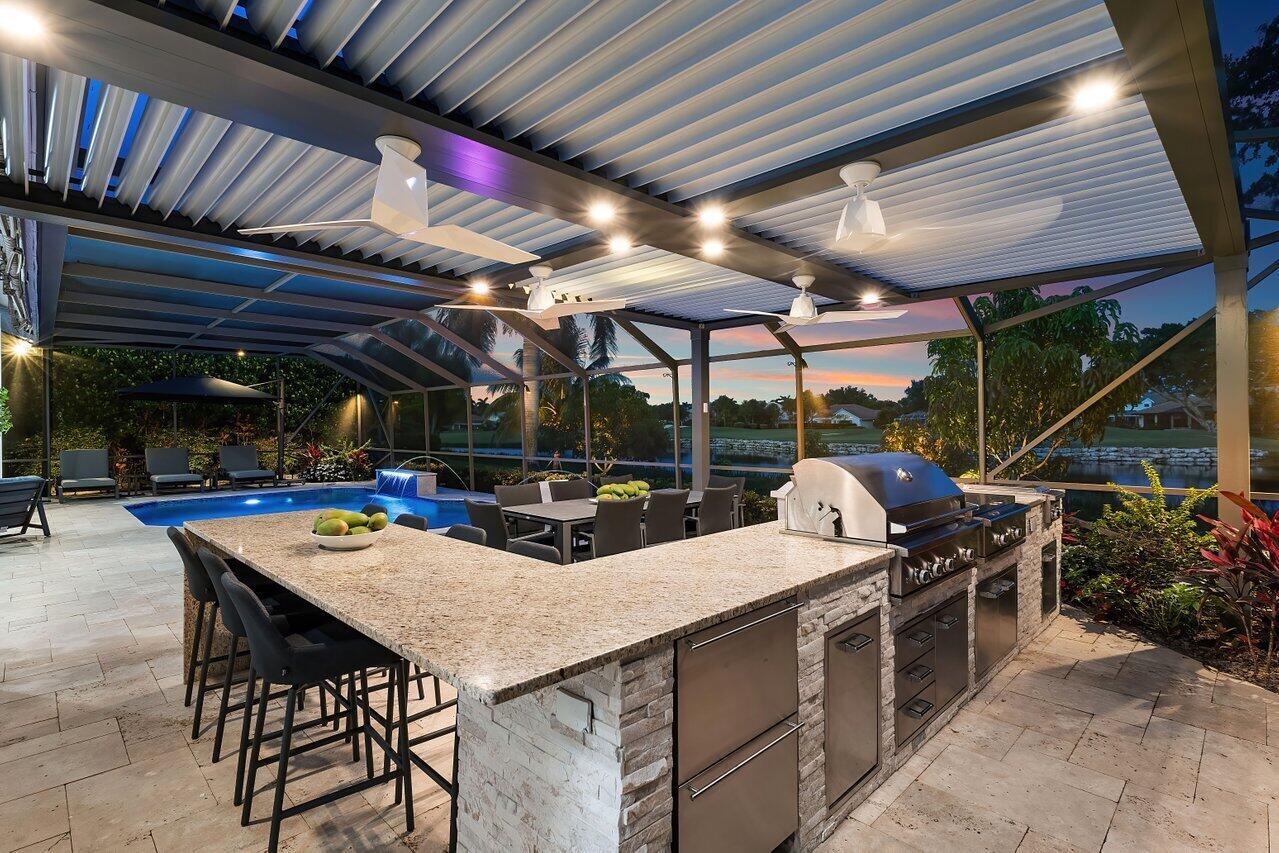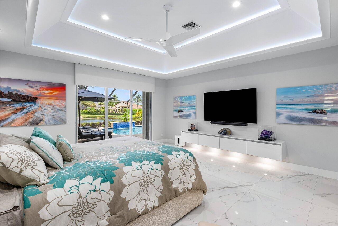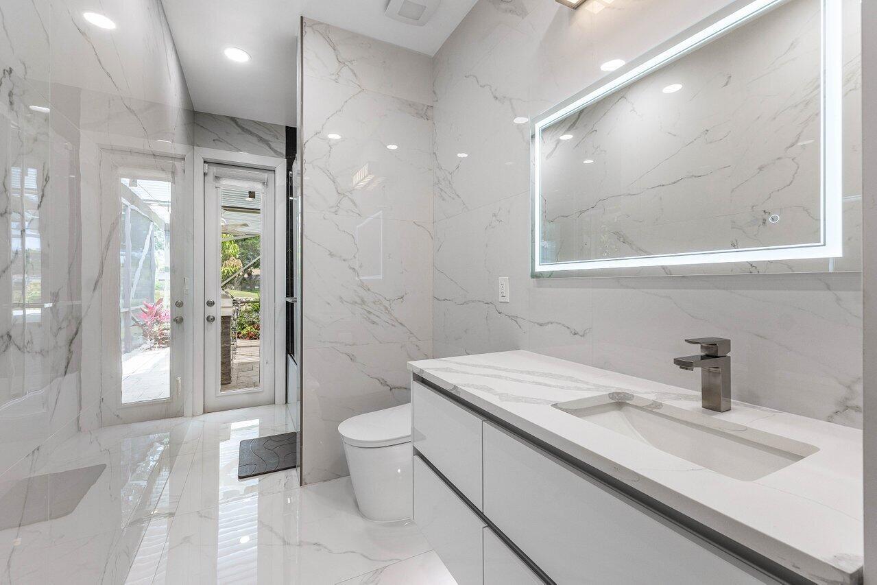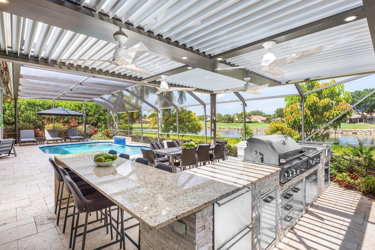 Welcome to this exquisitely renovated four-bedroom three bath luxury residence nestled in the heart of the sought-after Stonebridge Country Club. This is an opportunity to acquire a ''move-in, nothing needed'' home. Meticulously updated inside and out over the past two years ago with no expense spared, this elegant home blends timeless sophistication with modern comforts, offering the finest in South Florida living. From the moment you step inside, you're greeted by expansive living spaces adorned with designer porcelain tile flooring throughout. New custom cabinetry including floating cabinets with under lighting were installed in every room, providing the clean minimalist look awaiting your personal touch for accents.