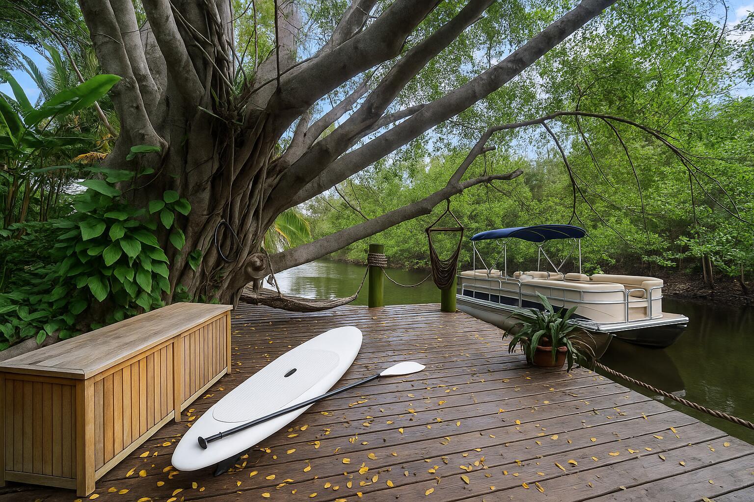 Exquisite Waterfront Estate with Private Dock in The Historic Old Floresta Area.Welcome to this one-of-a-kind custom-built estate nestled in Boca Raton's historic Old Floresta neighborhood. Located on the El Rio Canal with ocean access and a 30 ft. private dock, this home epitomizes the South Florida lifestyle. Sail into the Boca Inlet and the Atlantic Ocean or simply relax and watch the manatees swim by from your own backyard sanctuary. This magnificent residence seamlessly blends timeless elegance with contemporary luxury. Classic marble and rosewood flooring set the stage for a grand spiral staircase, a coral stone fireplace, and a gorgeous chef's kitchen designed for both everyday living and lavish entertaining. A custom-built office provides the perfect space for productivity and