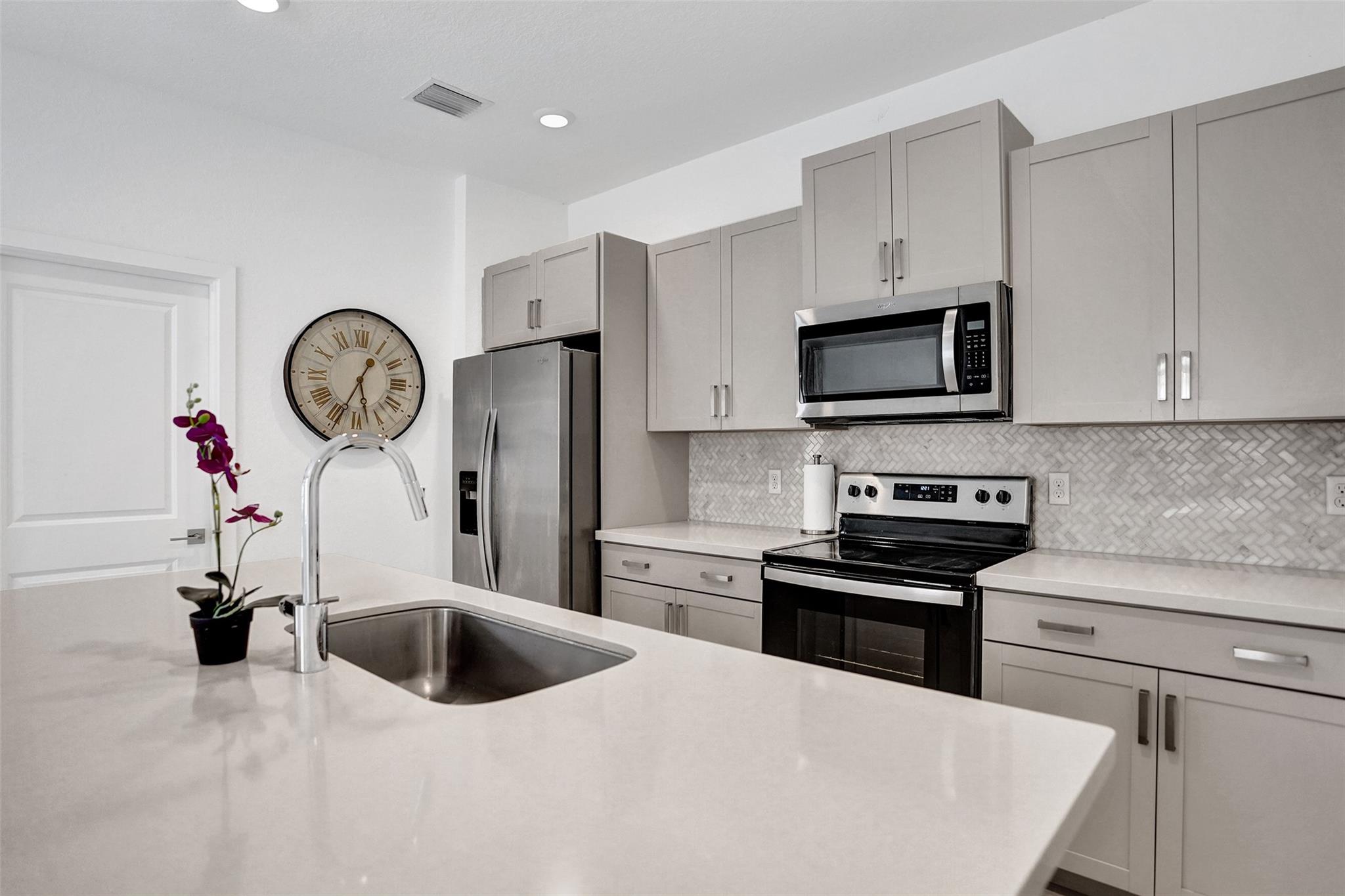 NEWLY BUILT Modern 2020 home is nestled in the small and quaint community of Jaxon Park! This single story is a true 4 bedroom, 2 bath home inspired by a charming and modern life style! From the moment you step inside, a long foyer awaits you with soaring ceilings & neutral 24x24 tile through out. A rarely available triple split floorplan allows for a spacious feel or perfect for a home office. Stunning kitchen with custom grey cabinetry, stylish backsplash, large open island, & sleek countertops. Textured walls & ceilings. Large master suite with HUGE closet, bathroom w/ dual vanity sinks, & skylight for natural lighting. Inside laundry room. Paver patio with partially fenced yard is great for entertaining! 2 car garage- driveway fits 4 cars. Close to park *Seller Credit for NEW frig*