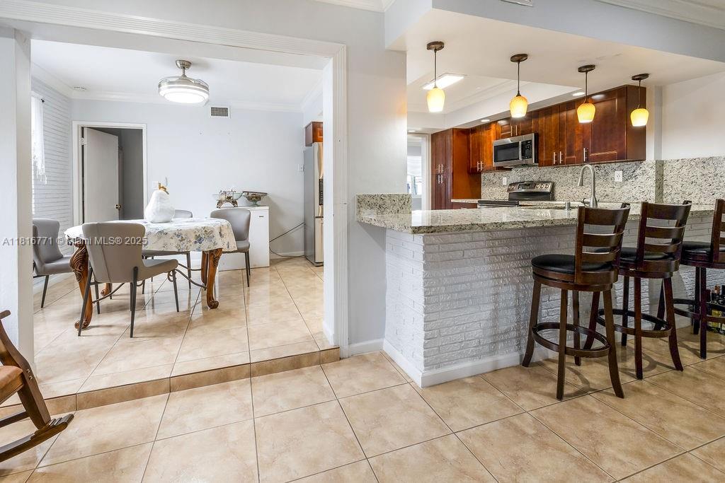 Discover this charming 3-bedroom, 2-bathroom home located in the desirable city of Miramar, FL. Step inside to a welcoming atmosphere, with a functional layout perfect for comfortable living and entertaining. The well-appointed kitchen flows seamlessly into the dining and living areas, creating an open and inviting space. Bedrooms are generously sized, providing ample room for relaxation. Recess lighting throughout, crown molding and new impact doors and windows. Outside, enjoy the Florida sunshine in your private backyard.Great for outdoor gatherings, gardening, or simply unwinding after a long day. This home provides easy access to major highways, top-rated schools, and a variety of recreational parks. Great income property opportunity as well.