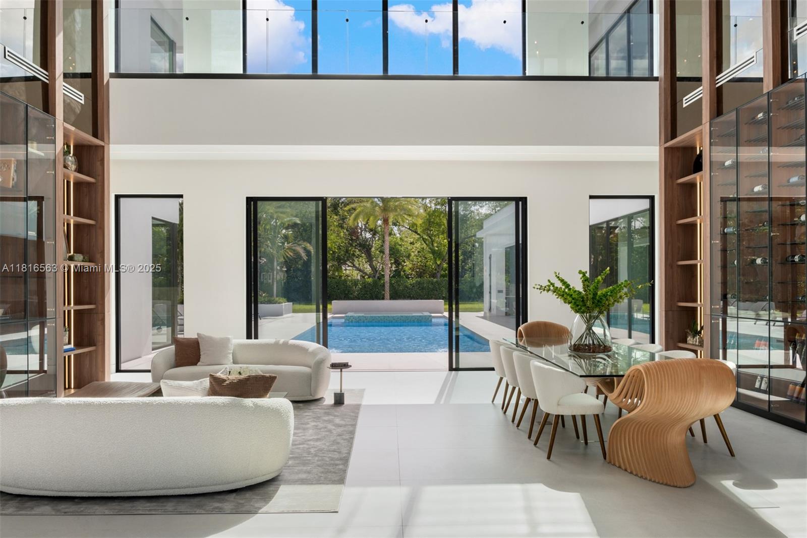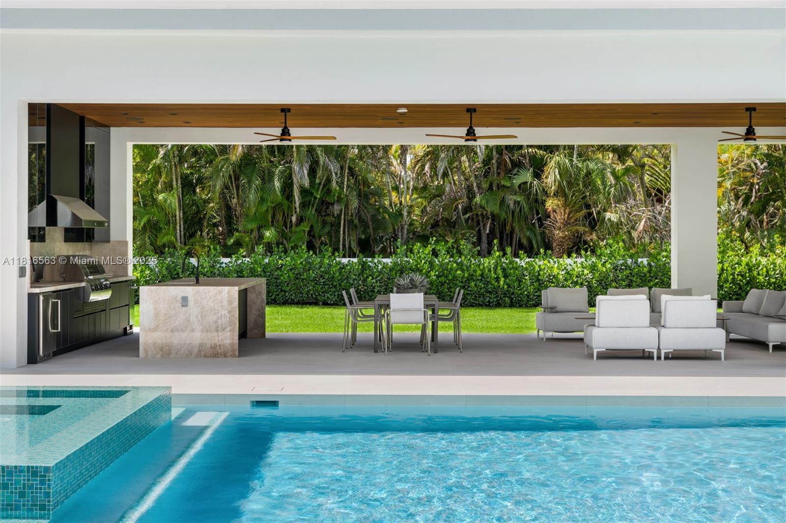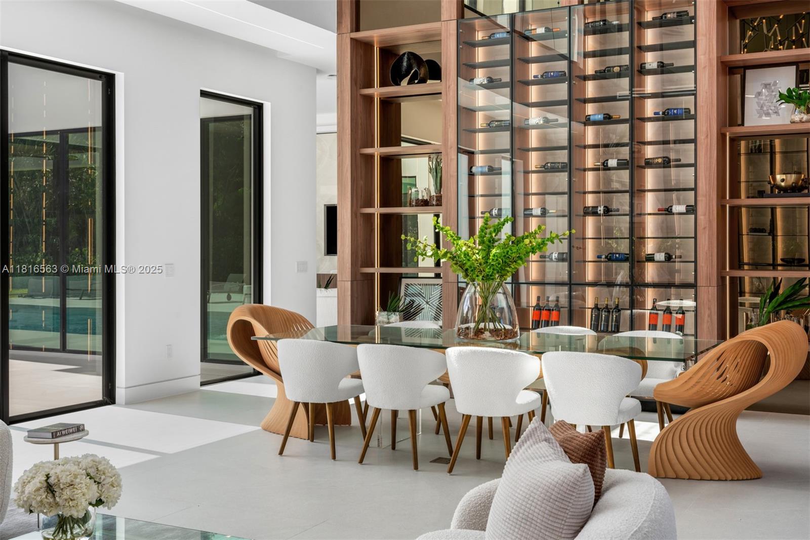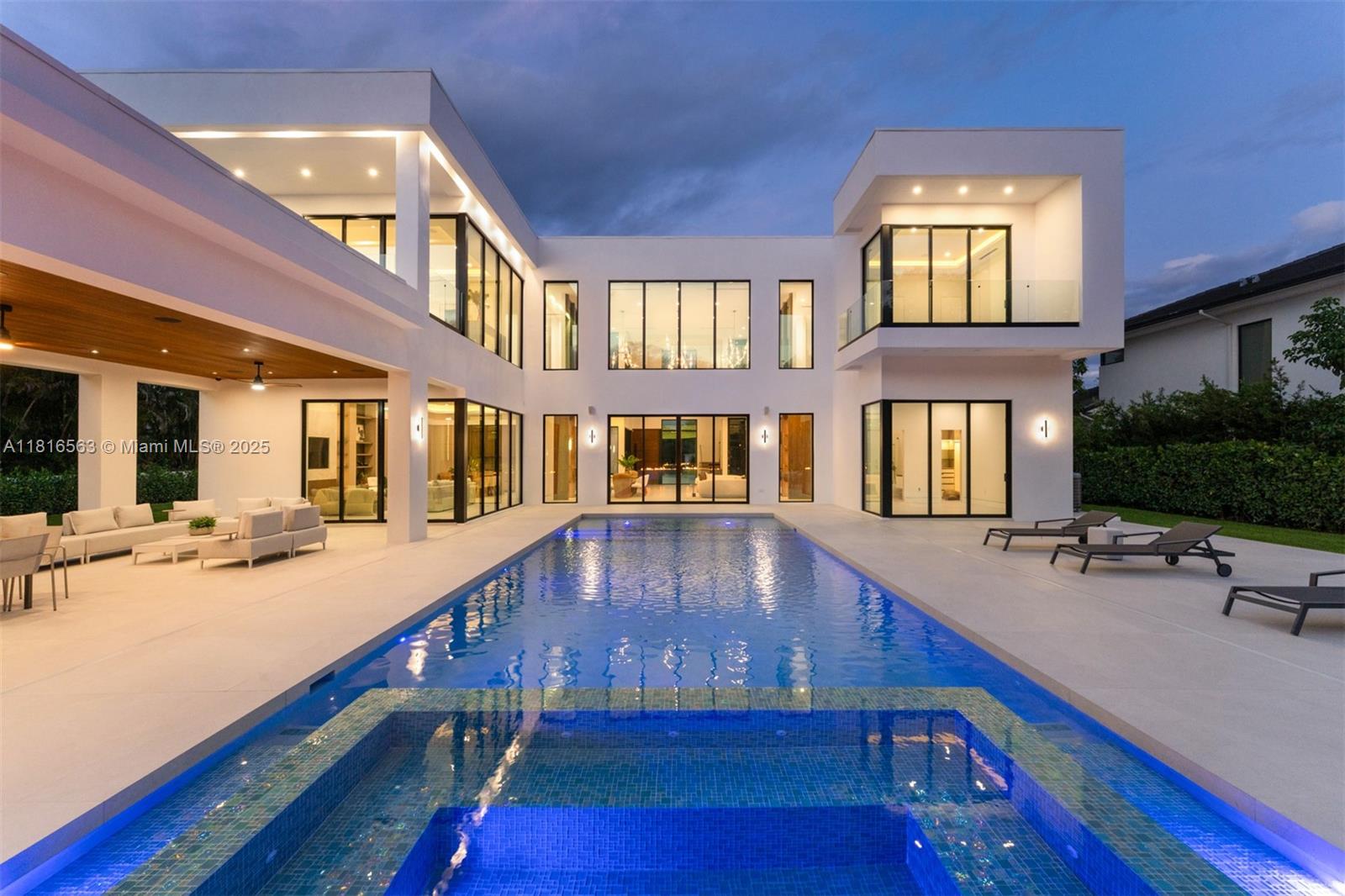 Experience refined modern luxury in this 6-bedroom, 7.5-bath masterpiece spanning 9,616 SF. The home features a state-of-the-art home/theater, a private office, and a sauna. The chef's kitchen boasts Miele appliances, slab porcelain countertops with Italian style cabinetry. Enjoy the integrated sound system, a striking Italian oak wood staircase, and a wine gallery. Outdoors, a 53x17 heated pool and Jacuzzi, massive fire pit, and expansive covered areas create an entertainer's paradise with a full summer kitchen. Equipped with an elevator, epoxy 3-car garage plus 3-car carport, and full smart home automation with 28 security cameras and space for a Tennis or sports court, close to major schools and highways.