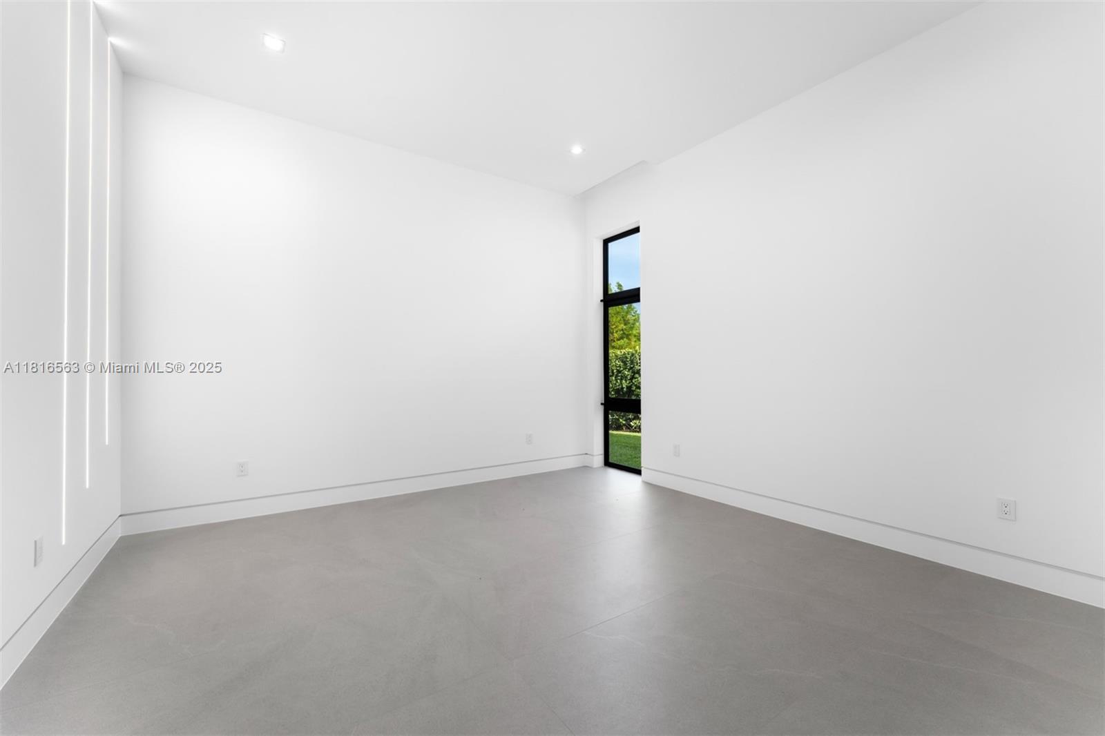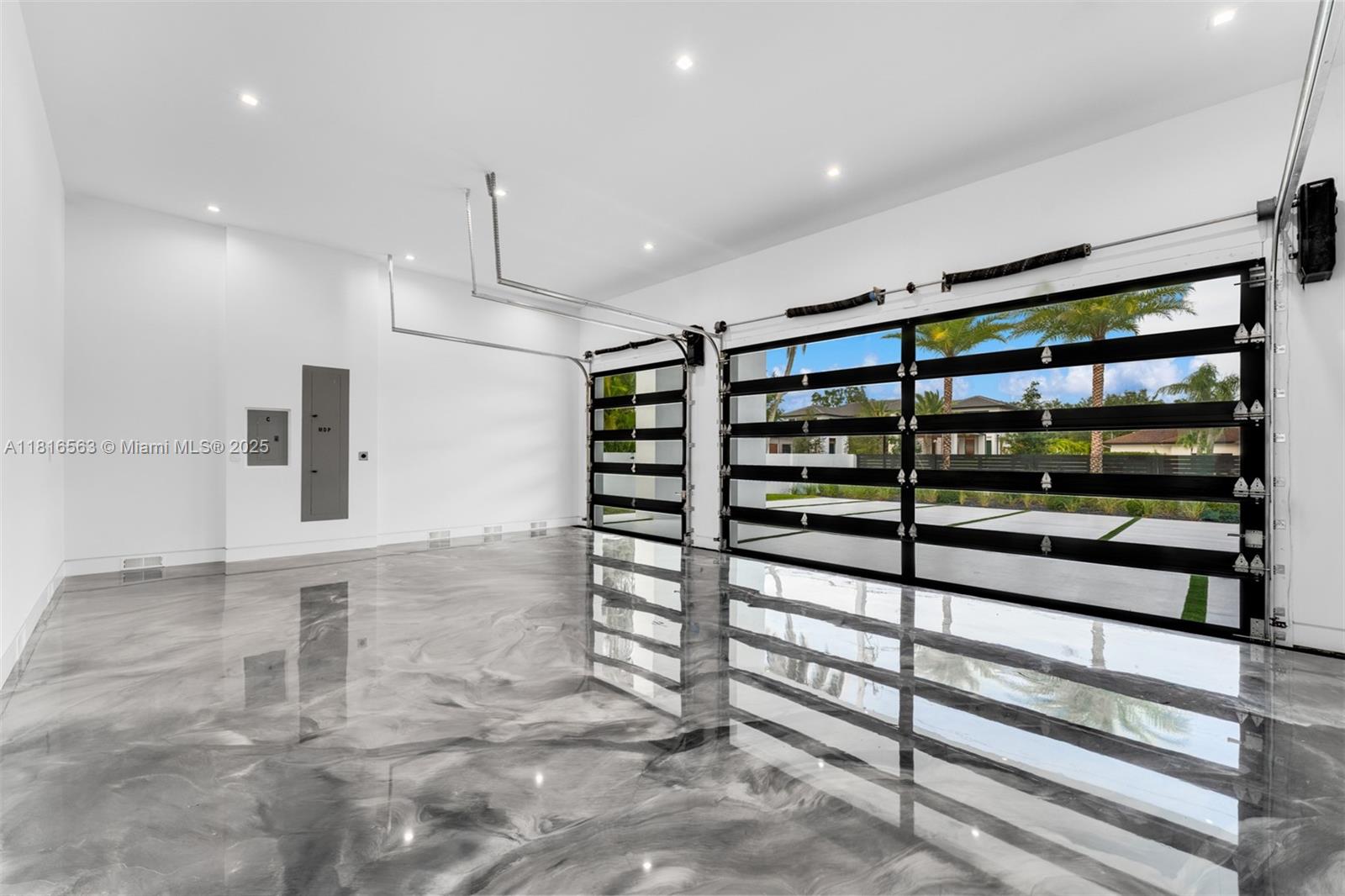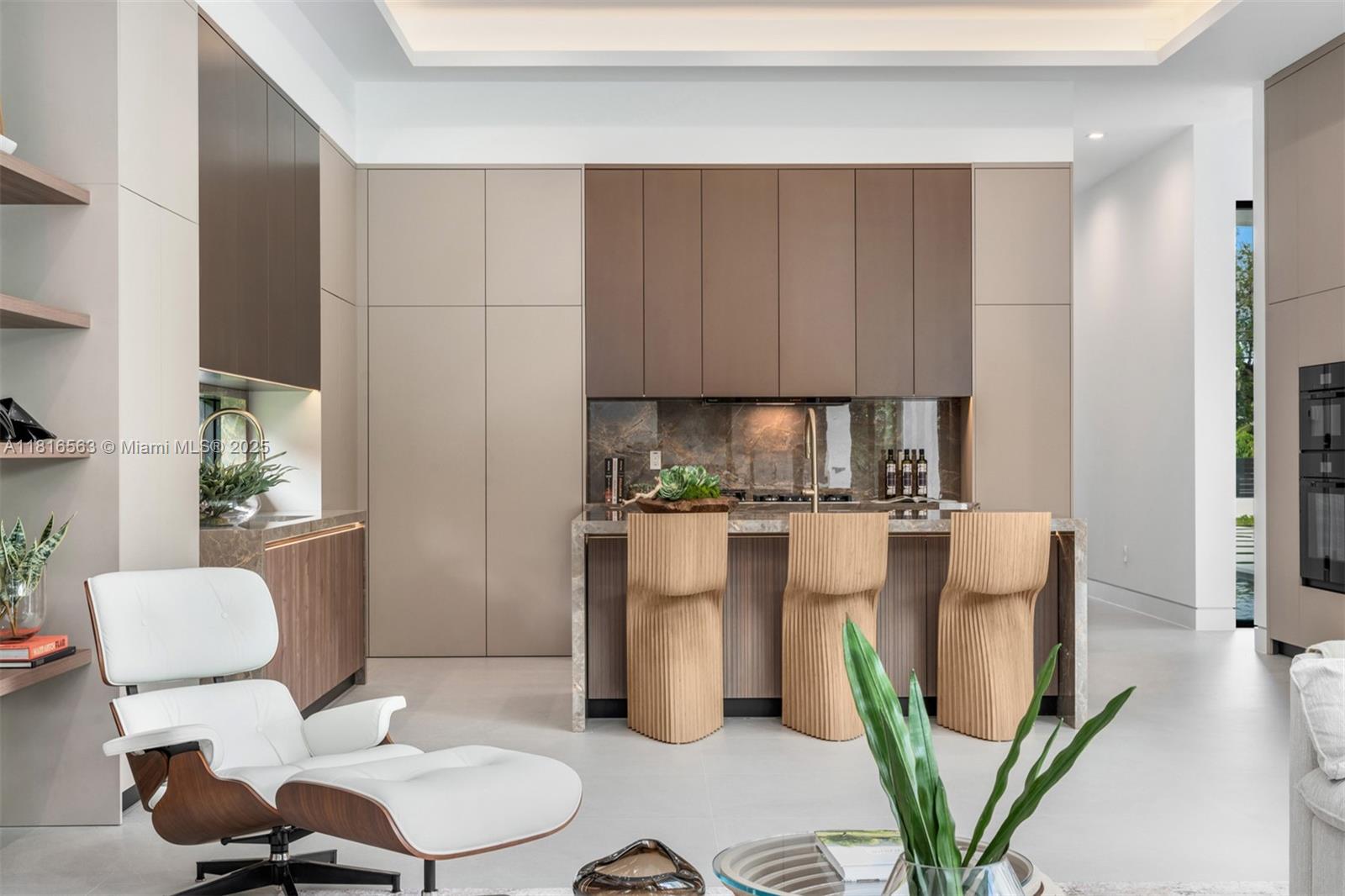 Experience refined modern luxury in this 6-bedroom, 7.5-bath masterpiece spanning 9,616 SF. The home features a state-of-the-art home/theater, a private office, and a sauna. The chef's kitchen boasts Miele appliances, slab porcelain countertops with Italian style cabinetry. Enjoy the integrated sound system, a striking Italian oak wood staircase, and a wine gallery. Outdoors, a 53x17 heated pool and Jacuzzi, massive fire pit, and expansive covered areas create an entertainer's paradise with a full summer kitchen. Equipped with an elevator, epoxy 3-car garage plus 3-car carport, and full smart home automation with 28 security cameras and space for a Tennis or sports court, close to major schools and highways.