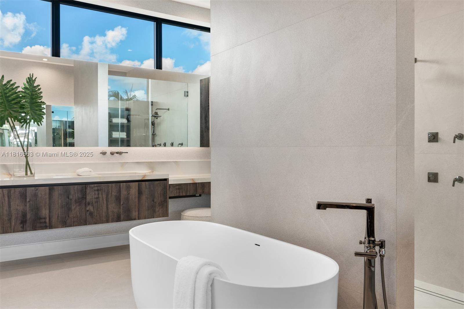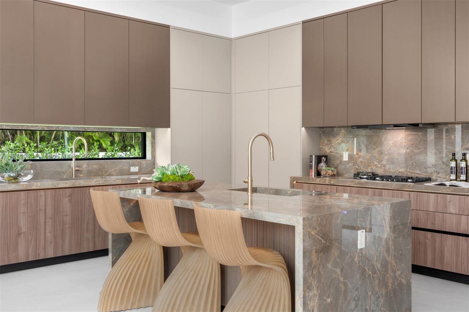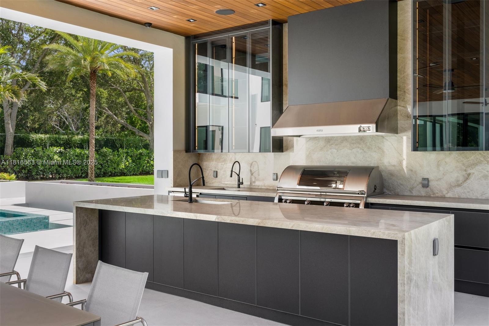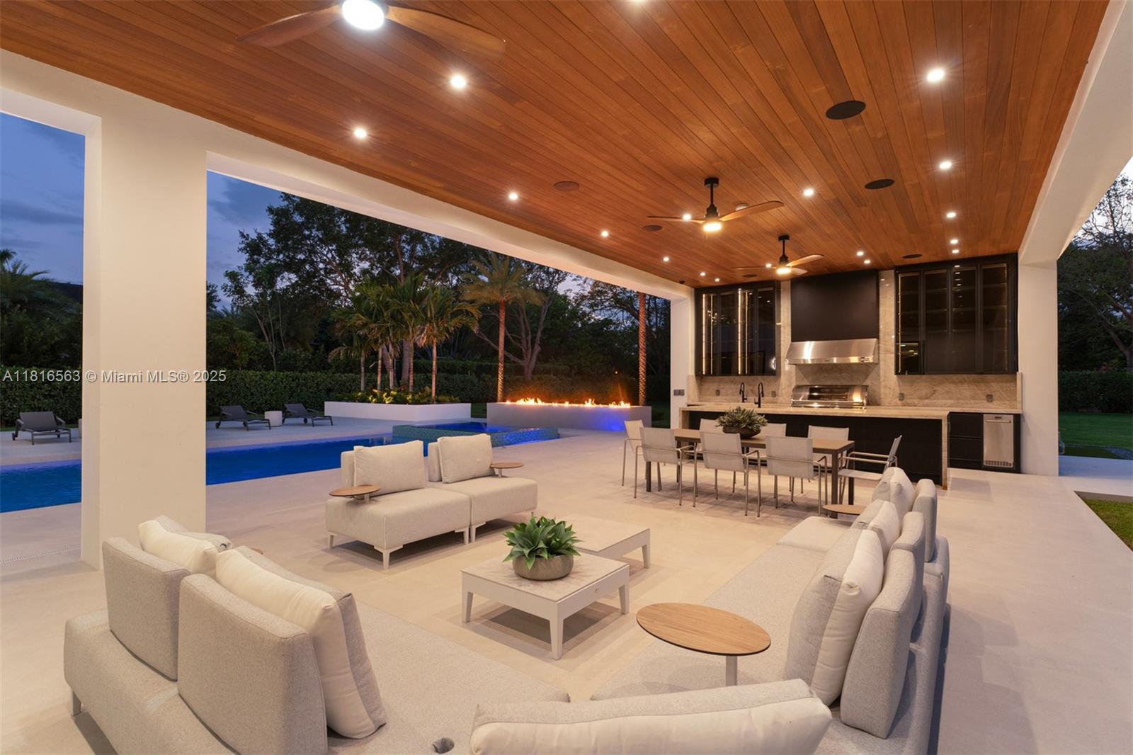 Experience refined modern luxury in this 6-bedroom, 7.5-bath masterpiece spanning 9,616 SF. The home features a state-of-the-art home/theater, a private office, and a sauna. The chef's kitchen boasts Miele appliances, slab porcelain countertops with Italian style cabinetry. Enjoy the integrated sound system, a striking Italian oak wood staircase, and a wine gallery. Outdoors, a 53x17 heated pool and Jacuzzi, massive fire pit, and expansive covered areas create an entertainer's paradise with a full summer kitchen. Equipped with an elevator, epoxy 3-car garage plus 3-car carport, and full smart home automation with 28 security cameras and space for a Tennis or sports court, close to major schools and highways.