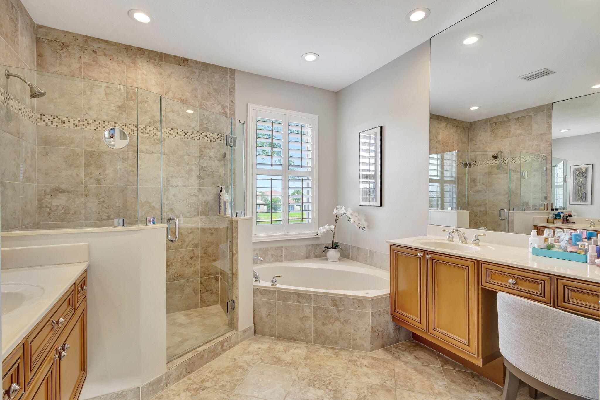 Nestled within the prestigious, guard-gated enclave of Mirabella, this exquisitely upgraded residence offers four spacious bedrooms plus a versatile den--ideally positioned on the main level with an adjacent full bath, easily convertible to a fifth bedroom--encompassing over 3,270 square feet of elegantly appointed living space tailored to today's discerning buyer. A grand two-story layout combines timeless architectural details with sophisticated, contemporary renovations, creating a home that is both inviting and impressive. The heart of the home is a fully reimagined gourmet kitchen, completed in late 2022. No detail was overlooked--from custom cabinetry and premium KitchenAid appliances to soft under-cabinet lighting and striking glass-front cabinets with illuminated interiors.