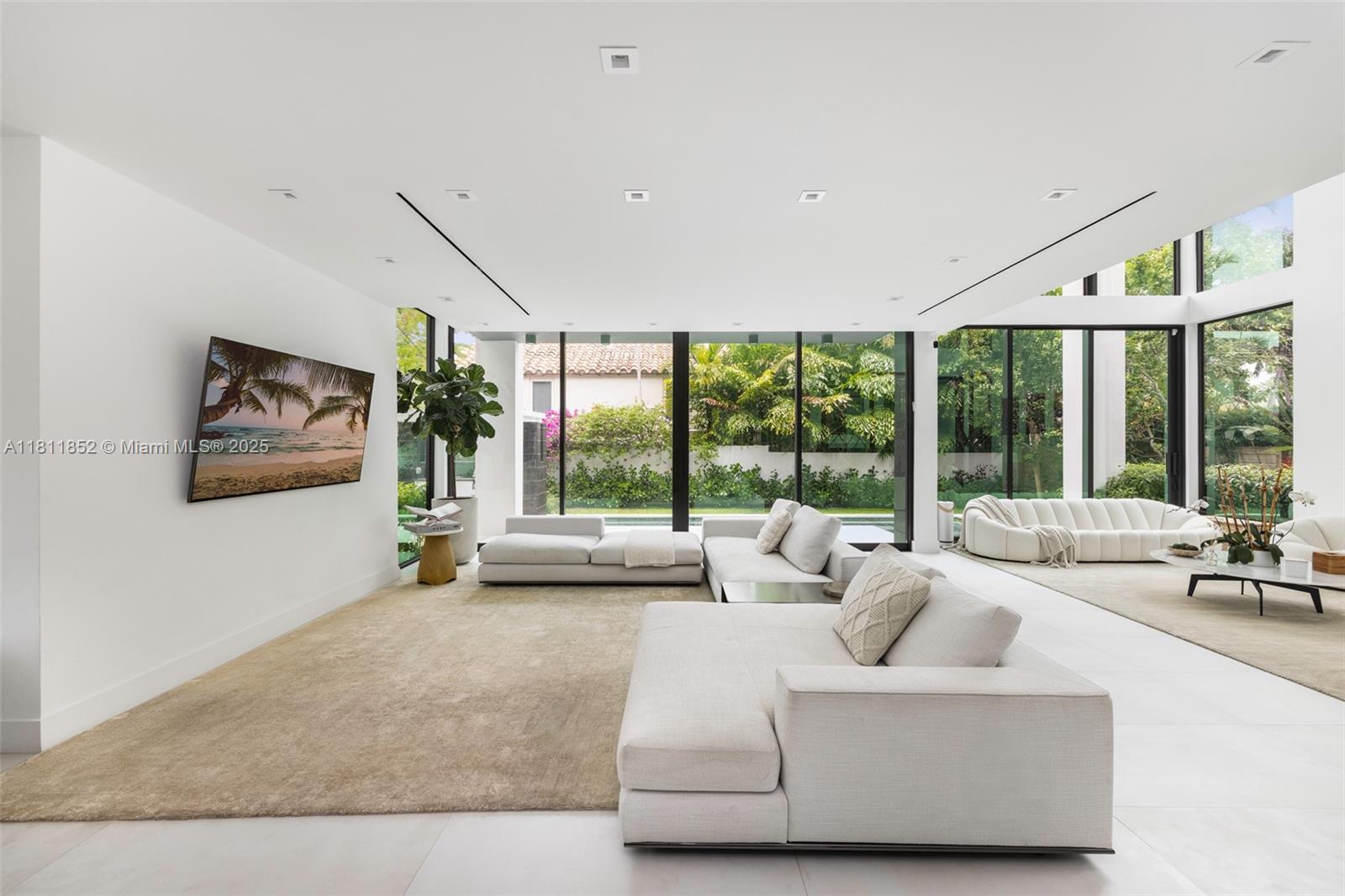 Exquisite 2022 built home is a 4,062 sq ft designer tropical retreat, nestled on prestigious Pine Tree Drive in Miami Beach. A short distance to beaches, world-class dining, and elite shopping. This resort style 5 beds, 5.5 baths residence offers a private pool, heated spa, and rooftop terrace. Spacious open layout with dramatic 10–22 ft ceilings, sleek Italian flooring, linear air diffusers, and impact-rated glass windows and doors. Gourmet Italkraft kitchen features Consentino countertops, Sub-Zero appliances, and premium gas cooktop. Outdoor kitchen has gas BBQ, shower, and lush landscaping. Floating oak staircase leads to expansive bedrooms with en-suite baths. This home features custom vanities and premium Hansgrohe-Axor fixtures. A sophisticated sanctuary in the heart of Miami Beach.