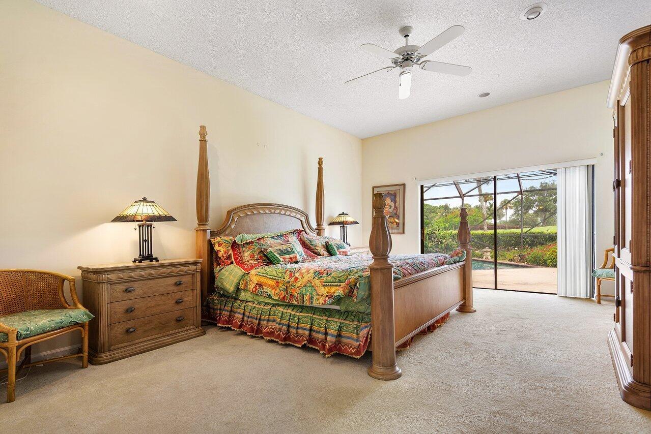 Spectacular golf course views from this 2-bedroom, 3.5-bath home featuring two expansive primary suites and a versatile office/den that can easily serve as a third bedroom. The open-concept layout boasts soaring 16-ft ceilings and dramatic double-height windows, flooding the home with natural light. Additional features include a separate golf cart entrance, two-car garage, laundry room, and a generous lot with mature fruit trees and panoramic fairway views. Roof replaced in 2018. Boca Woods Country Club Community offers resort style amenities, including two championship golf courses, Har Tru tennis courts, pickleball courts, state of the art fitness center, spa, game room, fully renovated clubhouse with fine dining and much more! Mandatory Country Club membership required $120,000.
