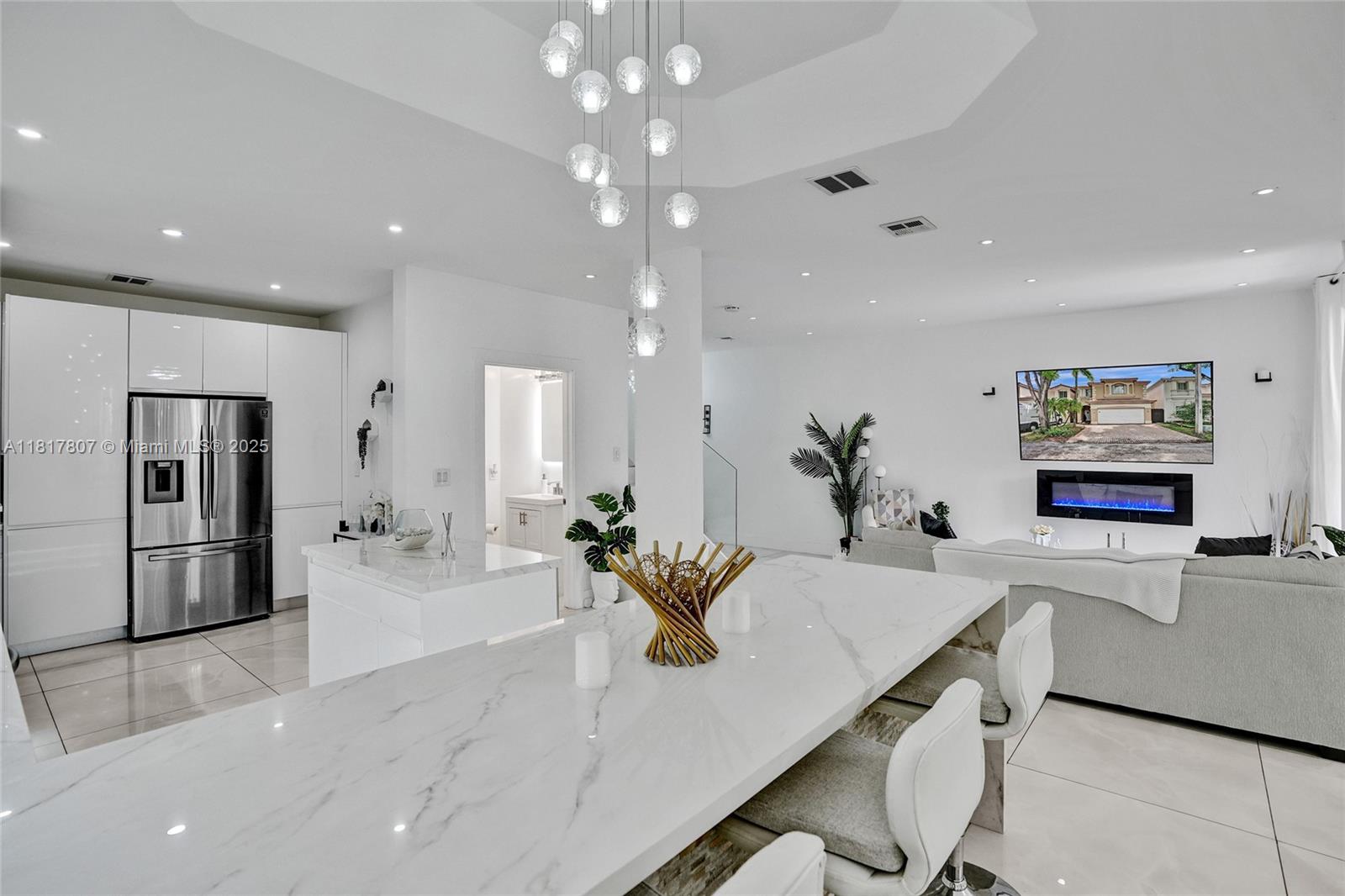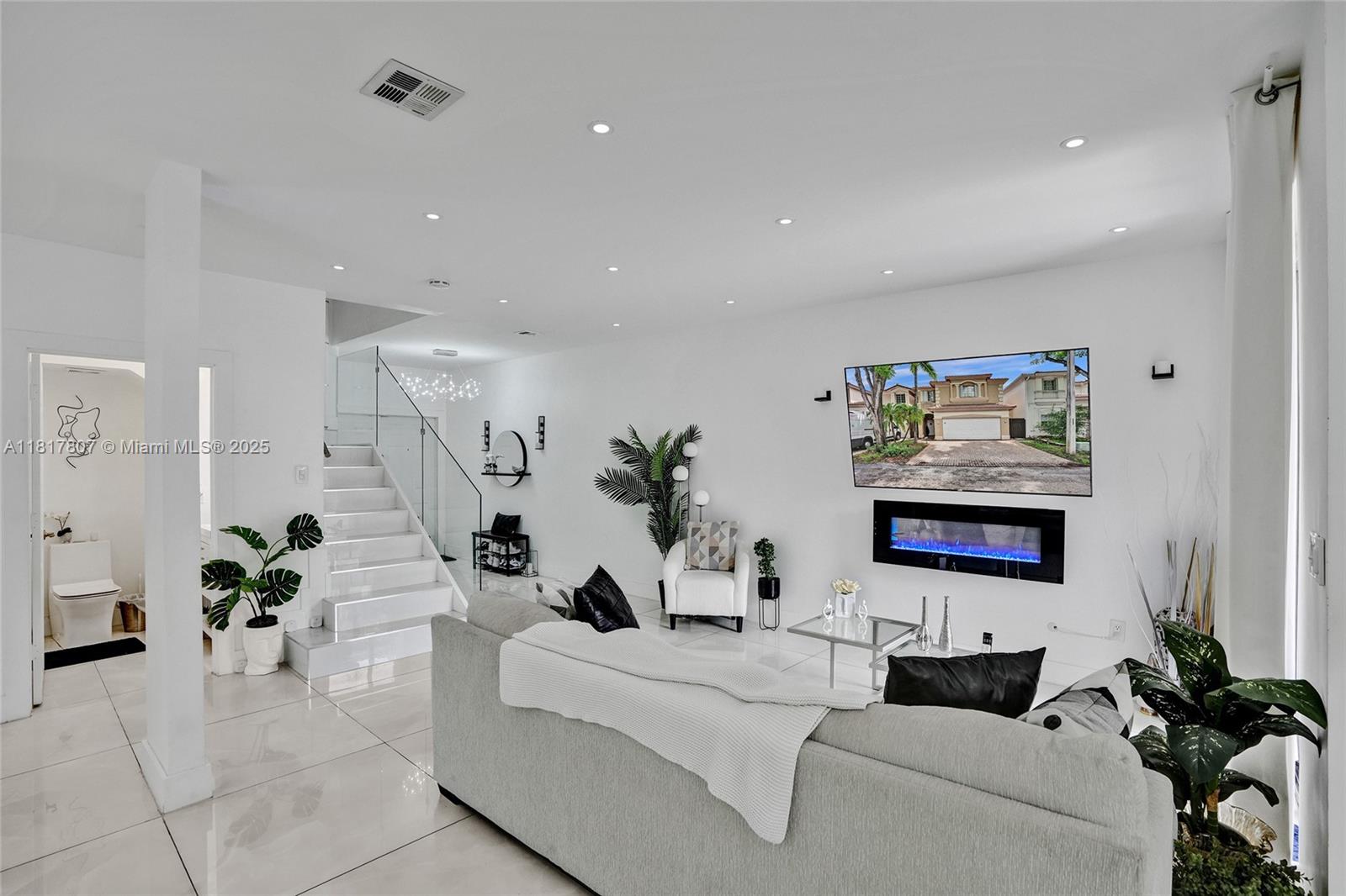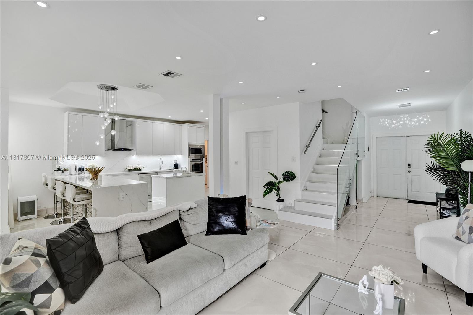 Step into this bright and elegant 4-bedroom home in the prestigious Doral Isles Martinique community. Featuring 2.5 baths, an open-concept modern kitchen with stainless steel appliances, porcelain tile floors, and open staircases that elevate the entire feel. Enjoy spacious living with a large walk-in closet and a 2-car garage. The private outdoor patio is perfect for entertaining. Completely renovated and move-in ready.