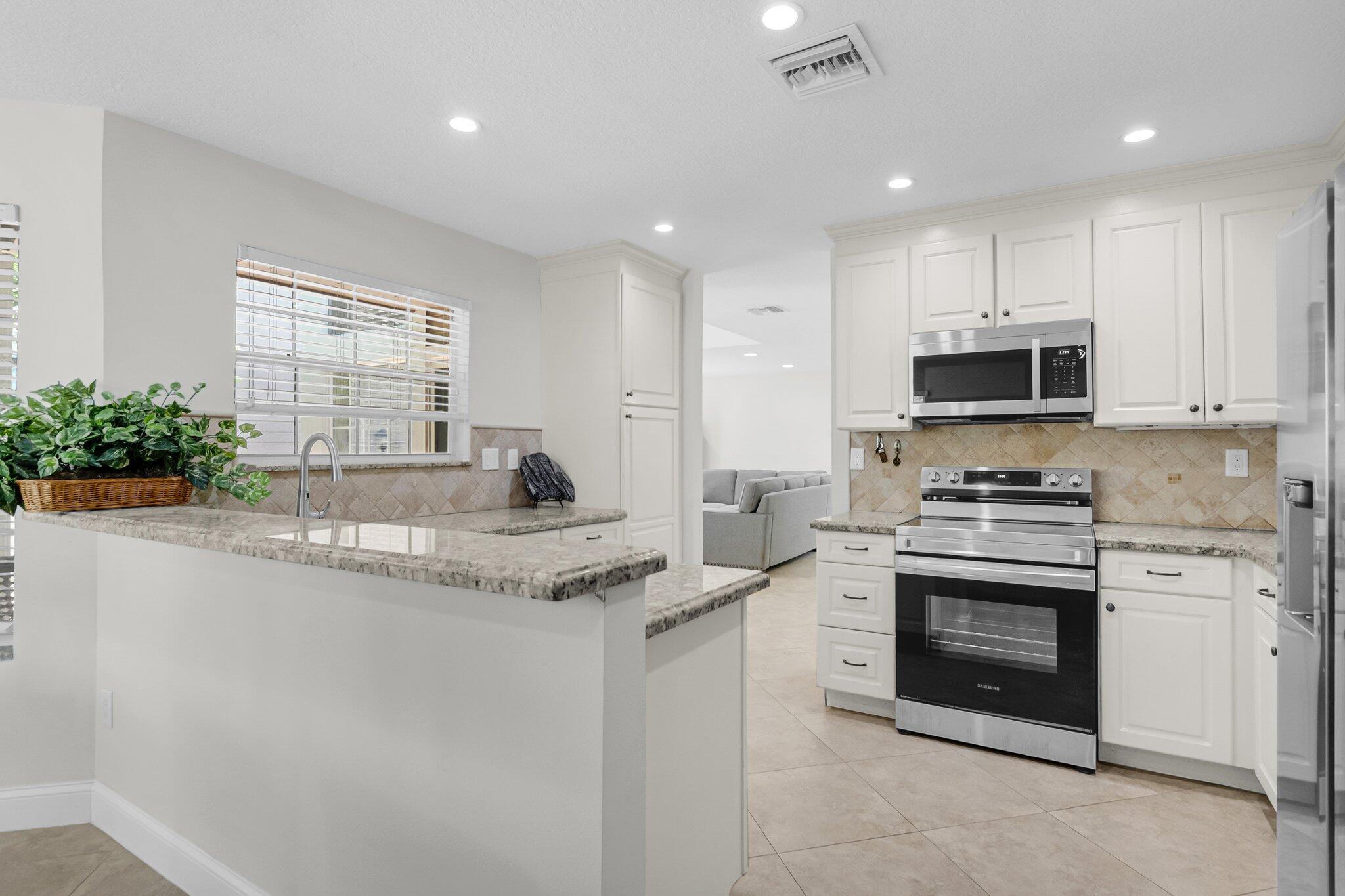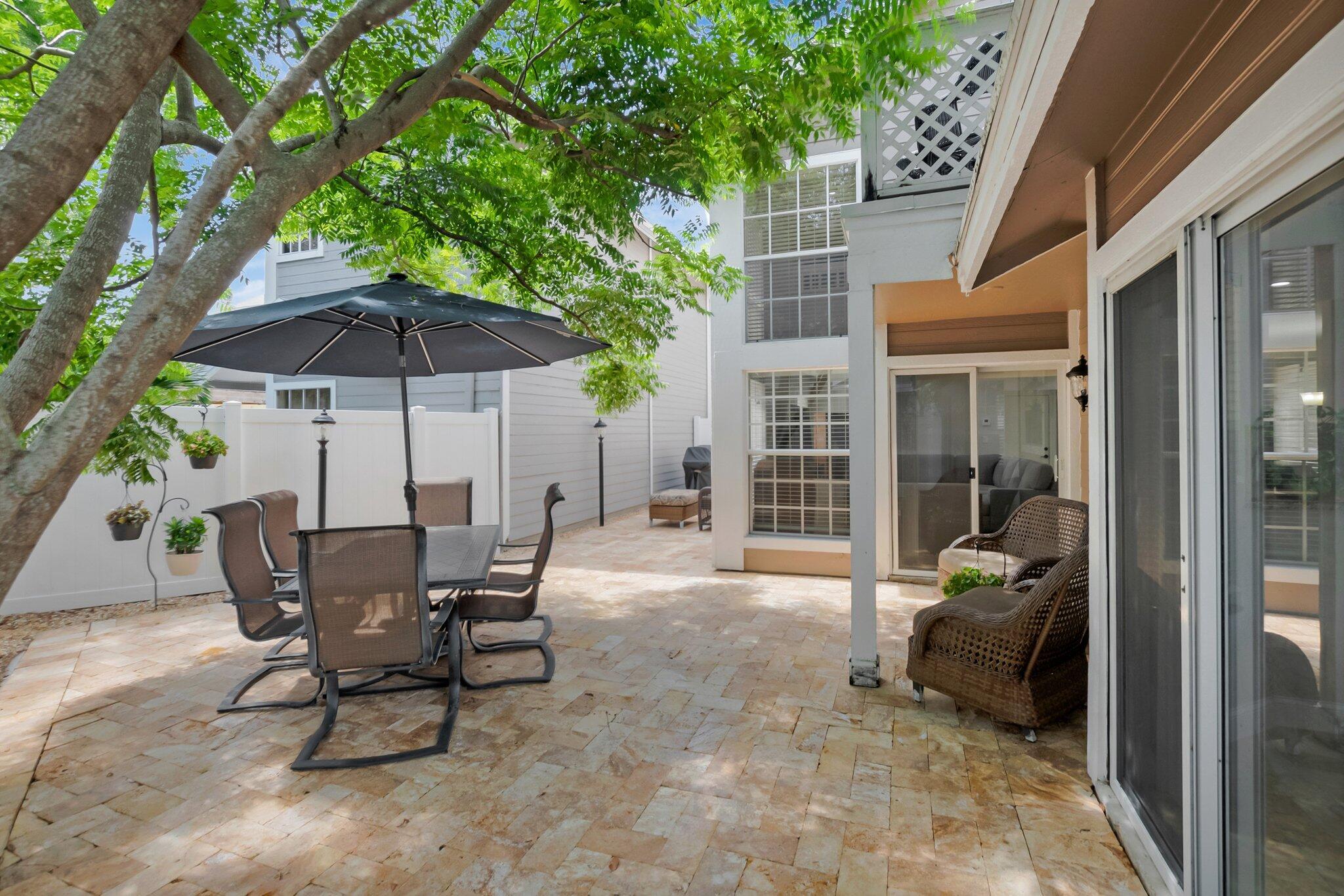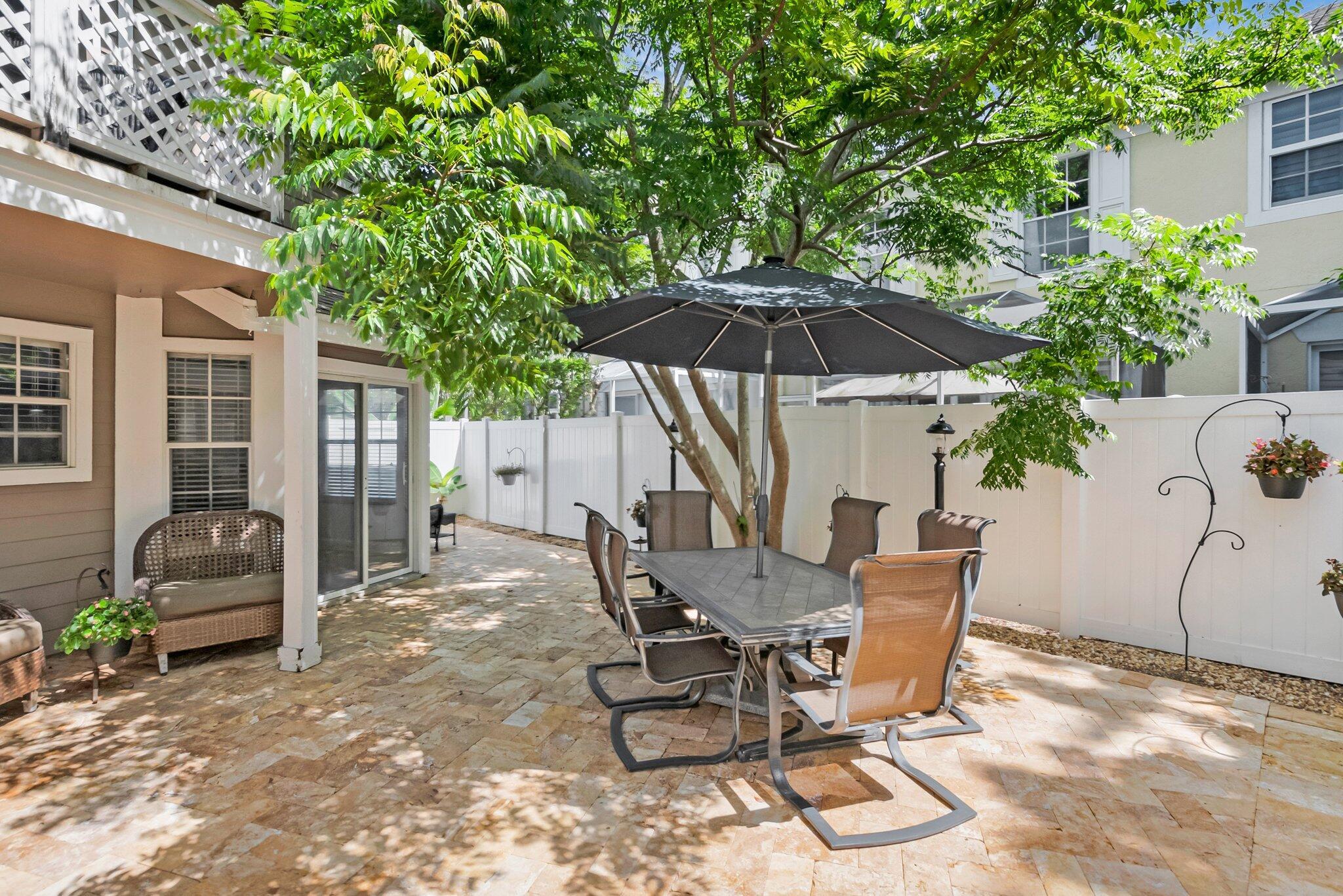 Boca's Best! This home features an updated living space with new kitchen appliances, built-in closet systems, and a private patio. As the last home in the cul-de-sac, it offers extra garden space and guest parking next door. This incredible gated community boasts two pools, a playground, tennis and basketball courts, and sidewalks that conveniently lead directly to Boca Center, a vibrant hub with numerous premier restaurants and shops.