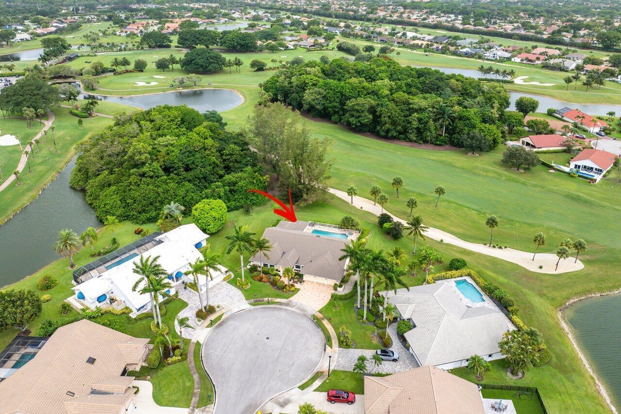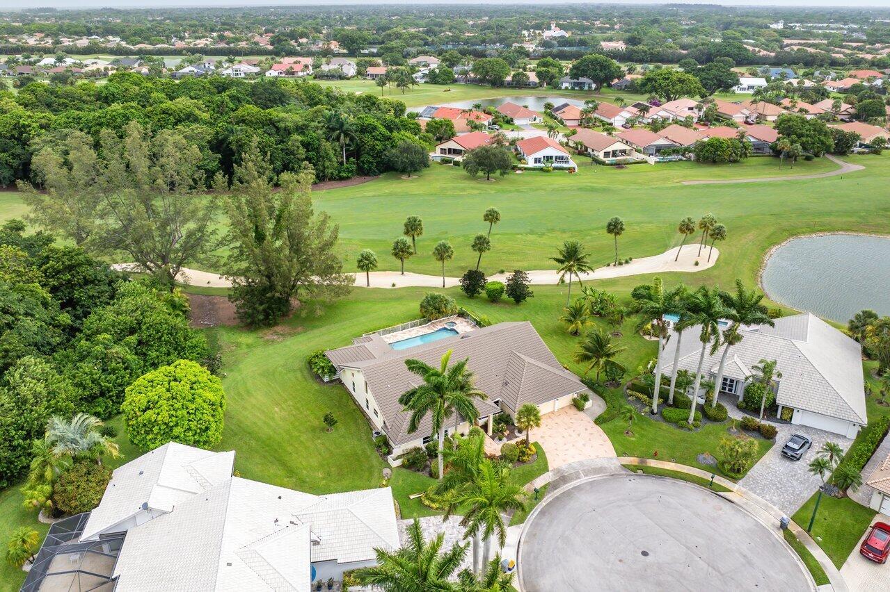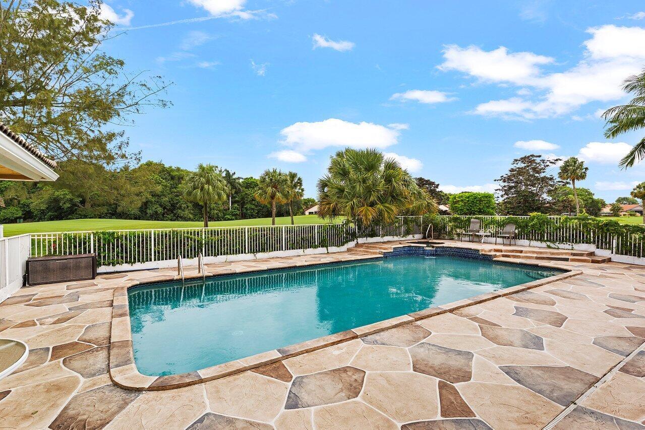 Elegant custom home on a rare oversized lot at the end of the cul-de-sac on one of the most desirable streets in prestigious Boca Woods Country Club, this 3 bed/3.5 bath offers spectacular panoramic golf course views a true standout in the community. Take in the serene setting from the screened patio with oversized pool and cabana bath. Features include a new 4-ton A/C, new oven, new refrigerator, and partial impact windows along with many more improvements throughout the home. Boca Woods is an all age Country Club Community which offers resort style amenities, including two championship golf courses, Har Tru tennis courts, pickleball courts, state of the art fitness center, spa, game room, fully renovated clubhouse with fine dining and much more! Mandatory Country Club