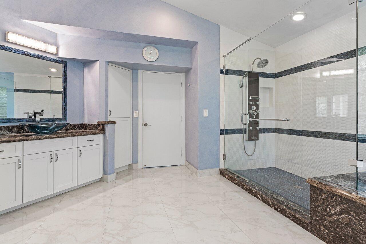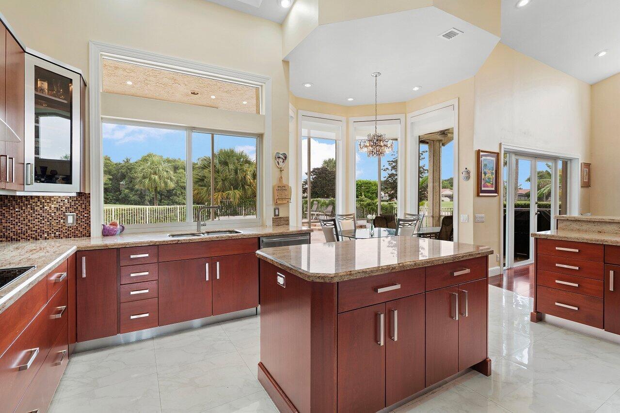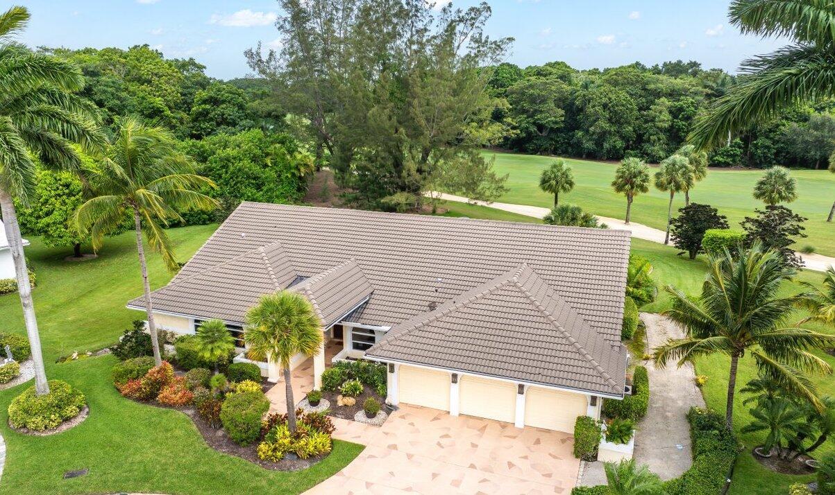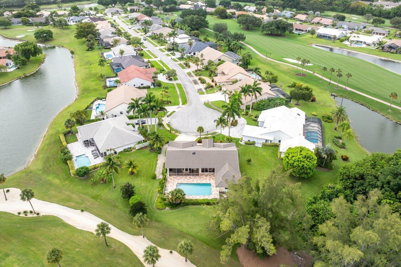 Elegant custom home on a rare oversized lot at the end of the cul-de-sac on one of the most desirable streets in prestigious Boca Woods Country Club, this 3 bed/3.5 bath offers spectacular panoramic golf course views a true standout in the community. Take in the serene setting from the screened patio with oversized pool and cabana bath. Features include a new 4-ton A/C, new oven, new refrigerator, and partial impact windows along with many more improvements throughout the home. Boca Woods is an all age Country Club Community which offers resort style amenities, including two championship golf courses, Har Tru tennis courts, pickleball courts, state of the art fitness center, spa, game room, fully renovated clubhouse with fine dining and much more! Mandatory Country Club