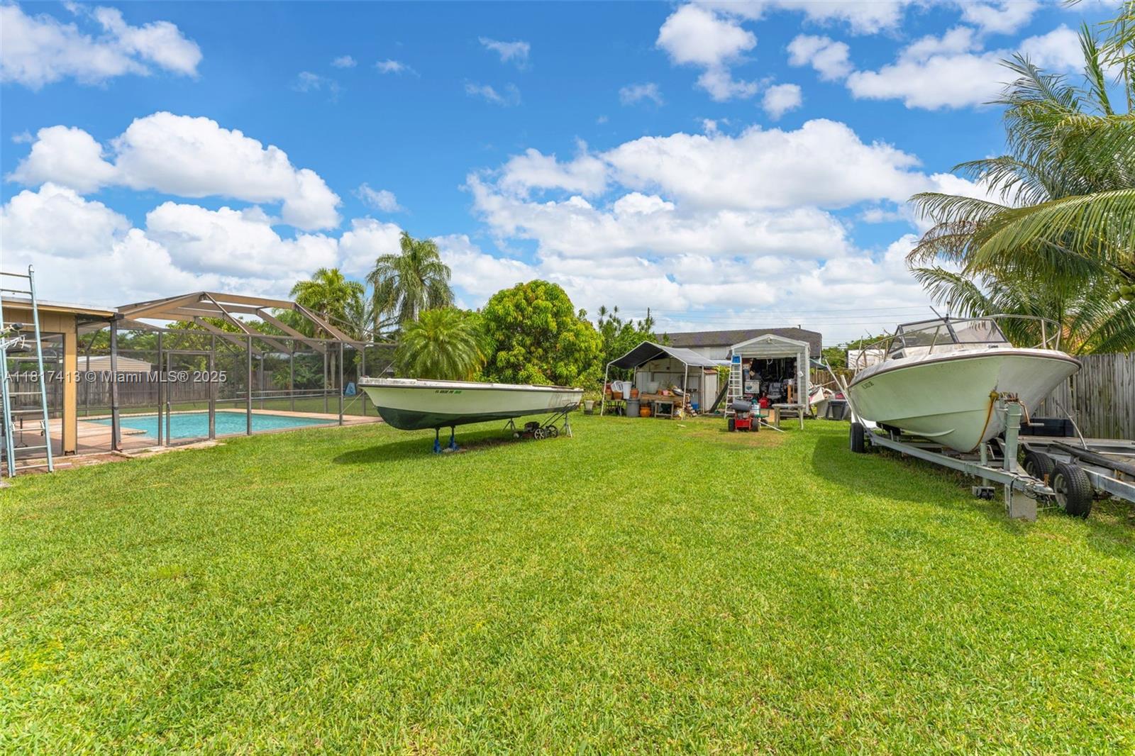Well-kept 3-bed, 2-bath home in a peaceful Homestead neighborhood on a 1/4+ acre lot. Features a screened-in pool, updated kitchen with modern finishes, and split floorplan with all bedrooms on the same side. Spacious primary bedroom includes a walk-in closet. Enjoy a large backyard with mature mango and banana trees—plenty of space for entertaining or gardening or parking for RV's or Boats. No HOA or Restrictions. Spacious Garage which includes an additional laundry and extra storage room. Large circular driveway with plenty of guest parking.Quick access to US-1, Turnpike, shopping, and schools.