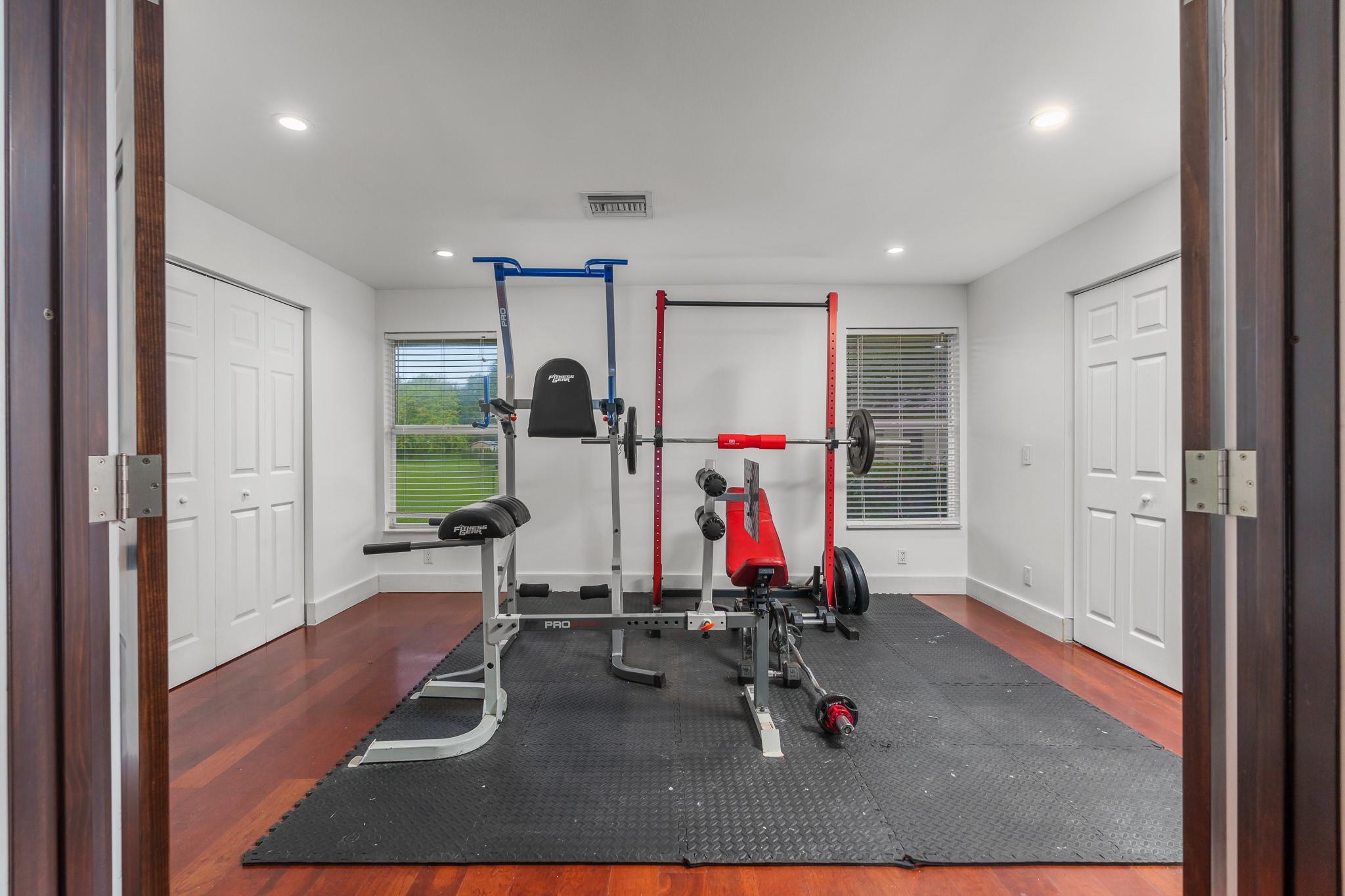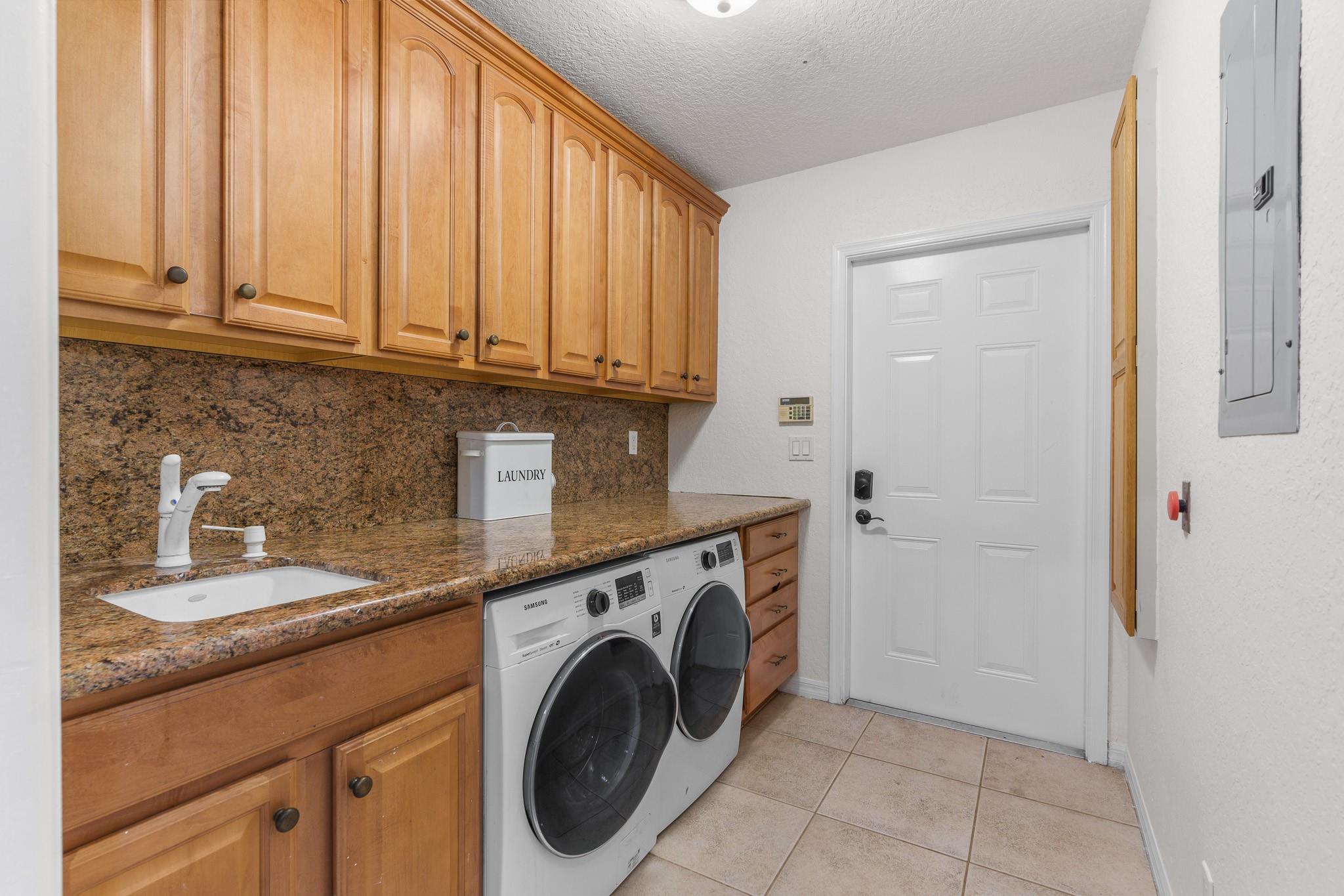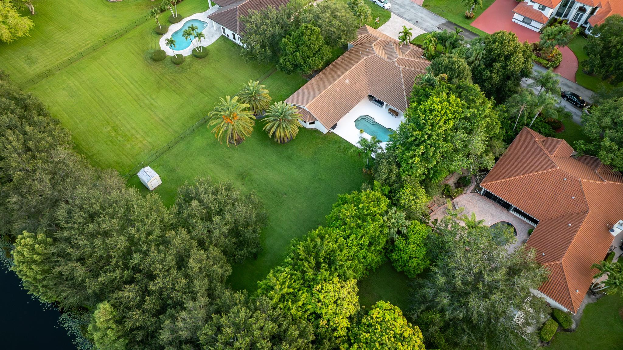 Nestled in a charming and quaint community of just 39 homes, this one-story home is just perfection. The roof was replaced in 2023, and in 2024, hurricane impact windows and doors were elegantly installed, ensuring both safety and style. Freshly painted inside and out, the residence boasts an impressive layout featuring six bedrooms, three bathrooms, and a three-car garage . Enjoy versatile living with a den that can easily serve as a theater, game room, or gym. Step outside to your own serene oasis, complete with a sparkling pool and a sprawling yard that leads directly to the water. The interior showcases tile flooring in the social areas for easy maintenance, while the bedrooms feature rich wood floors. The kitchen is equipped with stainless steel appliances, ideal for the home chef.