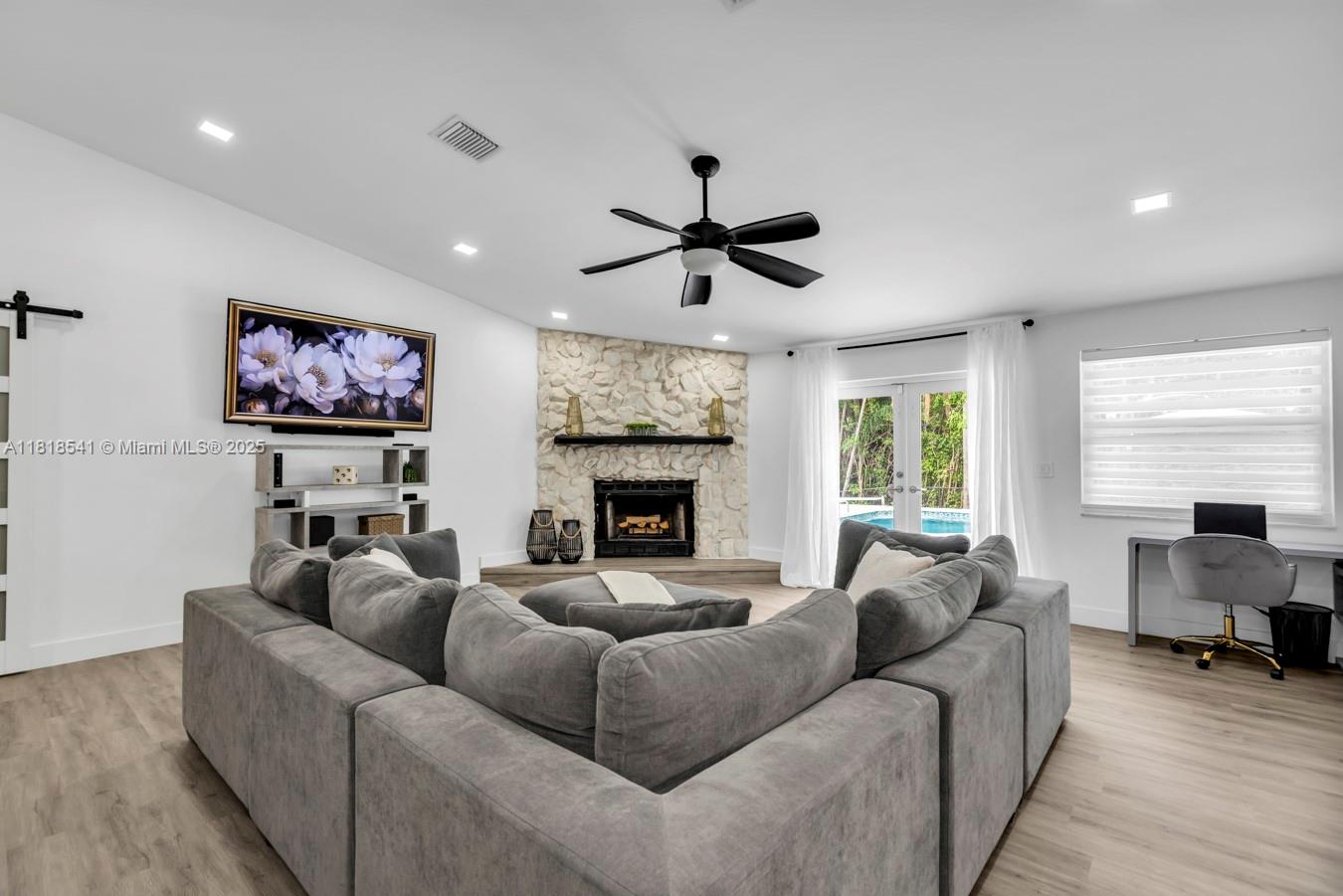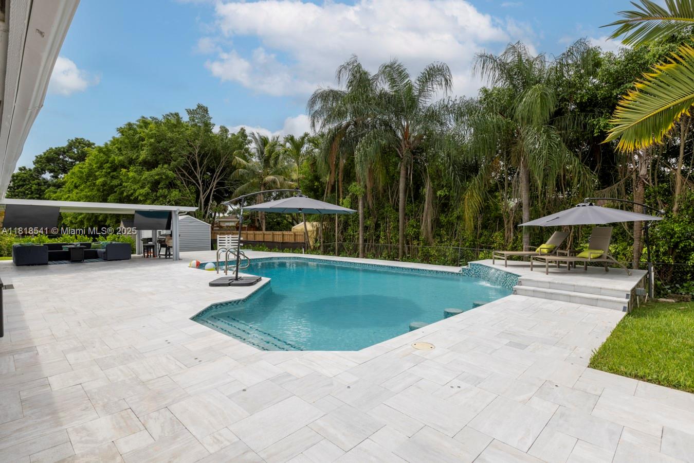 Stunning single-family home in the sought-after equestrian community of Plantation Acres, set on nearly half an acre! Featuring a 2024 roof, impact windows & doors, epoxy garage floor, LED lighting inside & out, and LVP flooring. Enjoy a custom indoor bar, gourmet kitchen with quartz countertops, wall-mounted double oven, ample bedrooms with California closets, and Tesla charger. Outdoors boasts a sparkling pool, basketball court, Pergola, shed, and approx. $20K in tropical landscaping with fruit trees. Close to top schools, supermarkets & Sawgrass Mall.