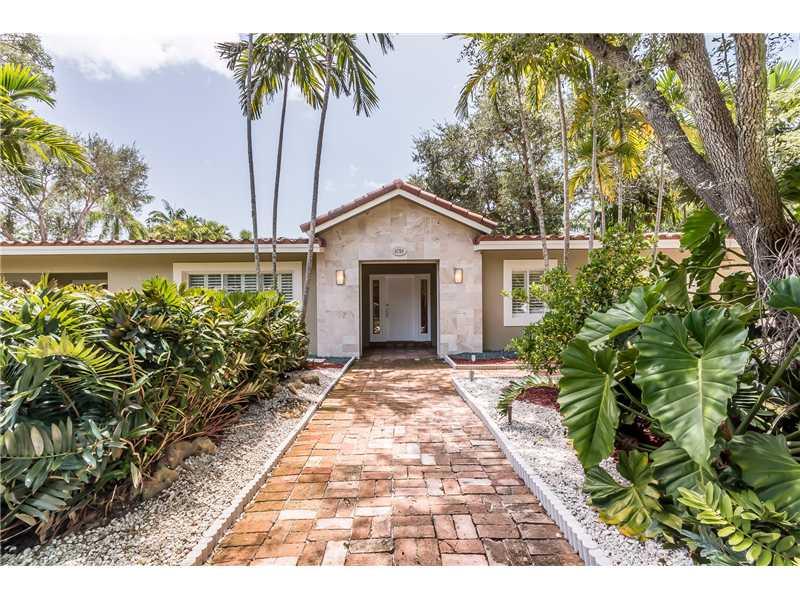 Attention tennis enthusiasts! Remodeled 6/4.5 corner acre home on quiet dead-end street. New roof w/warranty, impact windows, kitchen w/SS appliances, cooking island, egyptian marble and wood floors, crown moldings, plantation shutters, coffered ceilings. Master bedroom has private office, soaking tub and separate shower. Exterior boasts large covered terrace, heated pool, lighted tennis & basketball court,lush tropical landscaping.