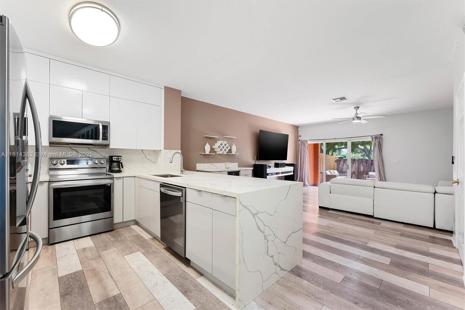 Welcome to your new home! Step inside to a stunning kitchen designed for both function and flair—complete with oversized countertops, shaker-style cabinetry, a custom-built spice rack, and a bar area with a built-in wine fridge, perfect for entertaining! Enjoy a spacious floor plan with a private garage, fully fenced in patio and a brand-new metal roof (2025)- this property checks all the boxes. Nestled in the heart of Pembroke Pines, this home is just minutes from premier shopping, dining, and entertainment, with easy access to grocery stores, major highways, and local hospital - Memorial Hospital West. No HOA approval required! Schedule your showing today and bring your best offer!