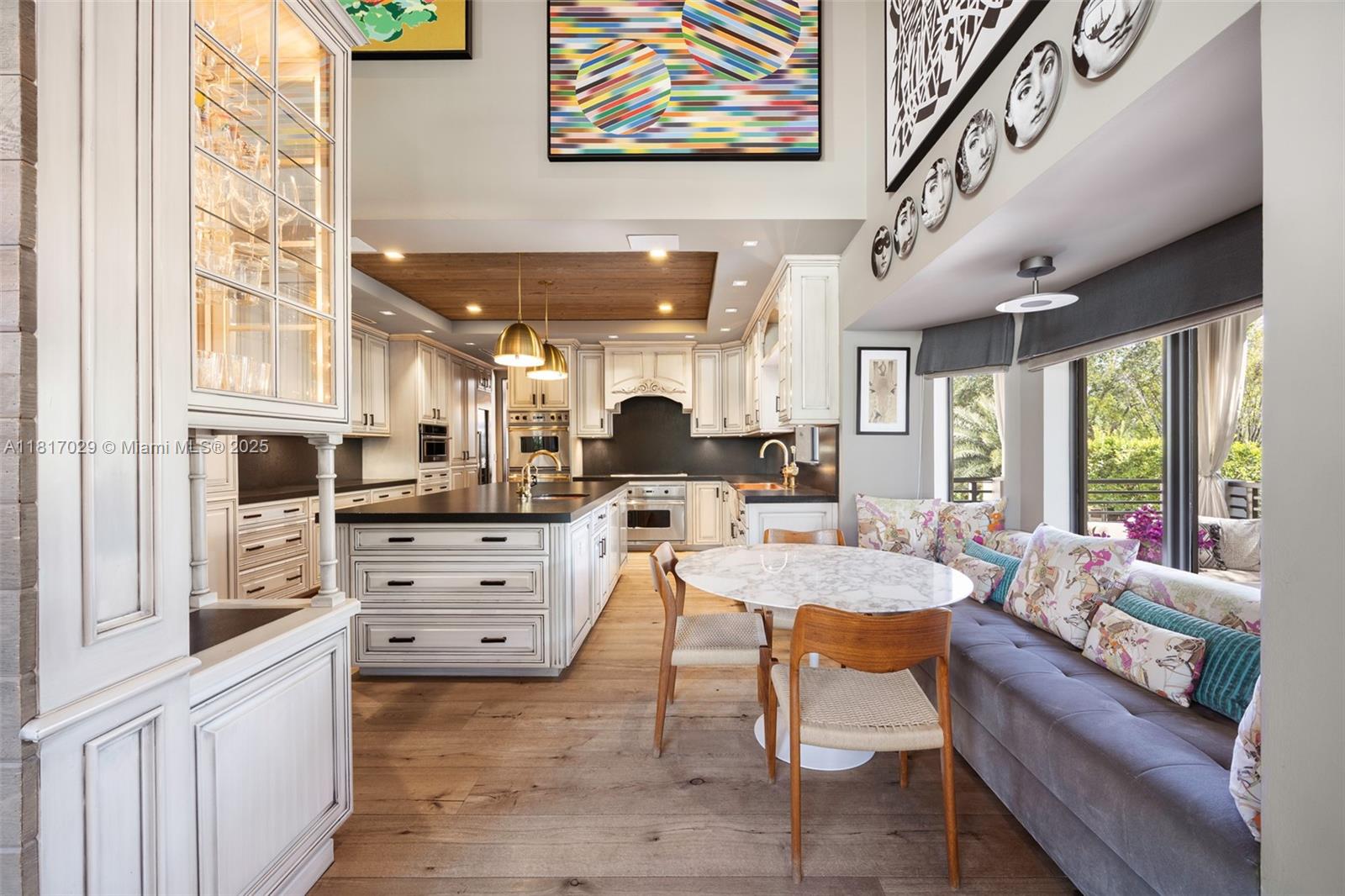 NEW TO PLUBLIC WEBSITES. Located on a quiet cul-de-sac in exclusive guard-gated Cocoplum. Fully Remodeled 6-bed, 4.5-bath residence for grand entertaining & serene family living. Formal living & dining rooms, office/den, spacious bedrooms, marble bathrooms, and a warm family room with dramatic cathedral-ceiling and French doors opening to cozy terrace. Ground-level bonuses: staff quarters with en-suite bath, cabana bath & music studio. Pool, impact glass throughout, new roof (2024). Every detail has been carefully curated. Gourmet kitchen boasts 3 Viking ovens, 2 Miele dishwashers, Thermador wine cellar, and bright breakfast area. Defining feature is elegant custom woodwork—from oak floors to office’s exotic rosewood wall paneling. A luxurious, private sanctuary in one of Coral Gables’ most desirable neighborhoods.
