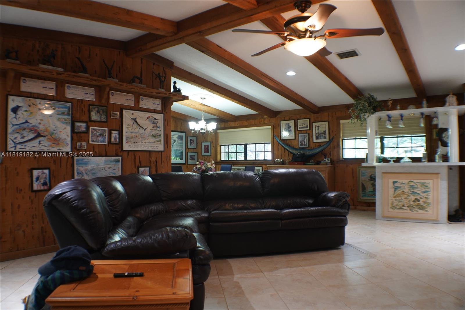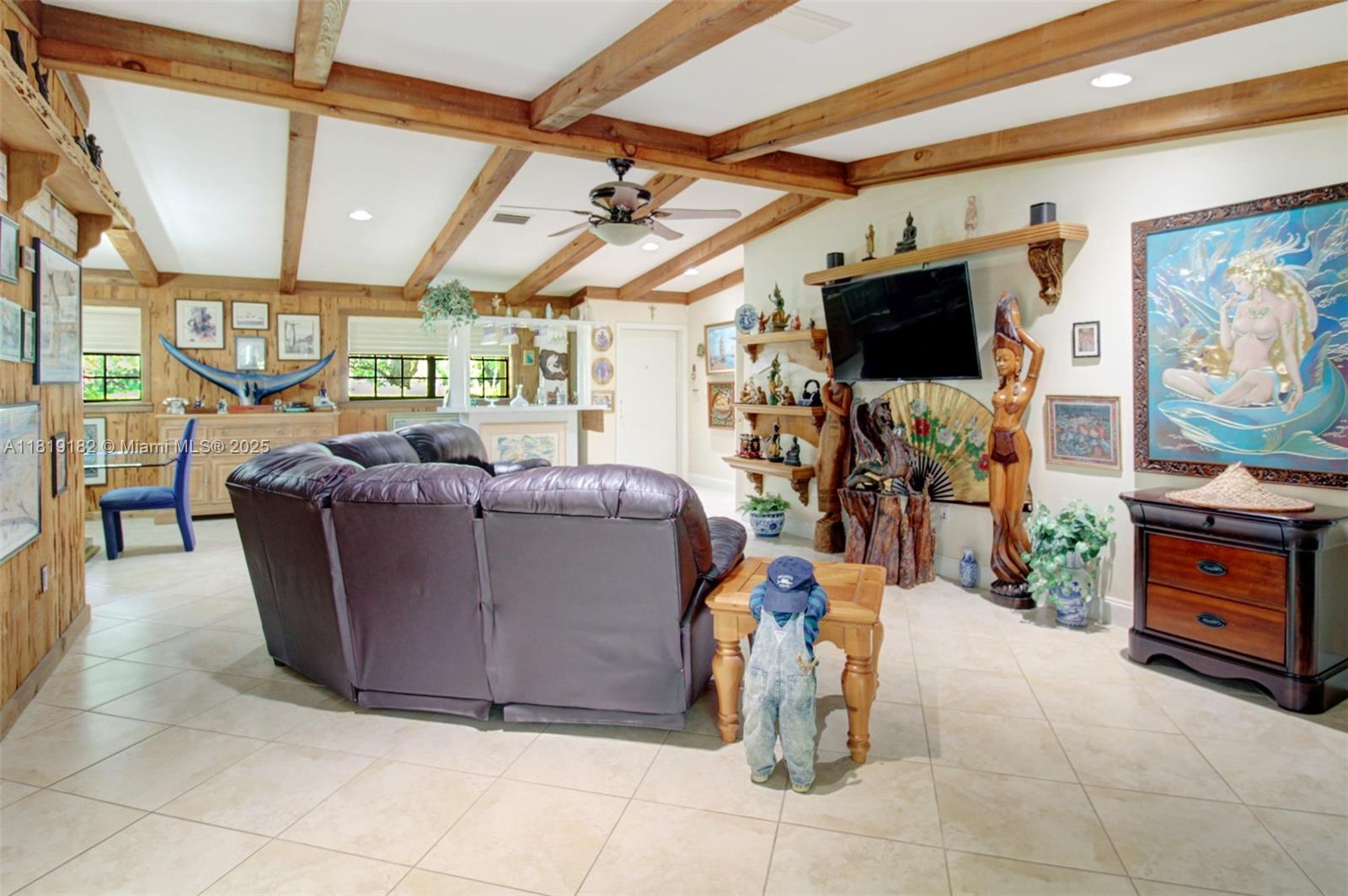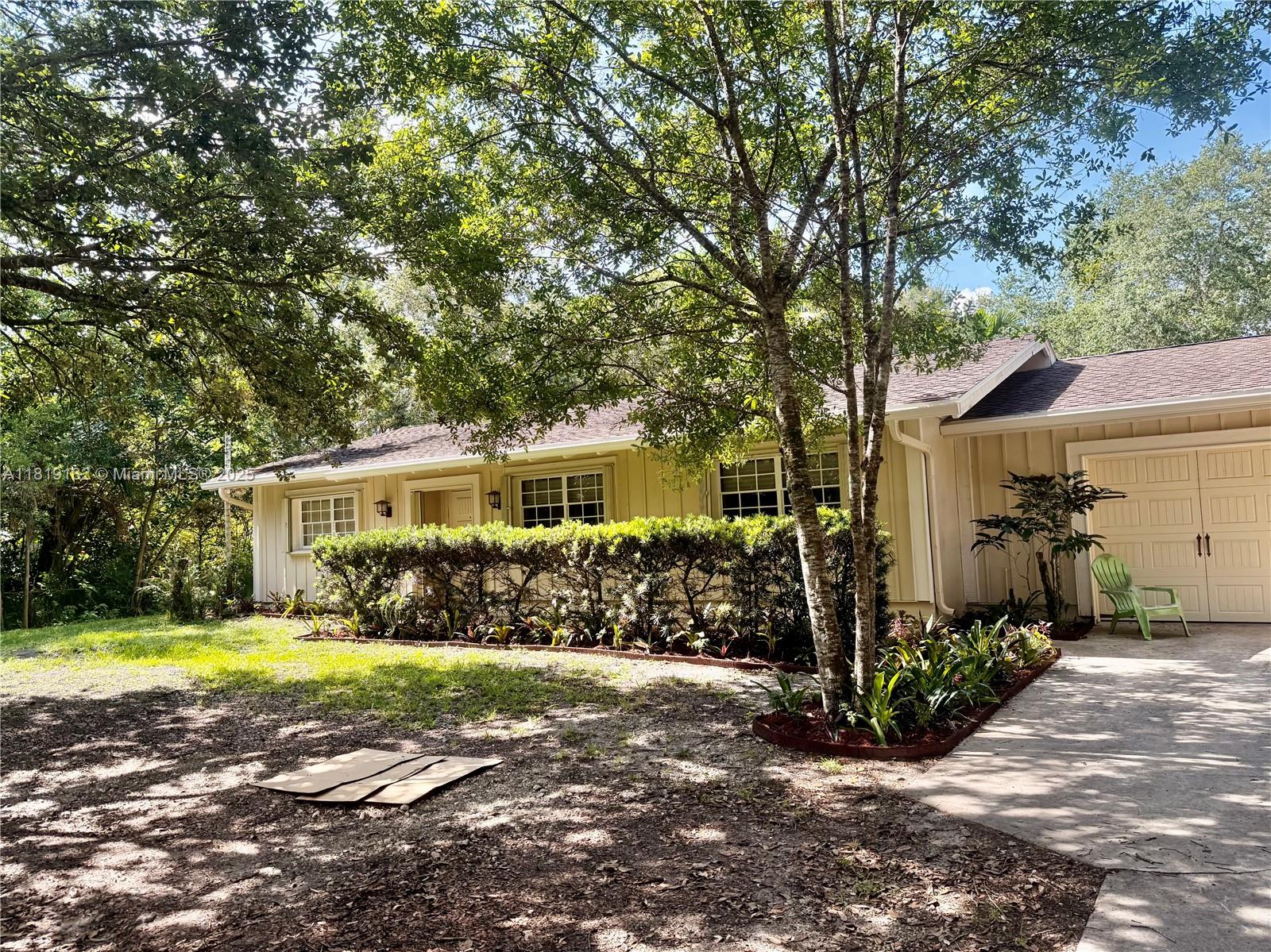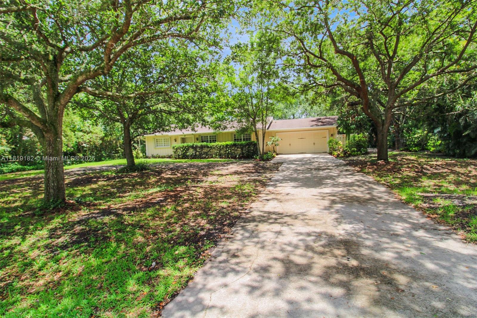 Rare find in Davie, FL—spacious 3-bed, 2-bath ranch-style home on a full acre of private, tropical land. With 2,317 sq ft under roof (including 2-car garage), this property offers an open floor plan, vaulted ceilings, a stone fireplace, large kitchen, Florida room, and a generous master suite with walk-in shower and Jacuzzi tub. Ideal for families needing space to grow or investors seeking land value and long-term upside. Located in a peaceful, equestrian-style neighborhood with no HOA, just minutes from major highways and top-rated schools. Includes 3 AC units, hurricane shutters, and a whole-home generator. Room to expand, room to breathe—don’t miss this one-acre opportunity!
