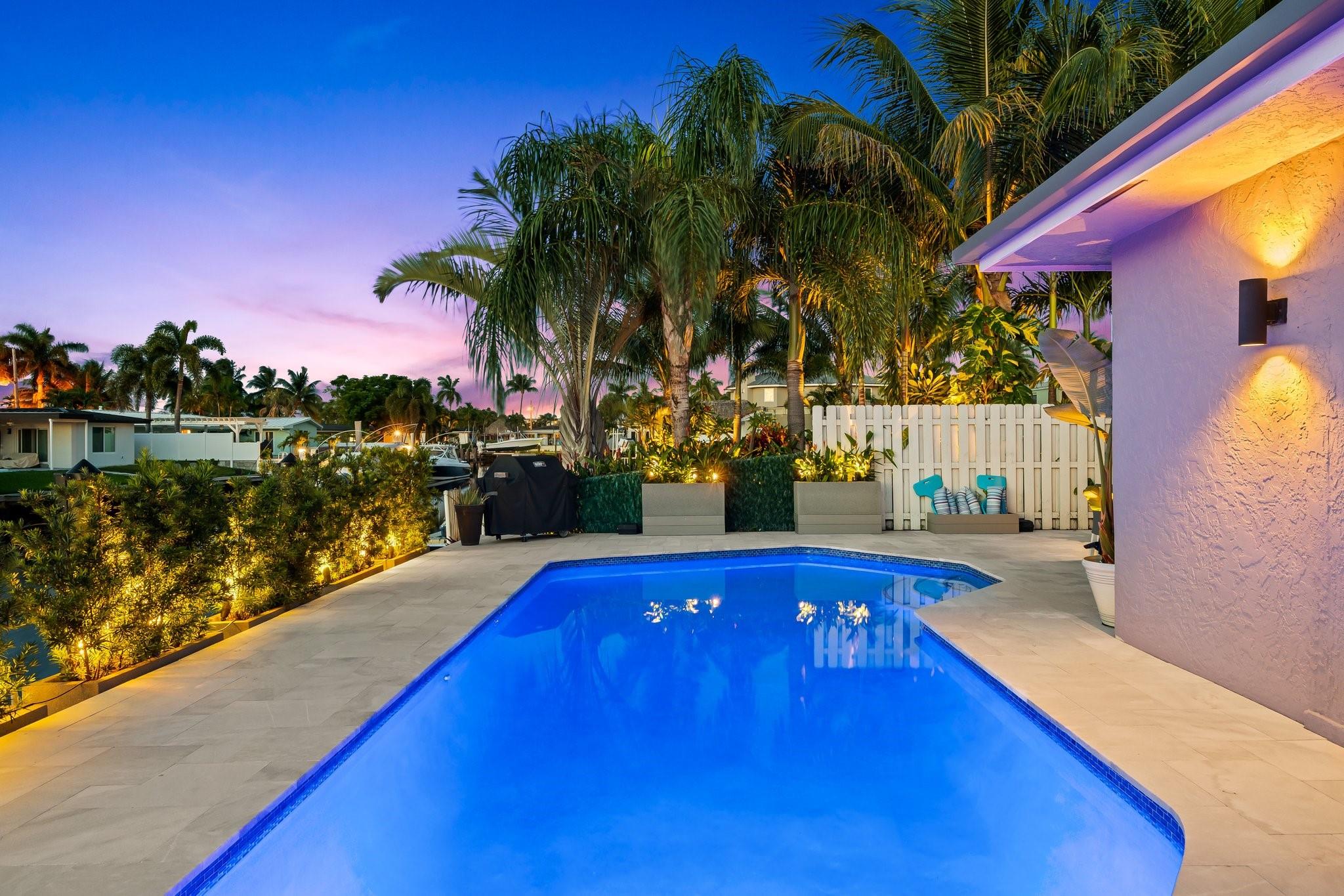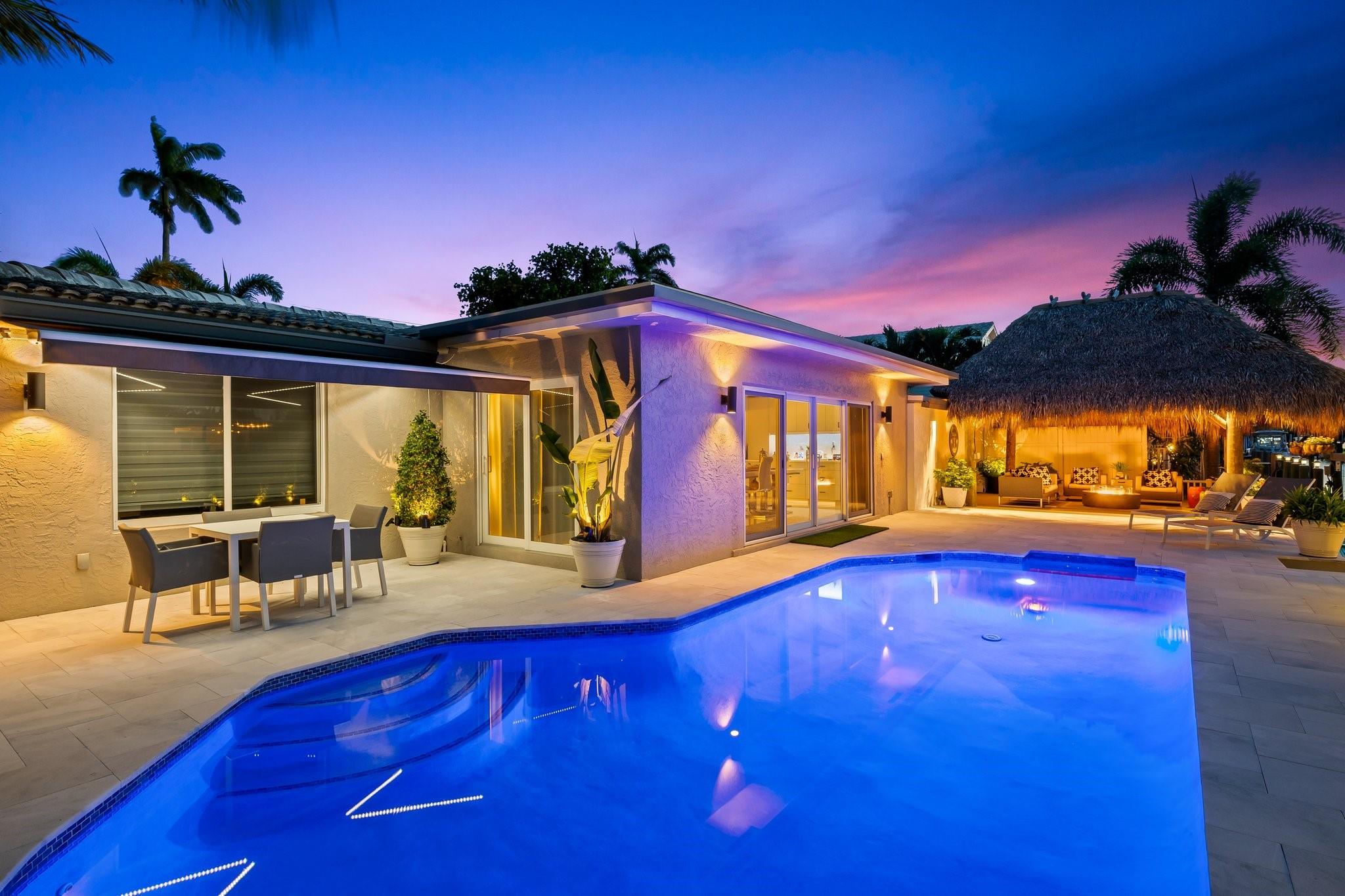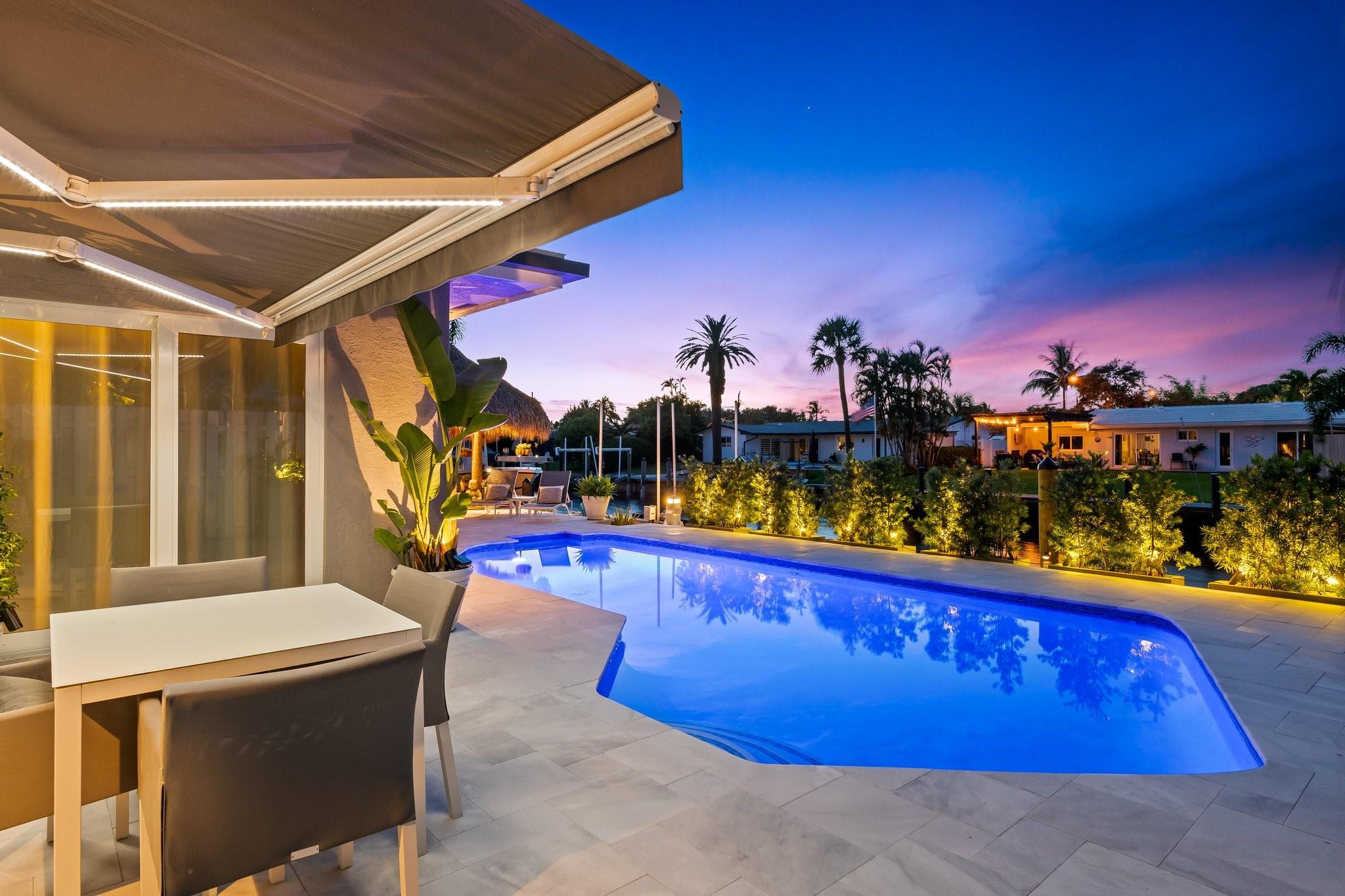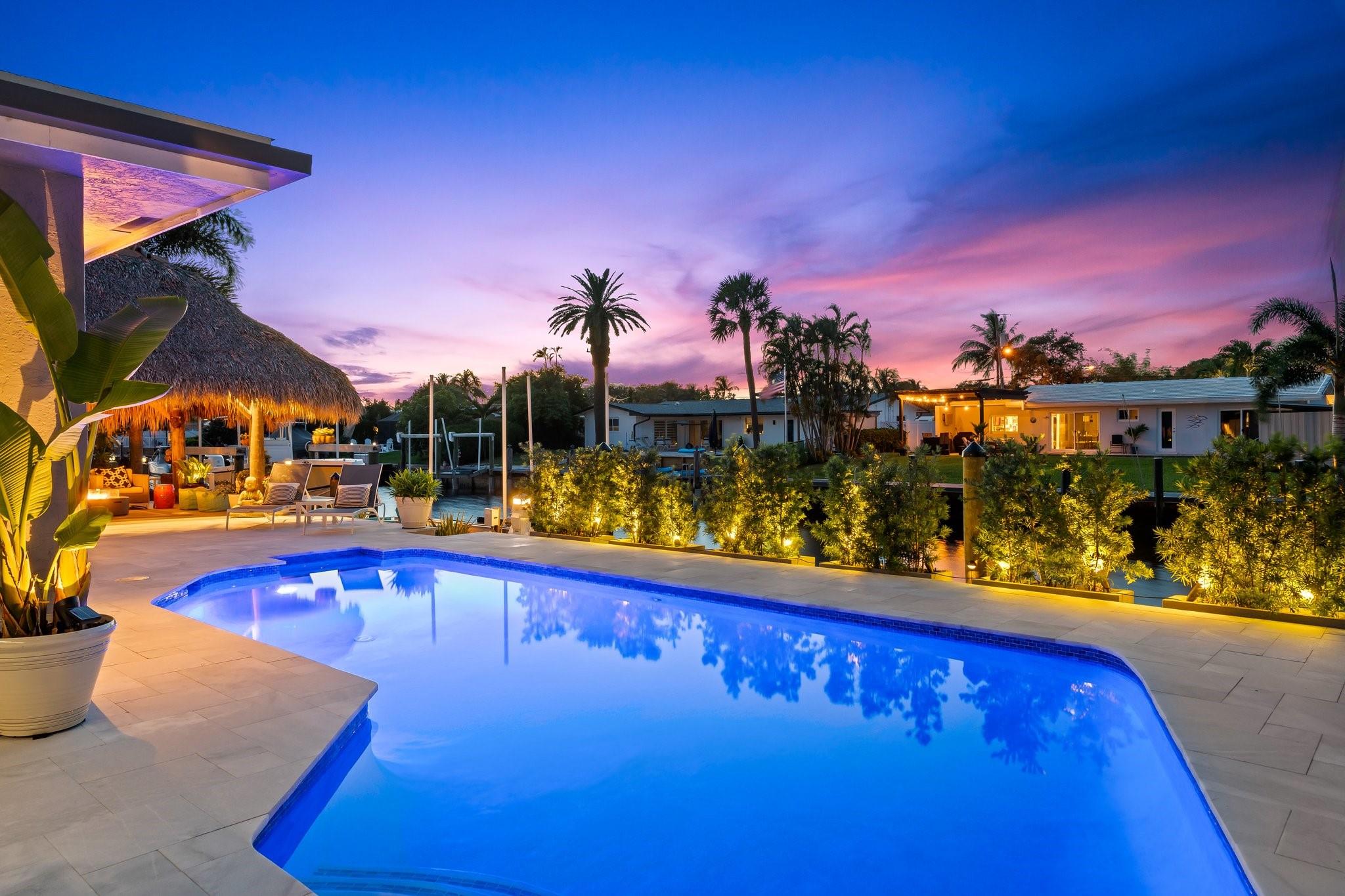 This 4BD/2BA Ocean-Access Home Offers Refined Indoor/Outdoor Living With No Detail Spared. Experience Turnkey Waterfront Luxury – Immaculately Upgraded Inside & Out! Seller Invested Top-Tier Upgrades Throughout. Enjoy Serene Canal Views From Relaxing Backyard Including 70' Dock With Lift, Saltwater Heated Pool, New Sleek Pavers, New Motorized Awning, And New Premiere Designer Outdoor Lighting. Relax Under The Updated Tiki Hut Or Entertain In Style with Flow Thru Floorplan. Inside Features Soaring Ceilings, Open Layout, A Custom Chef’s Kitchen With High-End Appliances, Including Gas Stove, & Custom Cabinetry, Spa-Like Baths, All-New Electric, Impact Windows/Doors/Garage. Best-Priced Per Sq Ft For The Quality—Just 15 Mins To Hillsboro Inlet &Beaches.