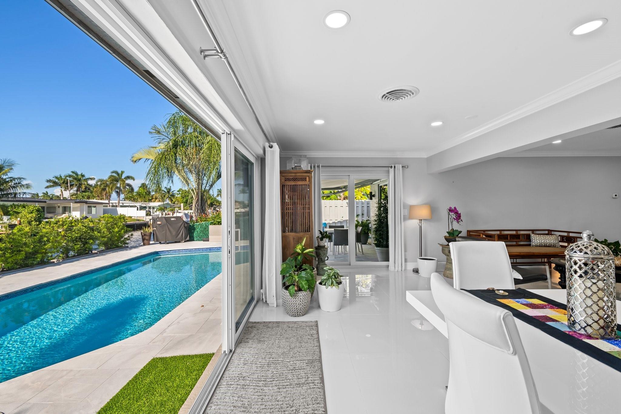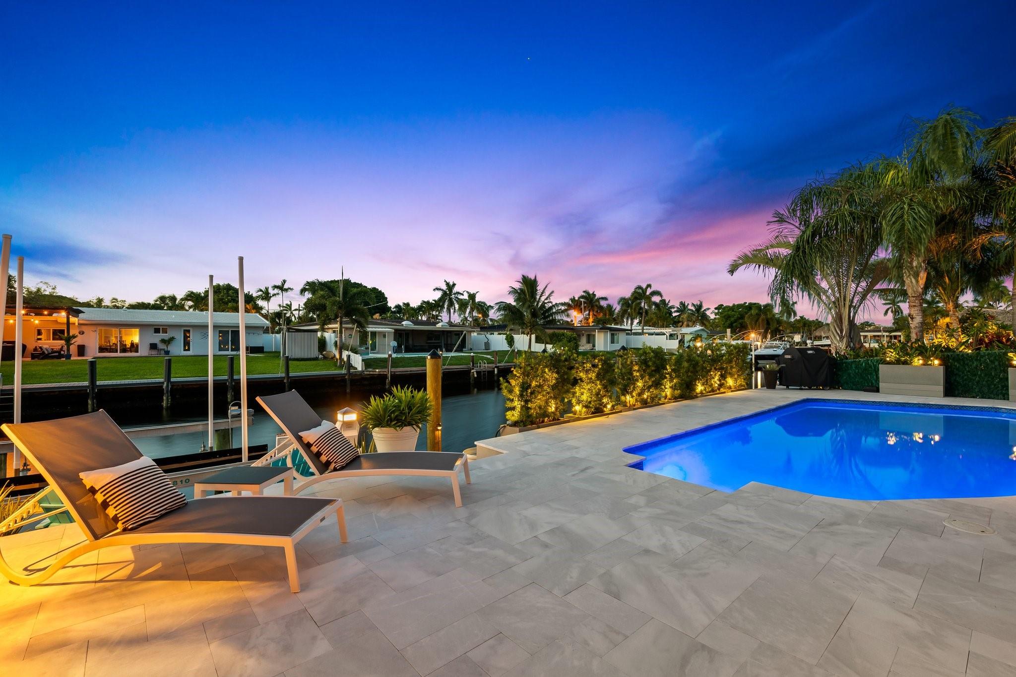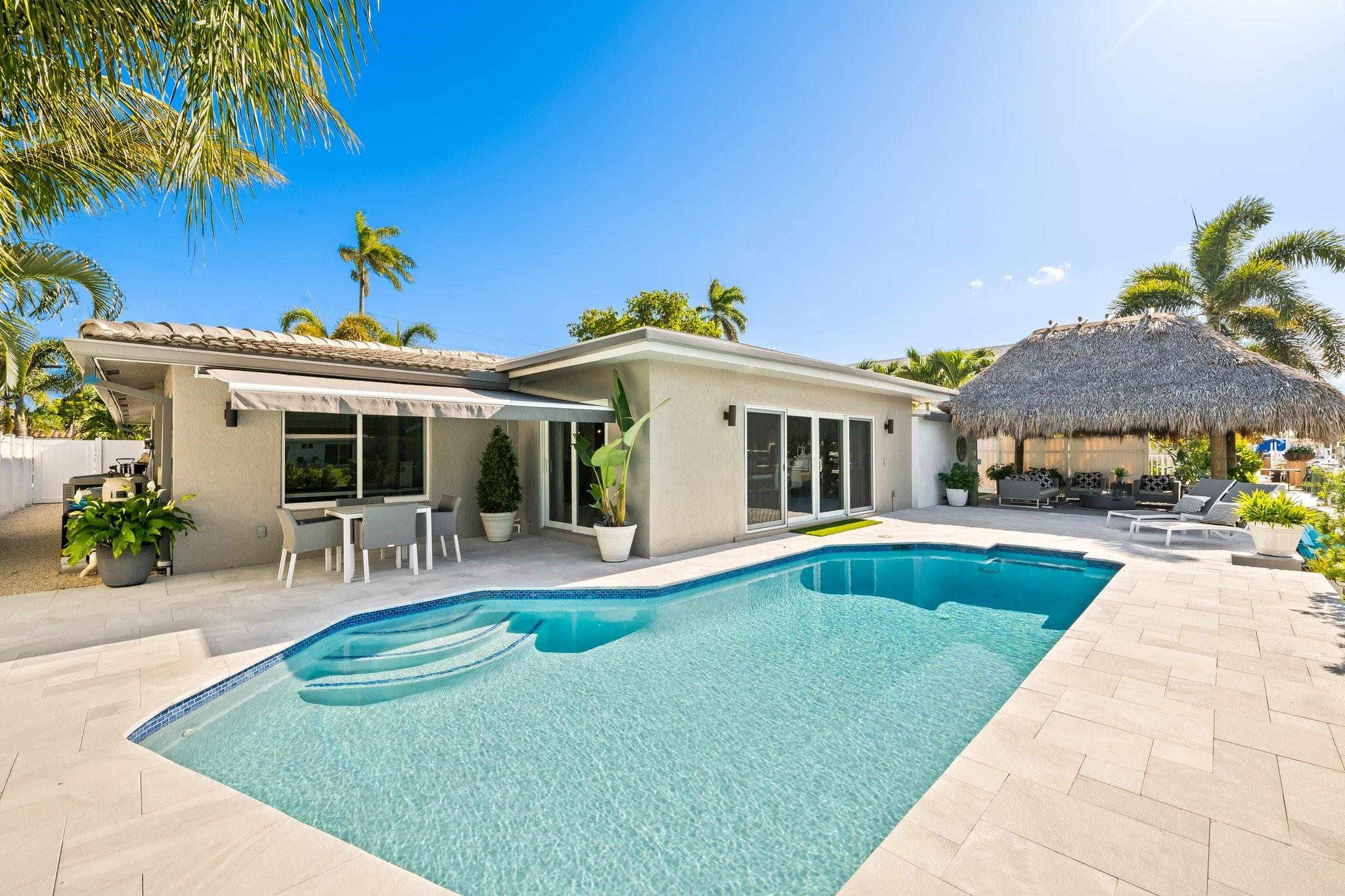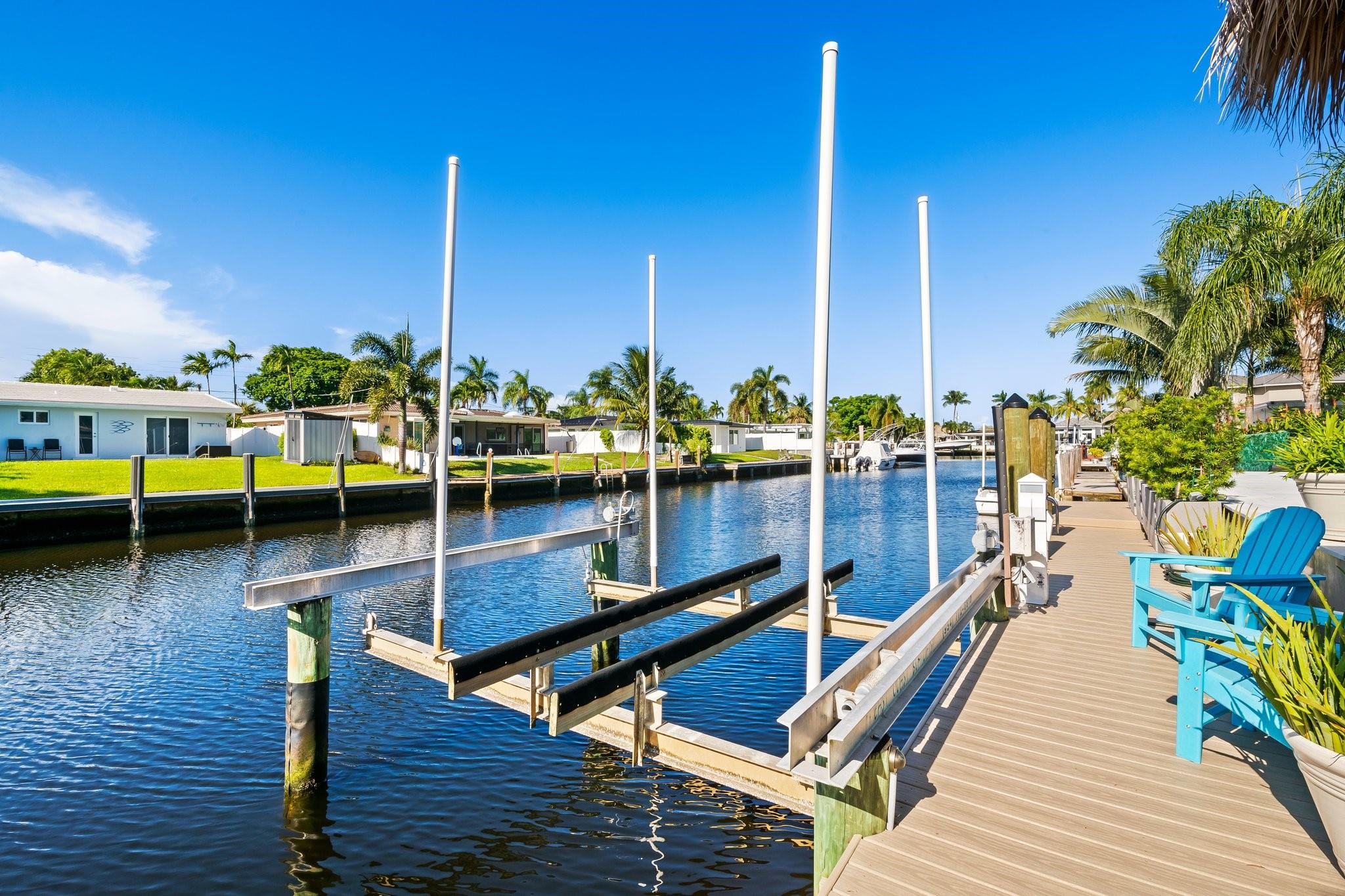 This 4BD/2BA Ocean-Access Home Offers Refined Indoor/Outdoor Living With No Detail Spared. Experience Turnkey Waterfront Luxury – Immaculately Upgraded Inside & Out! Seller Invested Top-Tier Upgrades Throughout. Enjoy Serene Canal Views From Relaxing Backyard Including 70' Dock With Lift, Saltwater Heated Pool, New Sleek Pavers, New Motorized Awning, And New Premiere Designer Outdoor Lighting. Relax Under The Updated Tiki Hut Or Entertain In Style with Flow Thru Floorplan. Inside Features Soaring Ceilings, Open Layout, A Custom Chef’s Kitchen With High-End Appliances, Including Gas Stove, & Custom Cabinetry, Spa-Like Baths, All-New Electric, Impact Windows/Doors/Garage. Best-Priced Per Sq Ft For The Quality—Just 15 Mins To Hillsboro Inlet &Beaches.