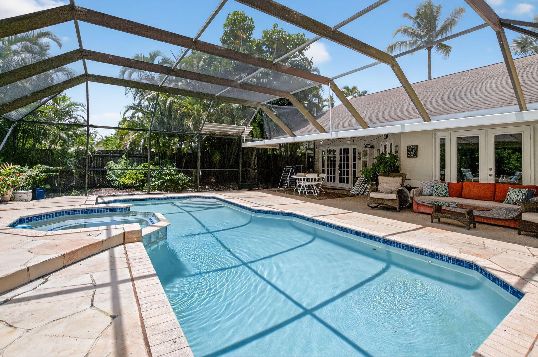 Stunning 3BR 2B + bonus home office/home gym, screen enclosed pool home sits on a 1/4-acre pie shaped fenced cul-de-sac lot. Lush tropical landscaping with many fruit trees. Pool with heated spa,Inground propane tank which can be used to power a generator. Exterior recently painted. Impact windows & multiple French doors that fill the house with natural light. New ceramic tile throughout living area to look like wood. Newer refrigerator, dishwasher & range w/double oven. A/C 3 yrs old. Large walk-in pantry for extra storage space. . Pull-down stairs for attic access which has been sprayed with extra insulation. Roof has been treated with a coating for longer sustainability.