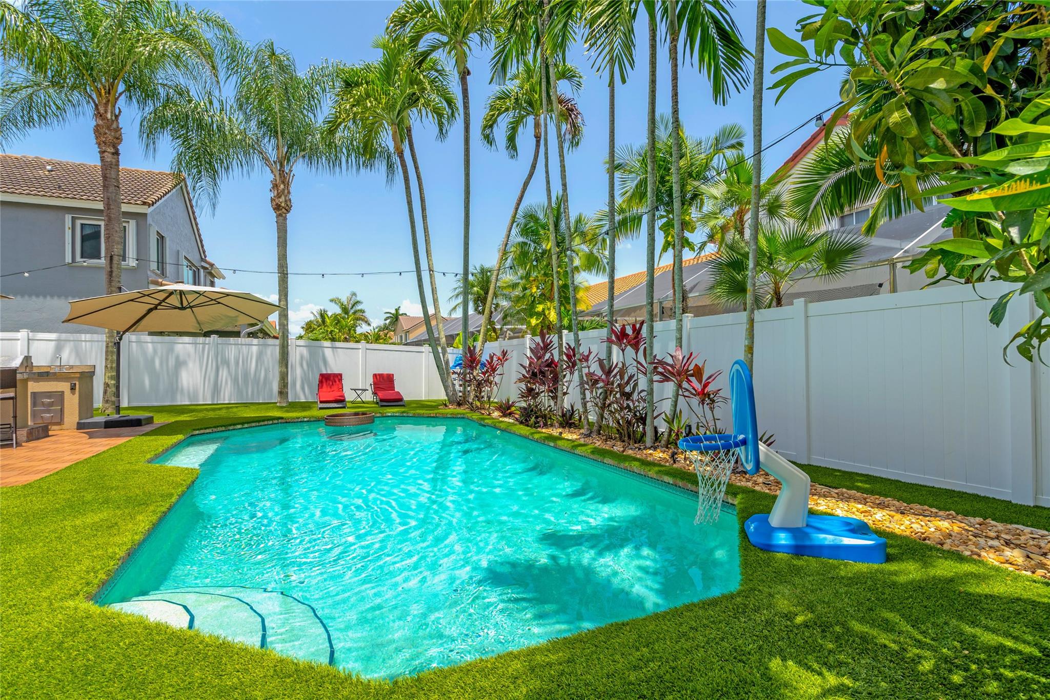 Beautiful 5-bed, 3-bath heated pool home in the gated Chapel Trail Estates community. This move-in ready home boasts an open-concept floor plan, gourmet kitchen with stainless steel appliances and granite countertops, and a luxurious master suite with a spa-like bath. Enjoy your own backyard oasis with a covered patio and outdoor bar & grill. Recent updates include new paint, impact doors & garage doors (2022), pool heater & pump (2022), and backyard remodel (2023). Washer & dryer (2024). A perfect home for Florida living! Schedule a showing today!