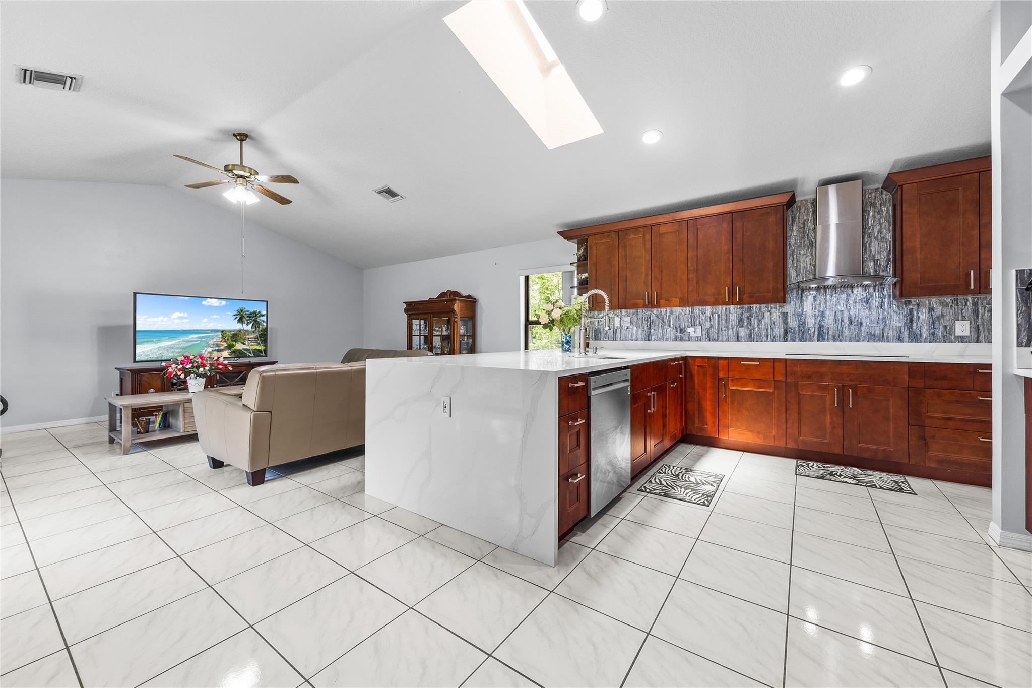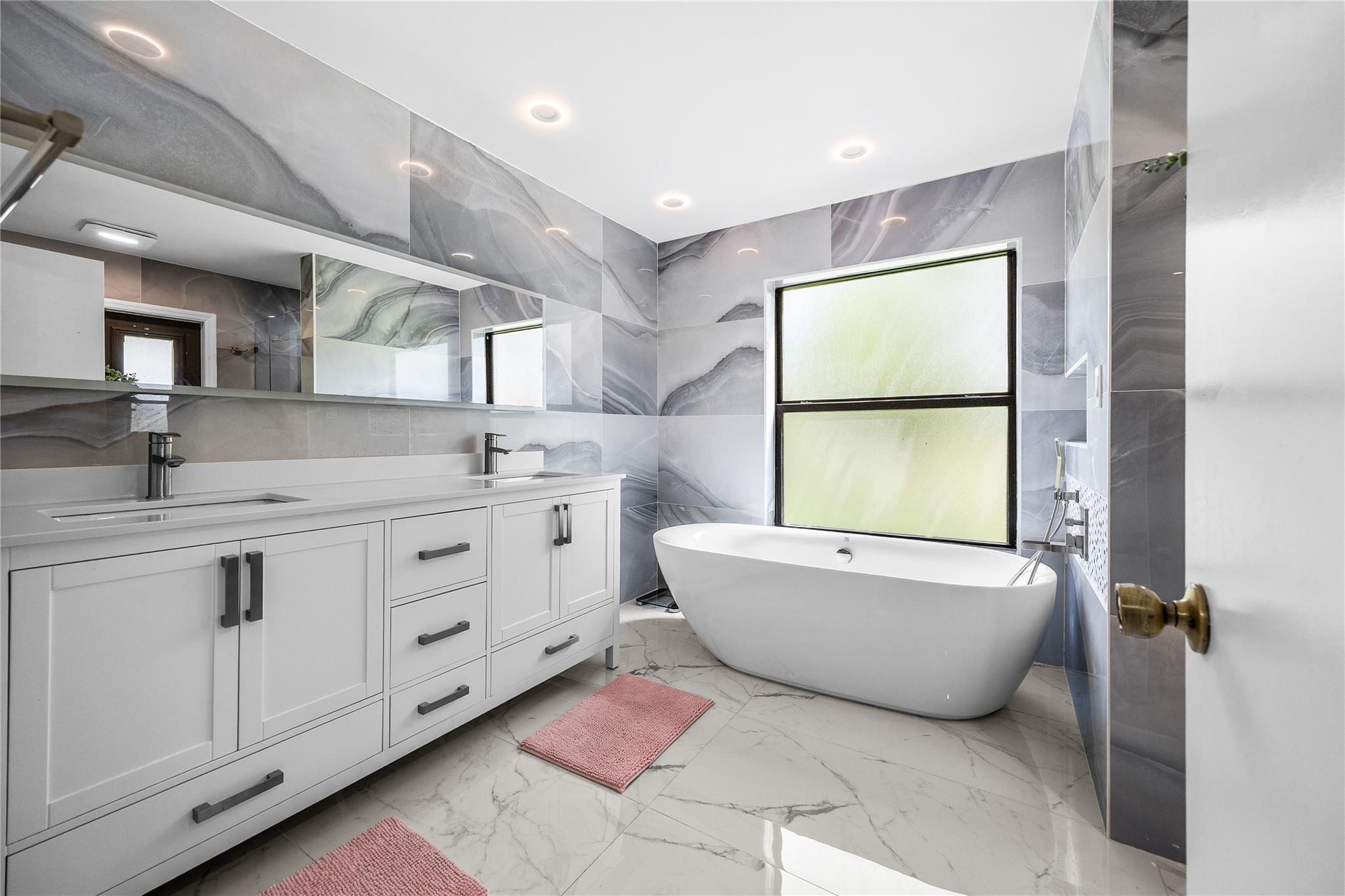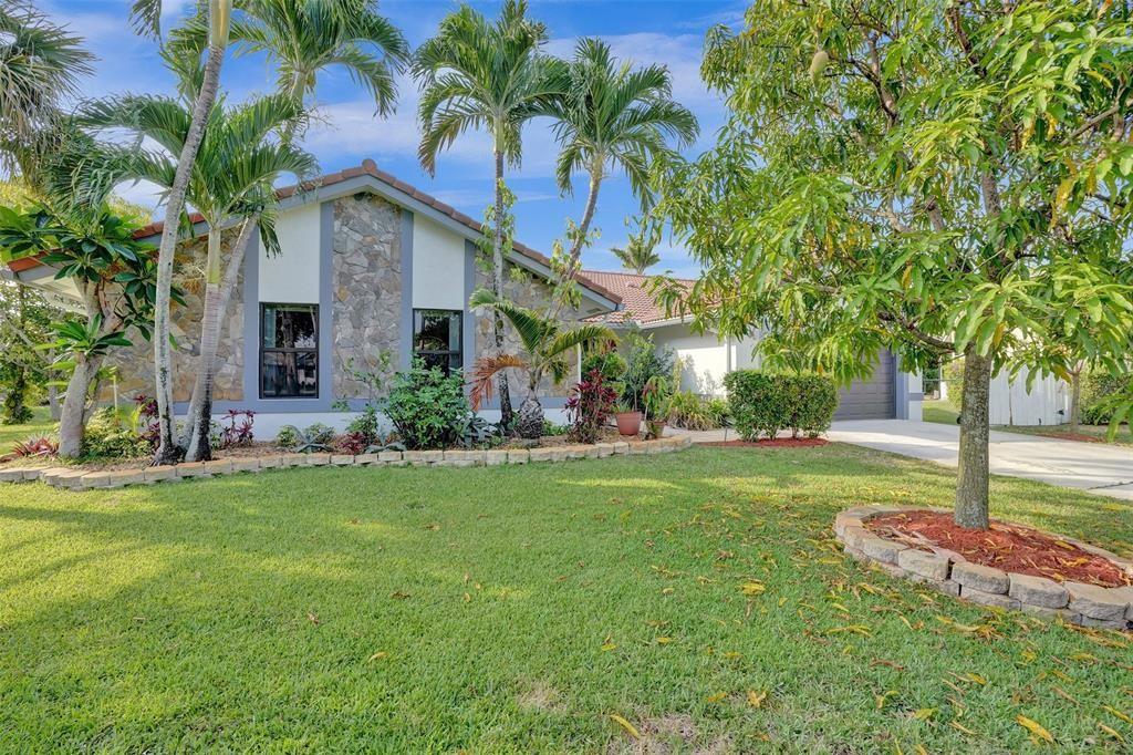 Step into luxury with this beautifully renovated, modern one-story home offering 4 spacious bedrooms, 2.5 designer bathrooms and 2,566 sqft of living space located on a large 14,498 sq ft corner lot in a quiet cul-de-sac in the NO HOA Crossings community of Coral Springs. This home features a bright, open layout with vaulted ceilings, large living and dining areas, and oversized bedrooms throughout. Fully remodeled kitchen with modern cabinetry, ample counter space, and stainless steel appliances. This residence is move-in ready with NEW insulated impact windows and doors , an impact garage door, NEW AC unit, Water heater and Roof with lots of life. Enjoy great water views from your backyard oasis, complete with lush fruit trees and ample space to add your dream pool. This home has it all.