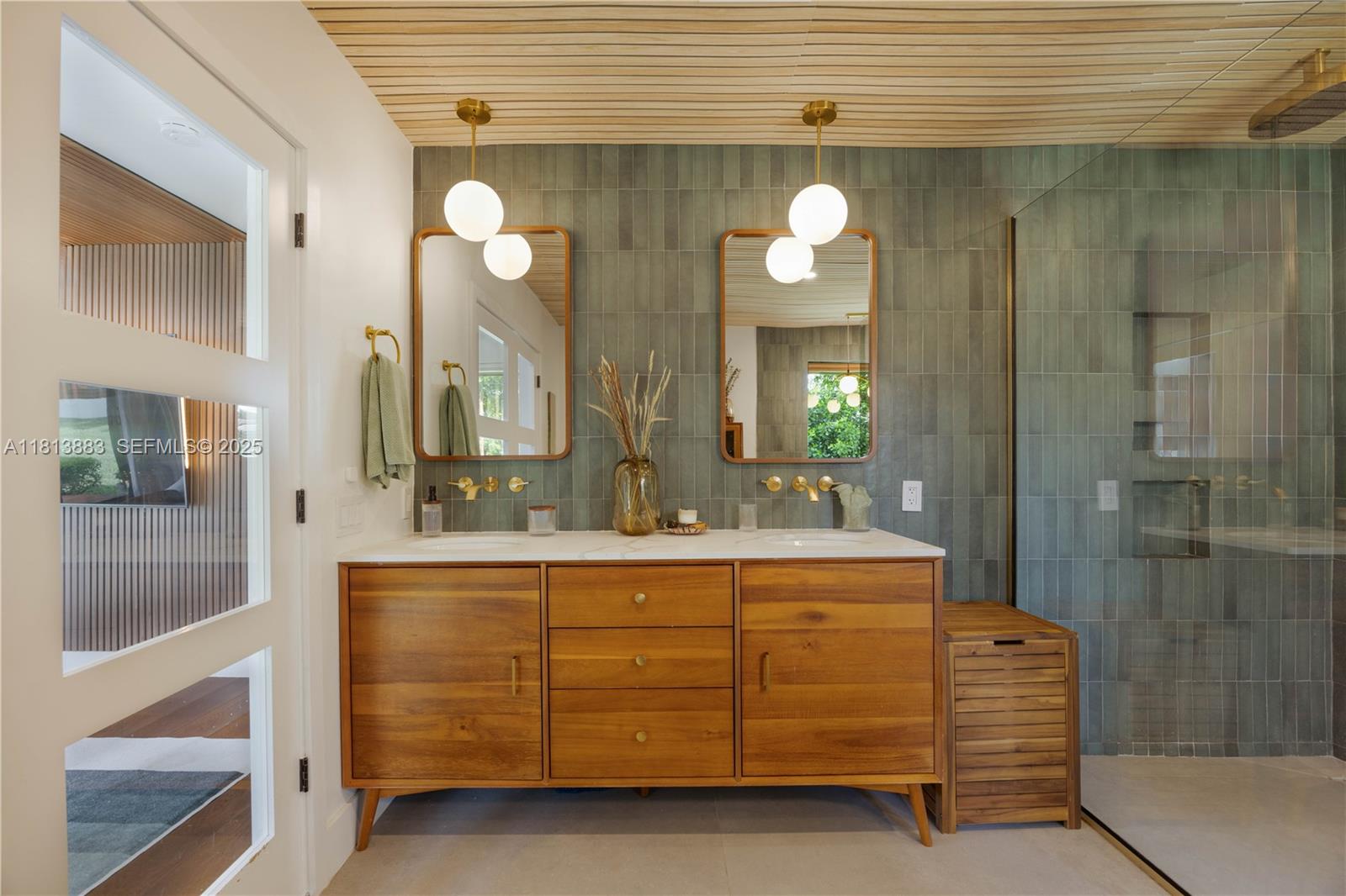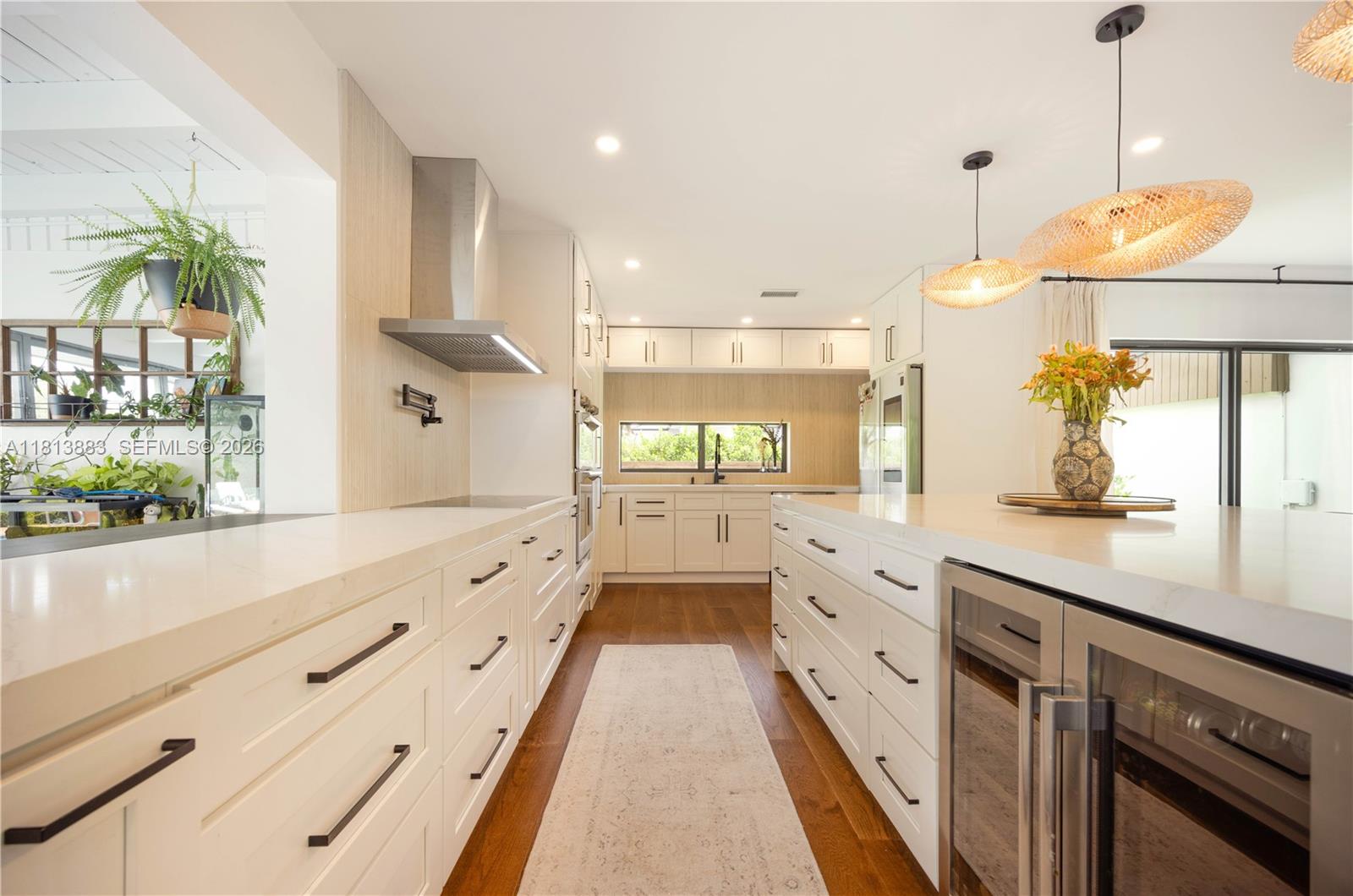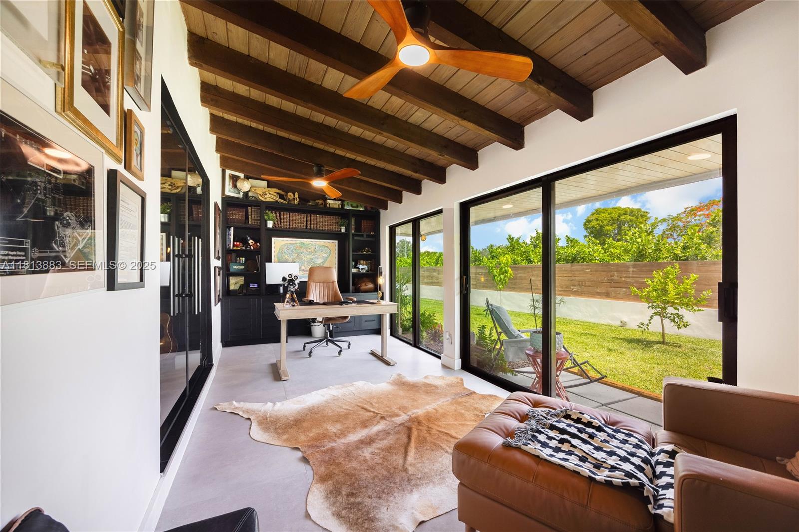 Meticulously renovated and truly turnkey, this 4-bedroom + office + TV room, 3.5-bath pool home sits on a fully fenced 25,353 SF cul-de-sac lot in the highly sought-after Baptist Hospital neighborhood. Gated for privacy and surrounded by lush landscaping, the home welcomes you with a tranquil koi pond and expansive circular driveway. Inside, a dramatic atrium courtyard fills the living spaces with natural light and tropical charm. The home features multiple living and dining areas, a custom-designed office, a fully reimagined chef’s kitchen with high end appliances, oversized eat-in island with storage, hidden walk in butler’s pantry, and a sleek laundry room. All three full bathrooms have been rebuilt with high-end finishes. Major upgrades include new hurricane-impact windows and doors (including garage), all-new plumbing and electrical, new ductwork, insulation, HVAC system, Ethernet wiring to multiple points throughout the home, smart lighting, and custom paneling. Outdoors, enjoy a resurfaced pool, landscape lighting, fruit tree grove, koi pond, and total privacy. All major systems replaced within the past 2 years. Move-in ready and built to the highest standard.