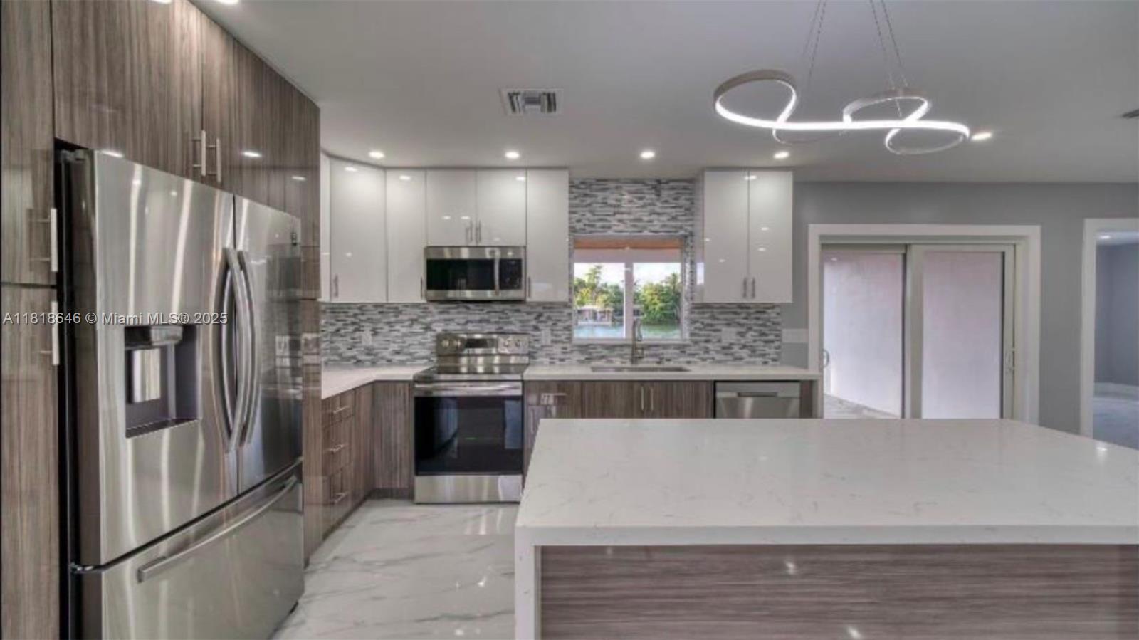 NO HOA. This charming and completely remodeled 3-bedroom, 2-bath home offers stunning lake views and ample space throughout the property. Its interior features porcelain tile floors, a separate laundry room, a modern kitchen with a large center island, plus great cabinet storage. The sink is framed by a window, providing a serene lake view. The living room includes a large sliding glass door that opens to a generous fenced backyard with an above-ground pool. Located in a quiet neighborhood surrounded by nature, excellent schools, and a family-friendly atmosphere, with proximity to the beach and the new YMCA. This home has a carport space, plus three parking spaces. Equipped with solar panels, offers excellent energy efficiency and lower utility costs. Assumable FHA loan at 2.875%!!!