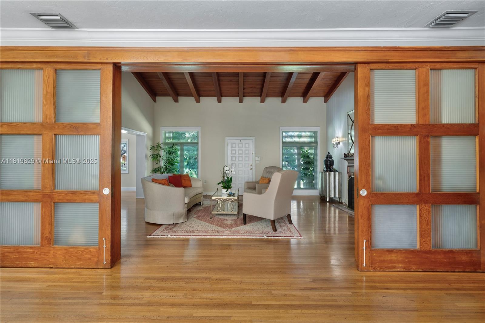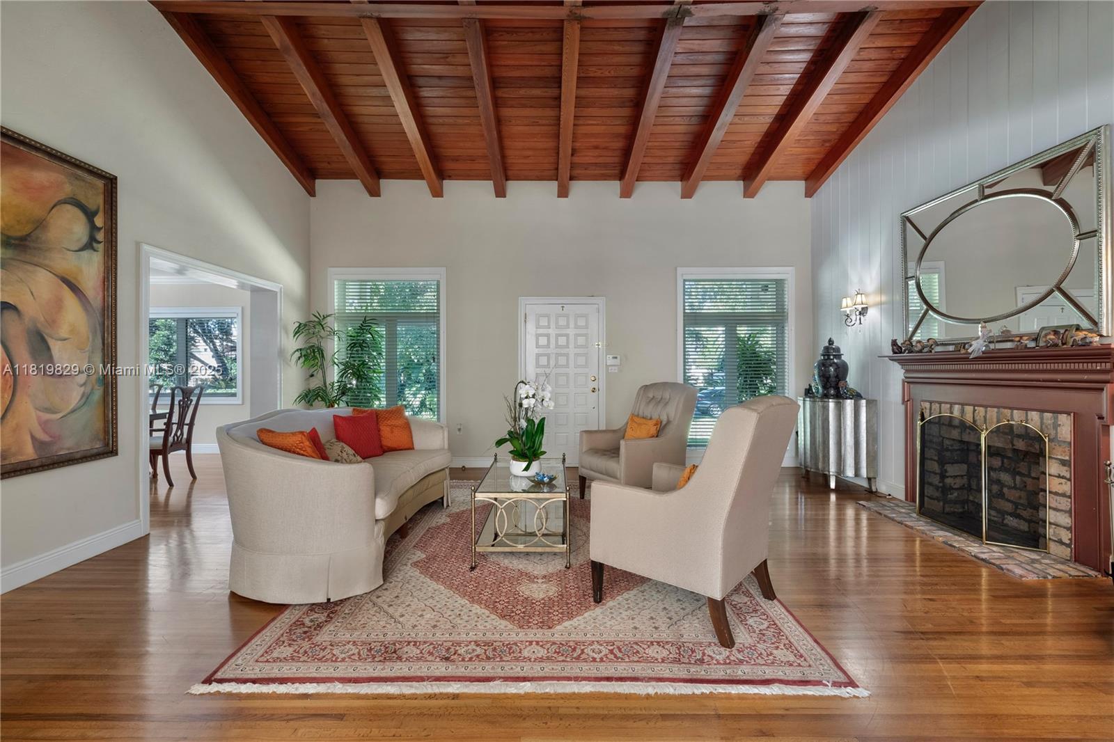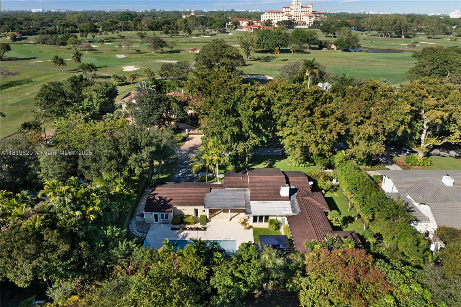 Situated on a double lot (18,000SF) across from the Biltmore Golf Course on Mariola Court, this exceptional home offers a blend of privacy and prime location on a peaceful street. Vaulted ceilings in the living room create an airy, open feel, while the expansive primary suite features a sitting area, two walk-in closets, double sinks, a soaking tub, and a spacious shower. Layout consists of the Primary Suite + 2 bedrooms, then 2 separate live-in quarters on service side of the home. Perfect for outdoor living, a private retreat with sparkling pool, a large covered terrace, and a detached gazebo with outdoor cooking. Impact windows and doors provide protection and efficiency, while a two-car garage adds convenience. A rare opportunity to enjoy Coral Gables living in a sought-after setting.