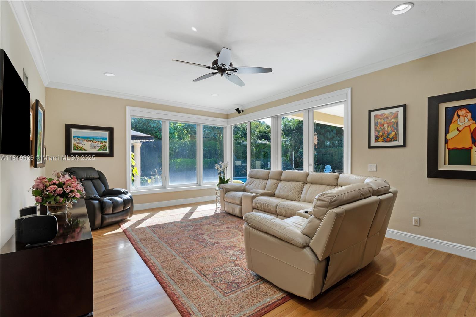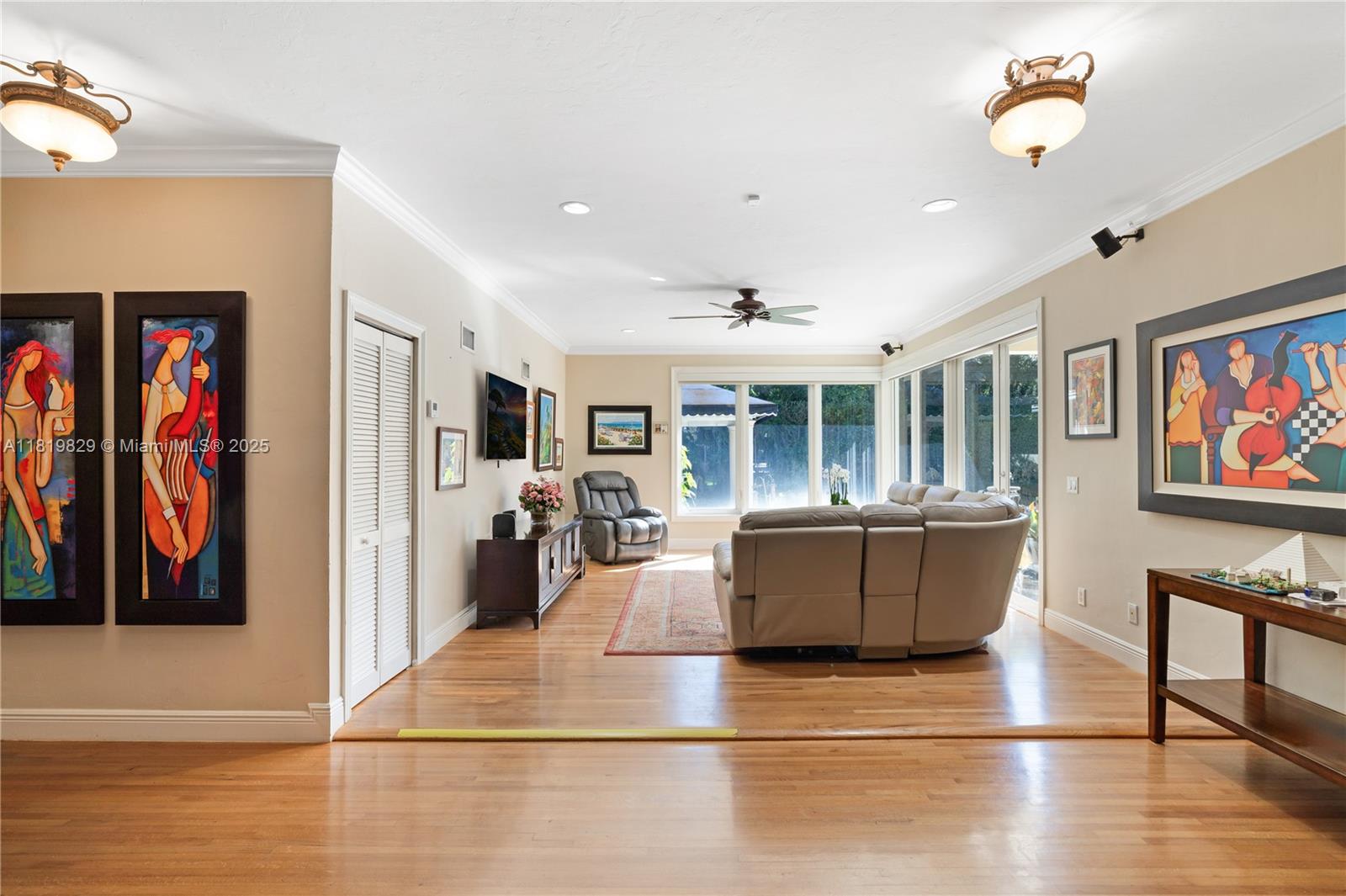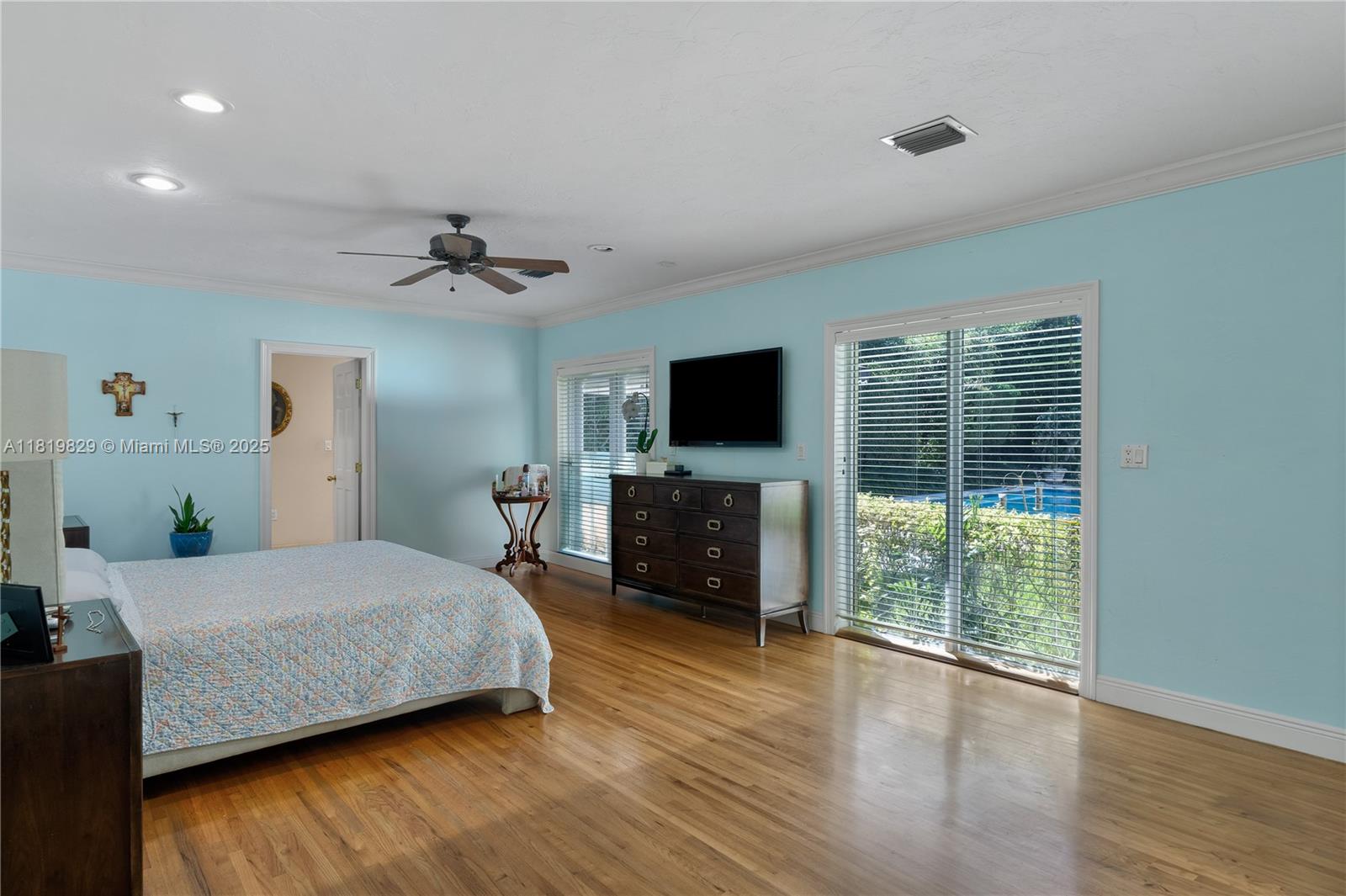 Situated on a double lot (18,000SF) across from the Biltmore Golf Course on Mariola Court, this exceptional home offers a blend of privacy and prime location on a peaceful street. Vaulted ceilings in the living room create an airy, open feel, while the expansive primary suite features a sitting area, two walk-in closets, double sinks, a soaking tub, and a spacious shower. Layout consists of the Primary Suite + 2 bedrooms, then 2 separate live-in quarters on service side of the home. Perfect for outdoor living, a private retreat with sparkling pool, a large covered terrace, and a detached gazebo with outdoor cooking. Impact windows and doors provide protection and efficiency, while a two-car garage adds convenience. A rare opportunity to enjoy Coral Gables living in a sought-after setting.