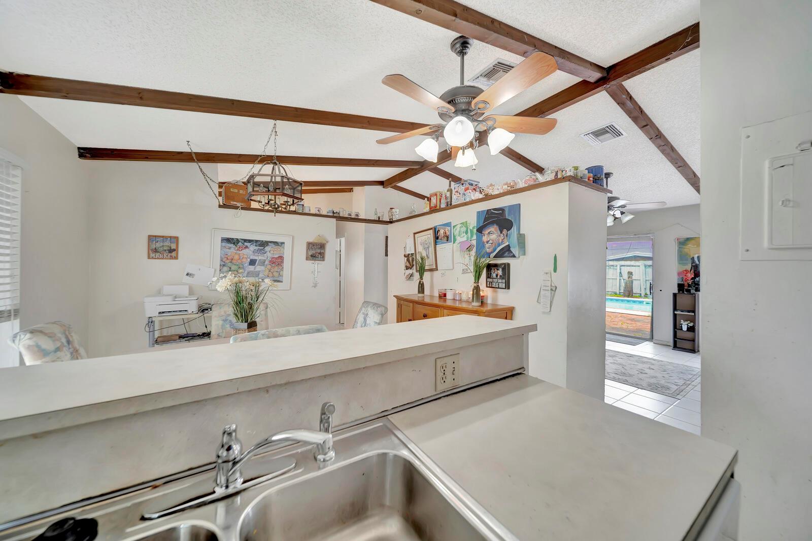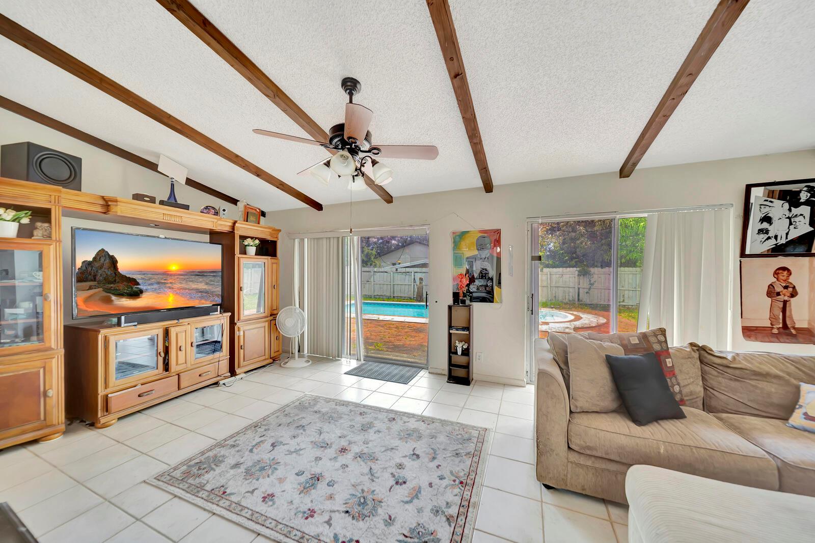 WOW!!! Incomparable Value! Just needs some TLC, some updating, paint, some imagination and a Home Depot credit card, this will be your dream home!! Home is full of potential to make it your own design & is ready for your personal touch! TRUE 3-bedroom, 2-bathroom pool home, PLUS 1-car garage includes a partially converted area (not included in the living square feet), easily used as a 4th bedroom, home office, or gym with this versatile bonus space. Situated on a double cul-de-sac so no drive through traffic. Circular driveway and straight one too! Home features an open & spacious floor plan w/huge vaulted/cathedral ceiling and a gorgeous, exposed beam ceiling. Fenced in backyard has a large sparkling pool. Automatic sprinkler system for the front and back. Inside washer and dryer.