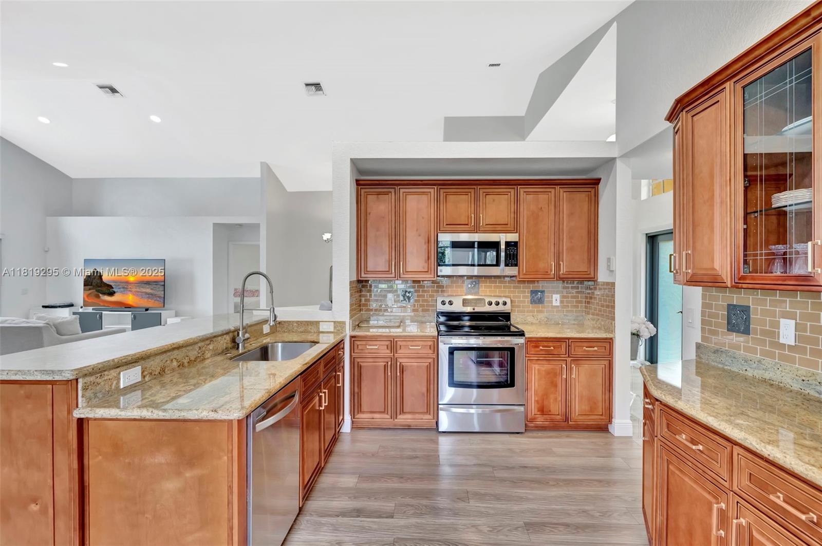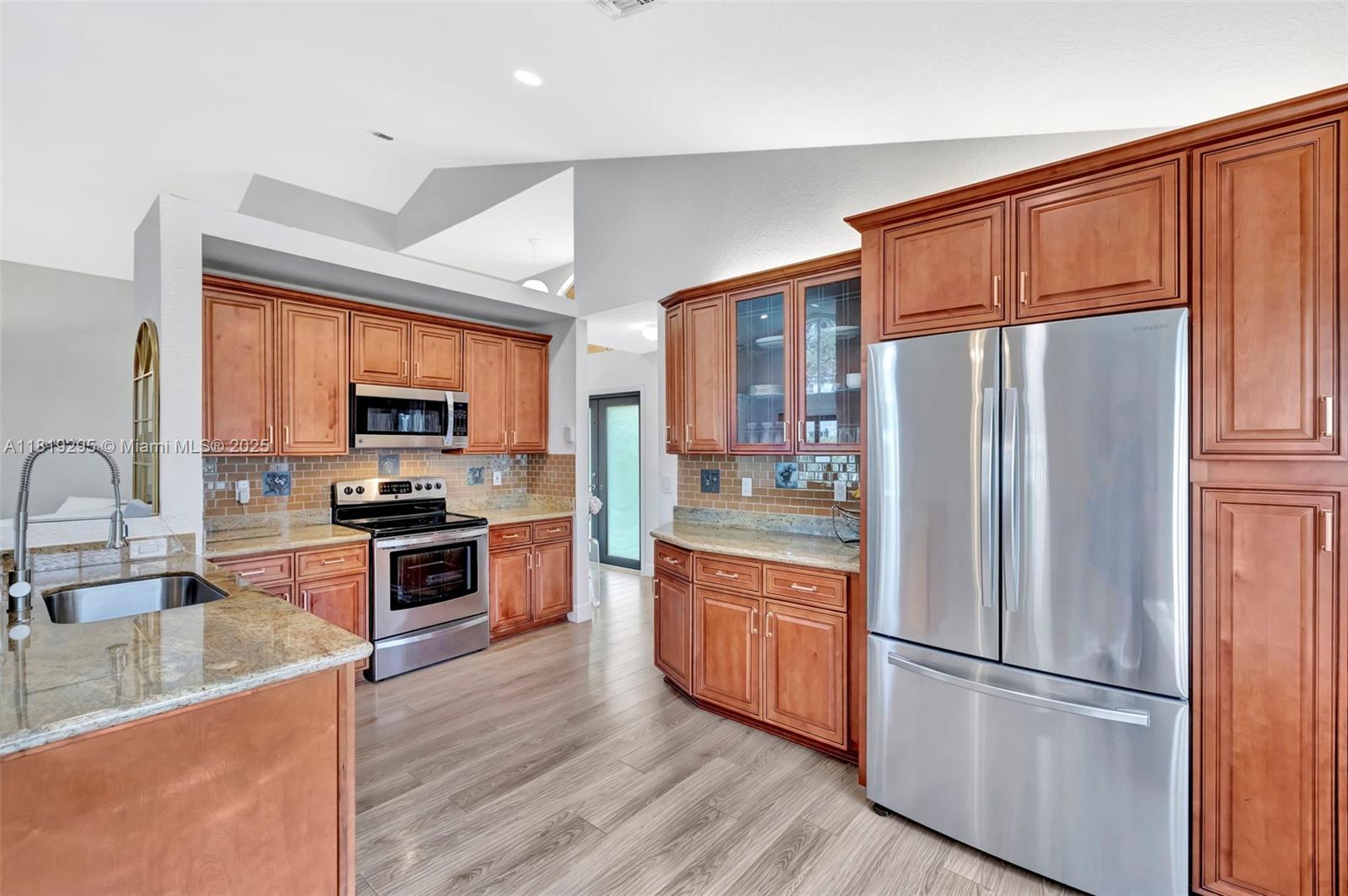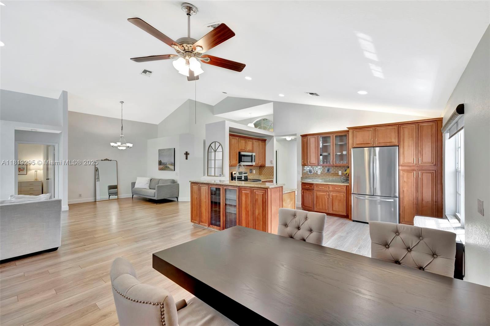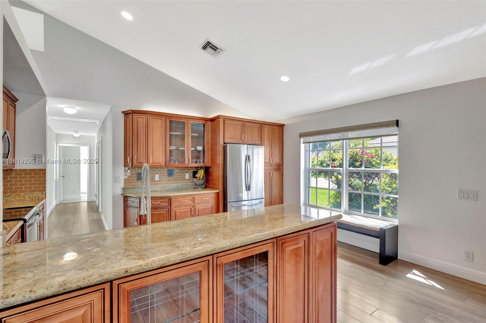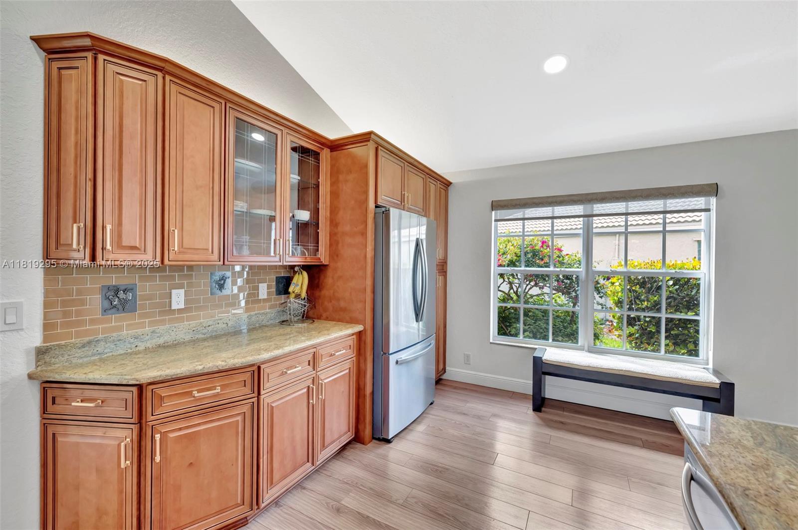 Welcome to this sunlit 3BR/2BA + den home in the heart of Weston’s gated Captiva Cay! Full of charm & smart upgrades, it offers an open layout with remodeled kitchen (2017), updated guest bath (2022), & expanded living space from a removed wall. Enjoy Nest thermostat, Ring doorbell & newer appliances. Fresh neutral paint (2023), new LVP flooring in BRs & den/office, accordion shutters & select impact-rated features—front door, 1BR window & rear slider. Fenced yard with garden views & room for pool. Garage flood light & rain gutters. Roof cleaned (2025); A/C & WH (2017). Enclosed patio/den adds storage. Pet-friendly. Walk to Weston Town Center with restaurants & shops. Close to parks, major roads & top schools.