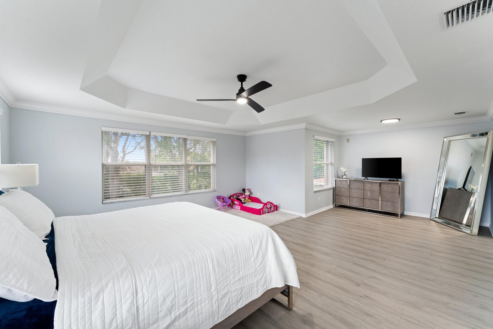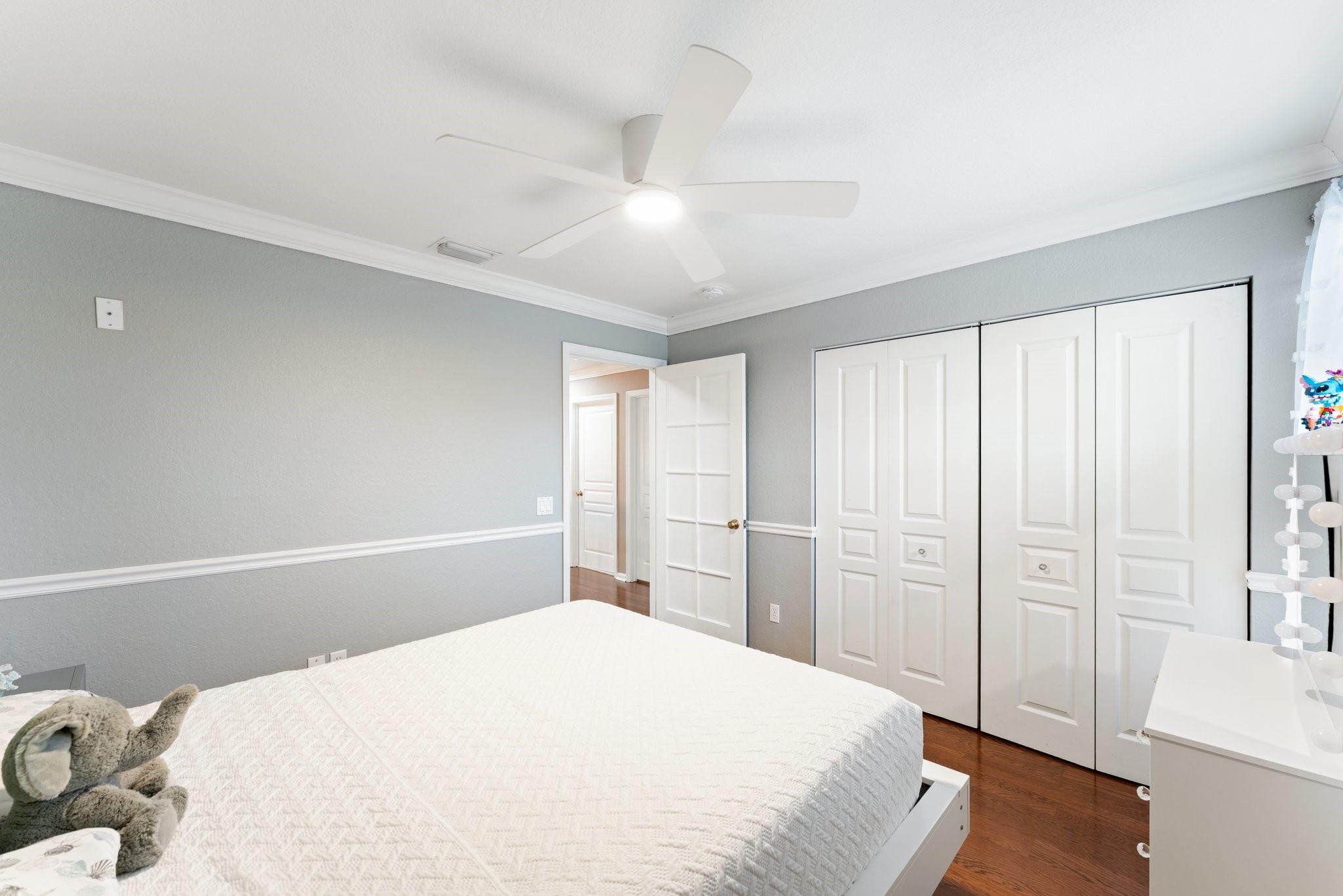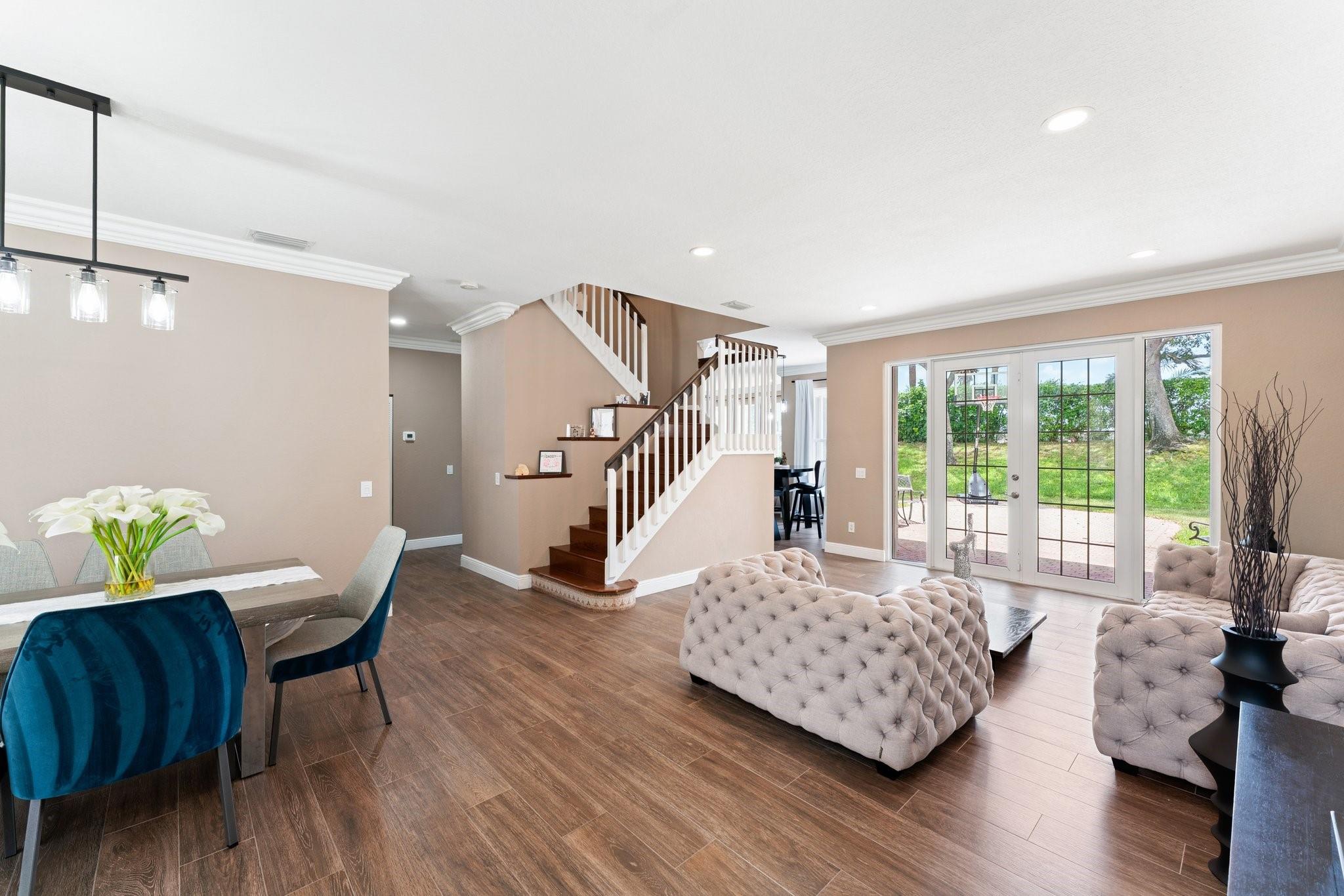 This stunning 5 bedroom, 3 bath home blends comfort and style. The first floor features upgraded flooring, two living/dining areas, and a chef’s kitchen with granite counters, stainless appliances, island seating, large pantry, and a bay window breakfast nook with backyard views. A guest bedroom, full bath, and laundry room with new washer/dryer complete the main level. Upstairs, the grand master suite offers a tray ceiling, sitting area, and remodeled spa-like bath with dual sinks, roman tub, and separate shower. Enjoy resort style amenities: pool, tennis, pickleball, basketball, and gym.