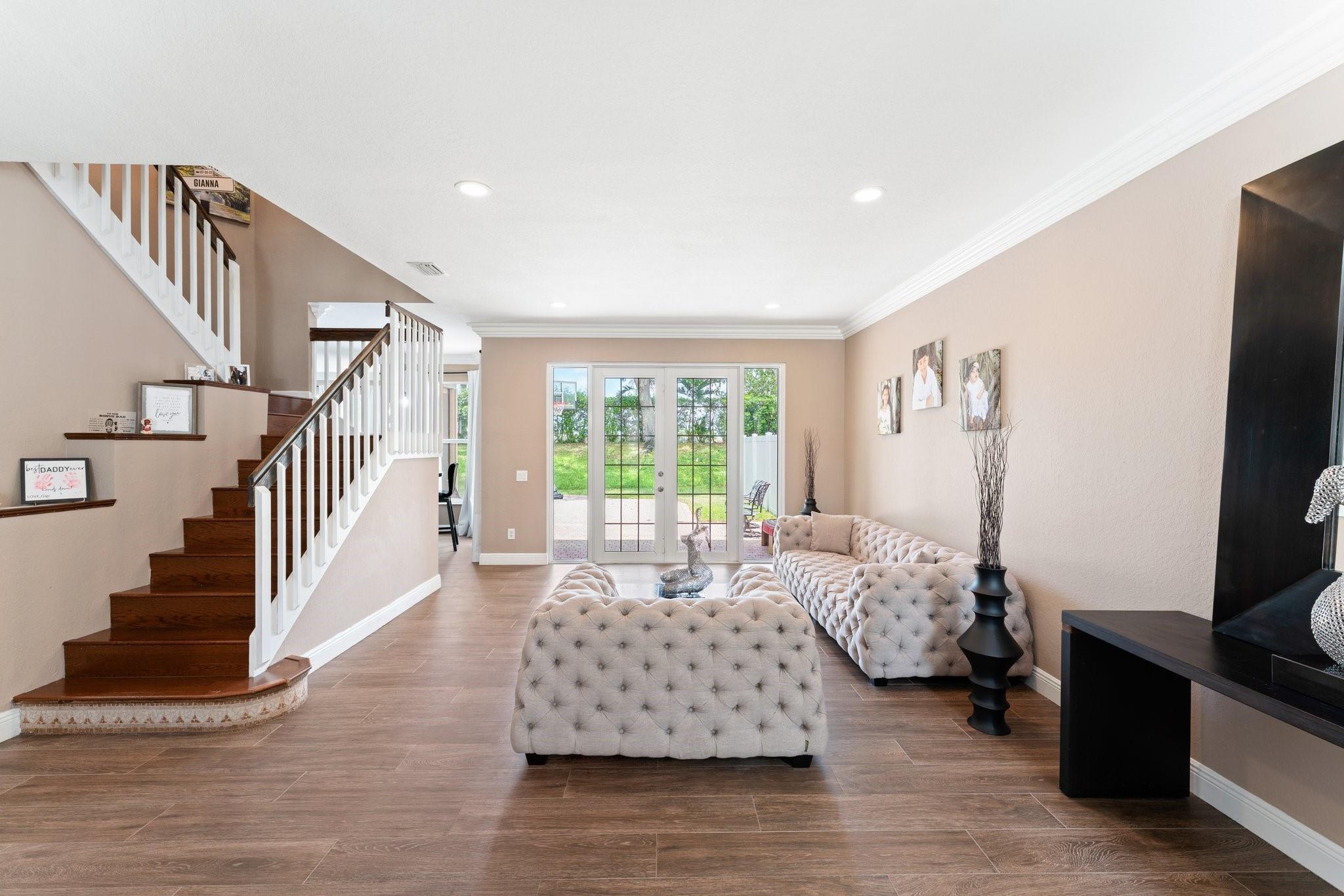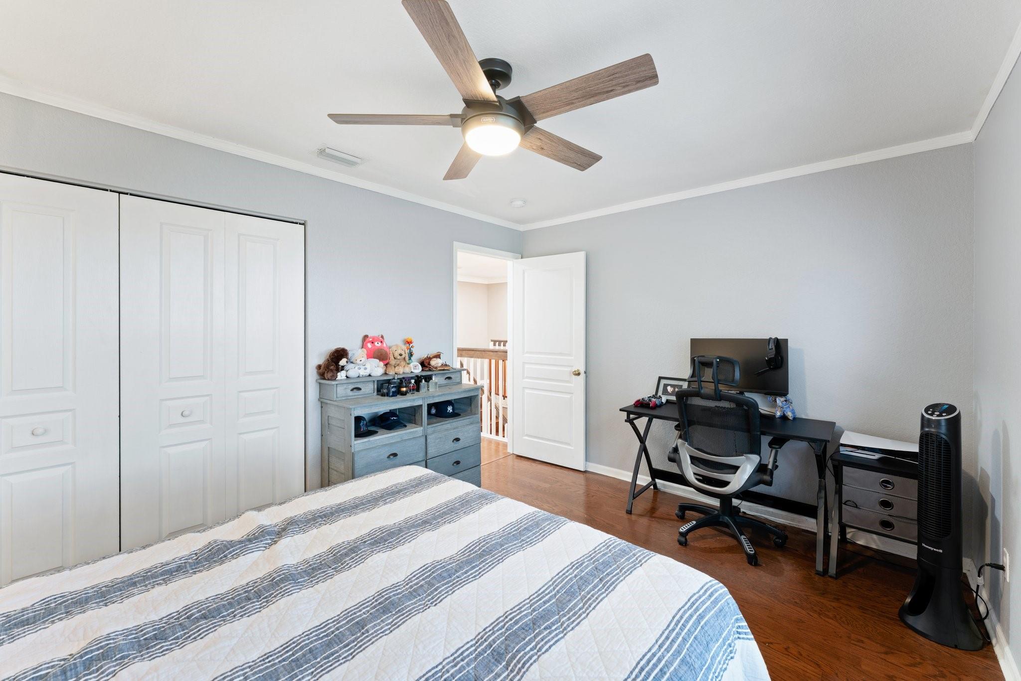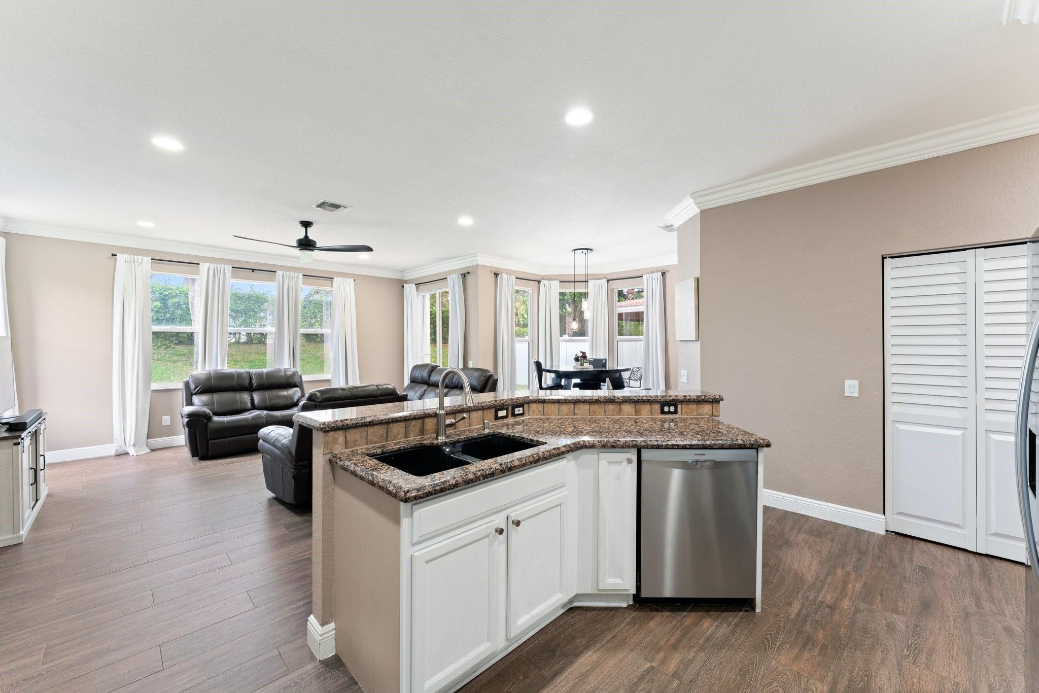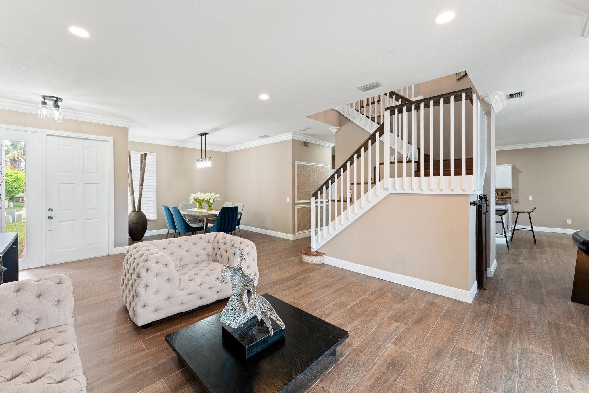 This stunning 5 bedroom, 3 bath home blends comfort and style. The first floor features upgraded flooring, two living/dining areas, and a chef’s kitchen with granite counters, stainless appliances, island seating, large pantry, and a bay window breakfast nook with backyard views. A guest bedroom, full bath, and laundry room with new washer/dryer complete the main level. Upstairs, the grand master suite offers a tray ceiling, sitting area, and remodeled spa-like bath with dual sinks, roman tub, and separate shower. Enjoy resort style amenities: pool, tennis, pickleball, basketball, and gym.