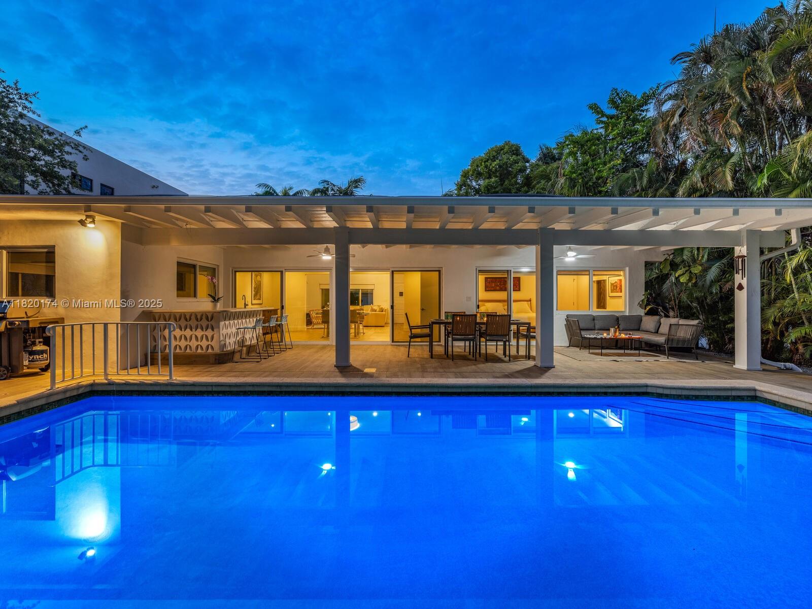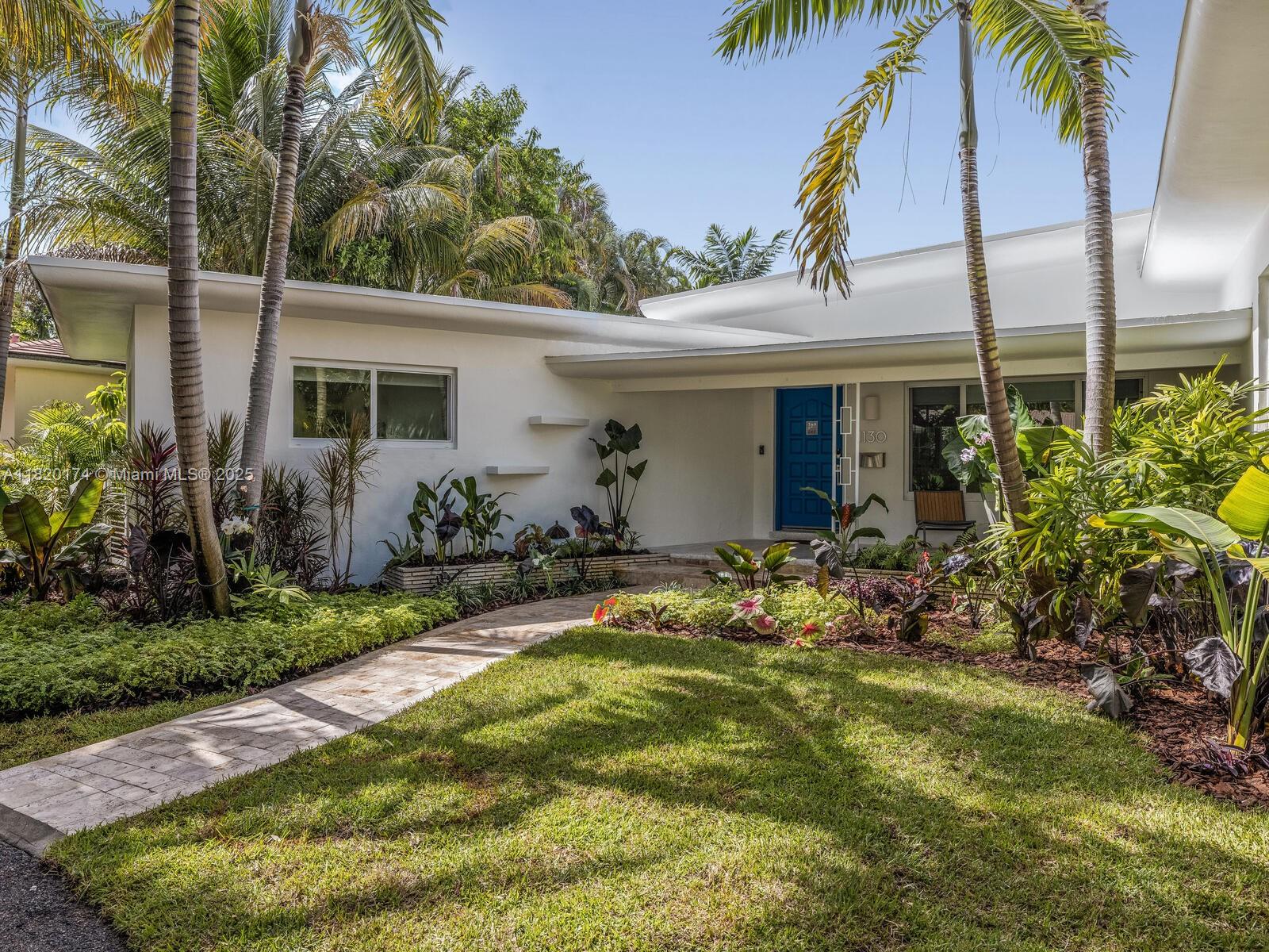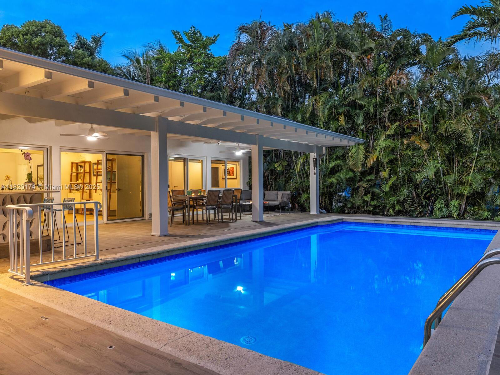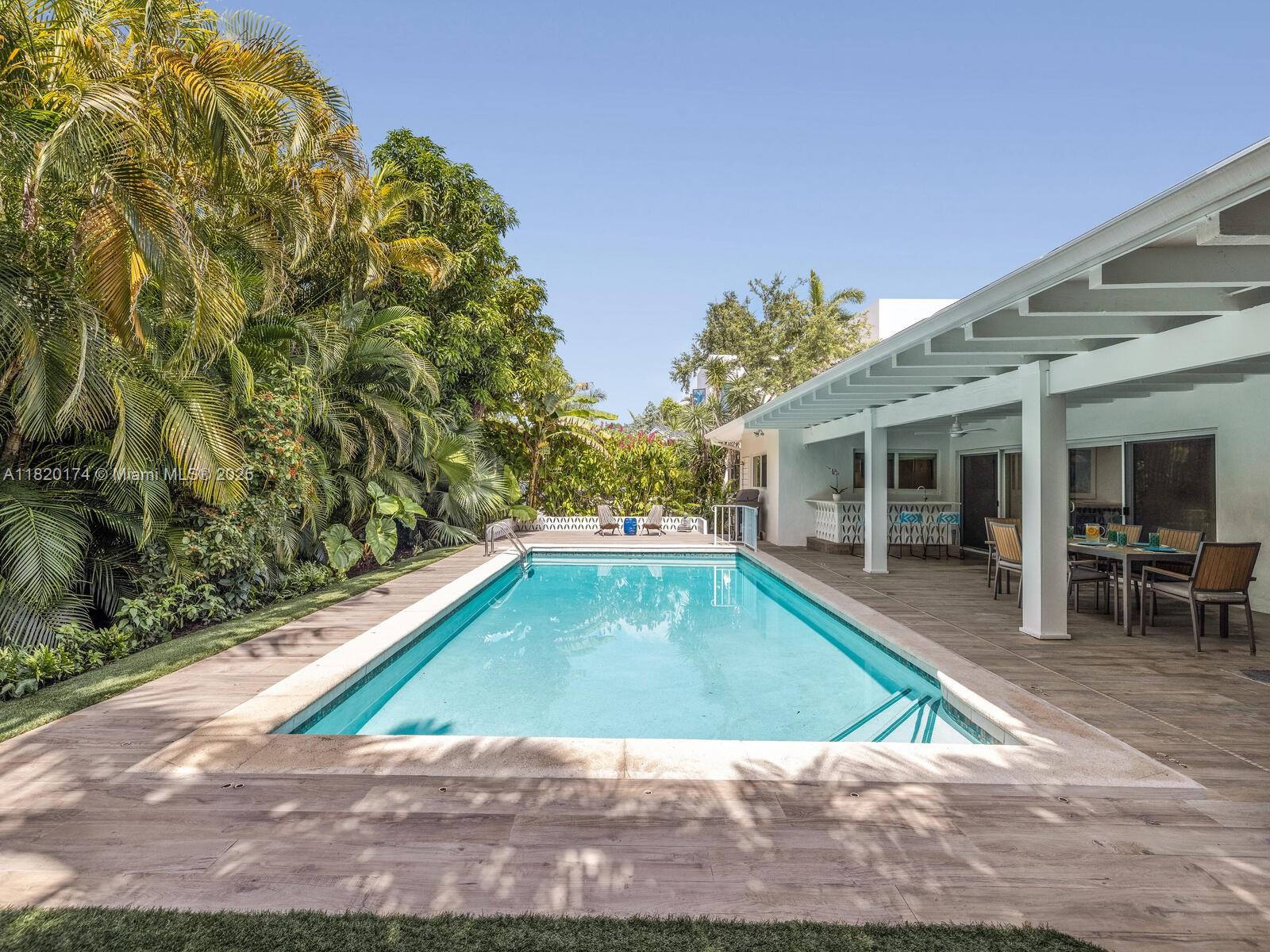 Welcome to The Blue Bay Mid-Century! With ~2,400 SF of interiors, this beautifully updated East Shores, 4-bed, 4-bath tropical modern pool home is an architectural gem with fresh bay breezes, sleek angular lines, and the best of indoor-outdoor living. Enter into bright vaulted living, leading to large dining with wall-to-wall sliding doors that open to lushly landscaped gardens, a sparkling heated pool, outdoor shower, covered veranda, and chic breeze-block wet bar. Inside, enjoy the updated eat-in chef’s kitchen with gas range, quartz countertops, wine cooler, and coffee bar. Experience ultimate privacy with the “quadruple-split” plan- one bedroom in each house corner, including the main suite with pool view, walk-in closet, and spacious double vanity bath with walk-in shower. A must see!