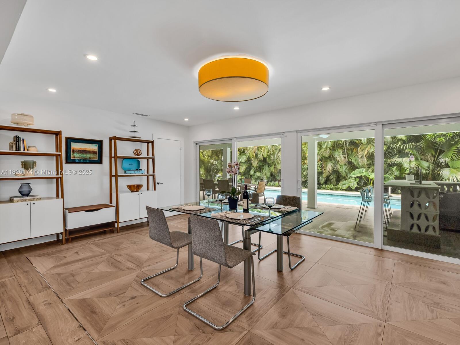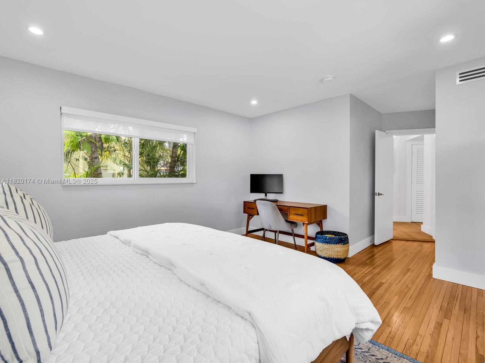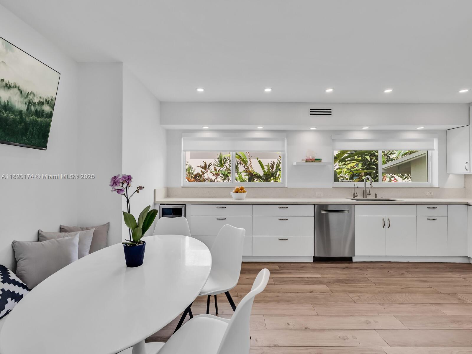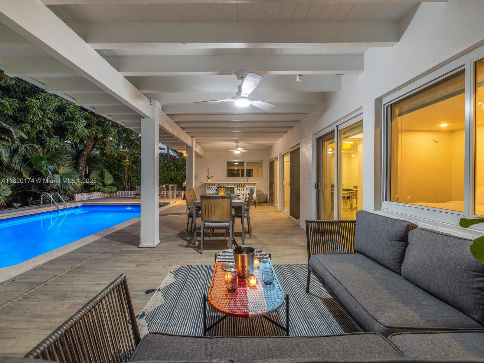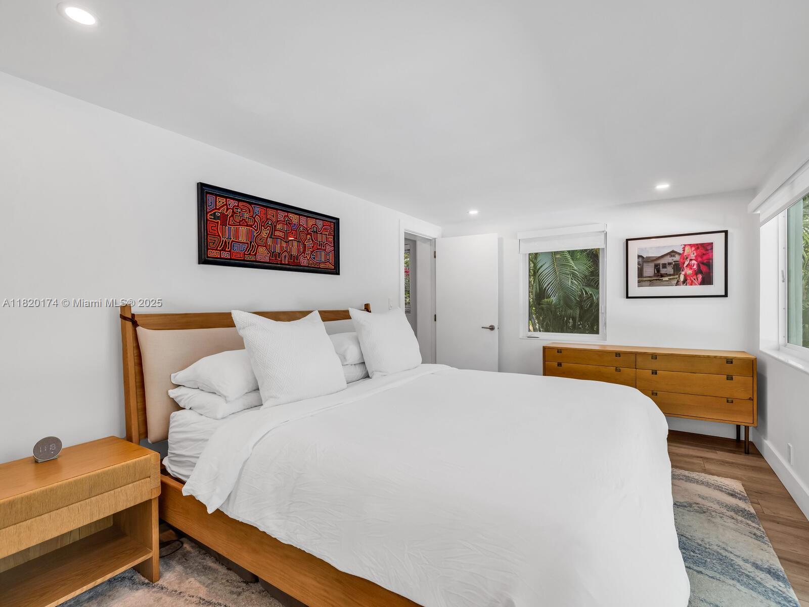 Welcome to The Blue Bay Mid-Century! With ~2,400 SF of interiors, this beautifully updated East Shores, 4-bed, 4-bath tropical modern pool home is an architectural gem with fresh bay breezes, sleek angular lines, and the best of indoor-outdoor living. Enter into bright vaulted living, leading to large dining with wall-to-wall sliding doors that open to lushly landscaped gardens, a sparkling heated pool, outdoor shower, covered veranda, and chic breeze-block wet bar. Inside, enjoy the updated eat-in chef’s kitchen with gas range, quartz countertops, wine cooler, and coffee bar. Experience ultimate privacy with the “quadruple-split” plan- one bedroom in each house corner, including the main suite with pool view, walk-in closet, and spacious double vanity bath with walk-in shower. A must see!