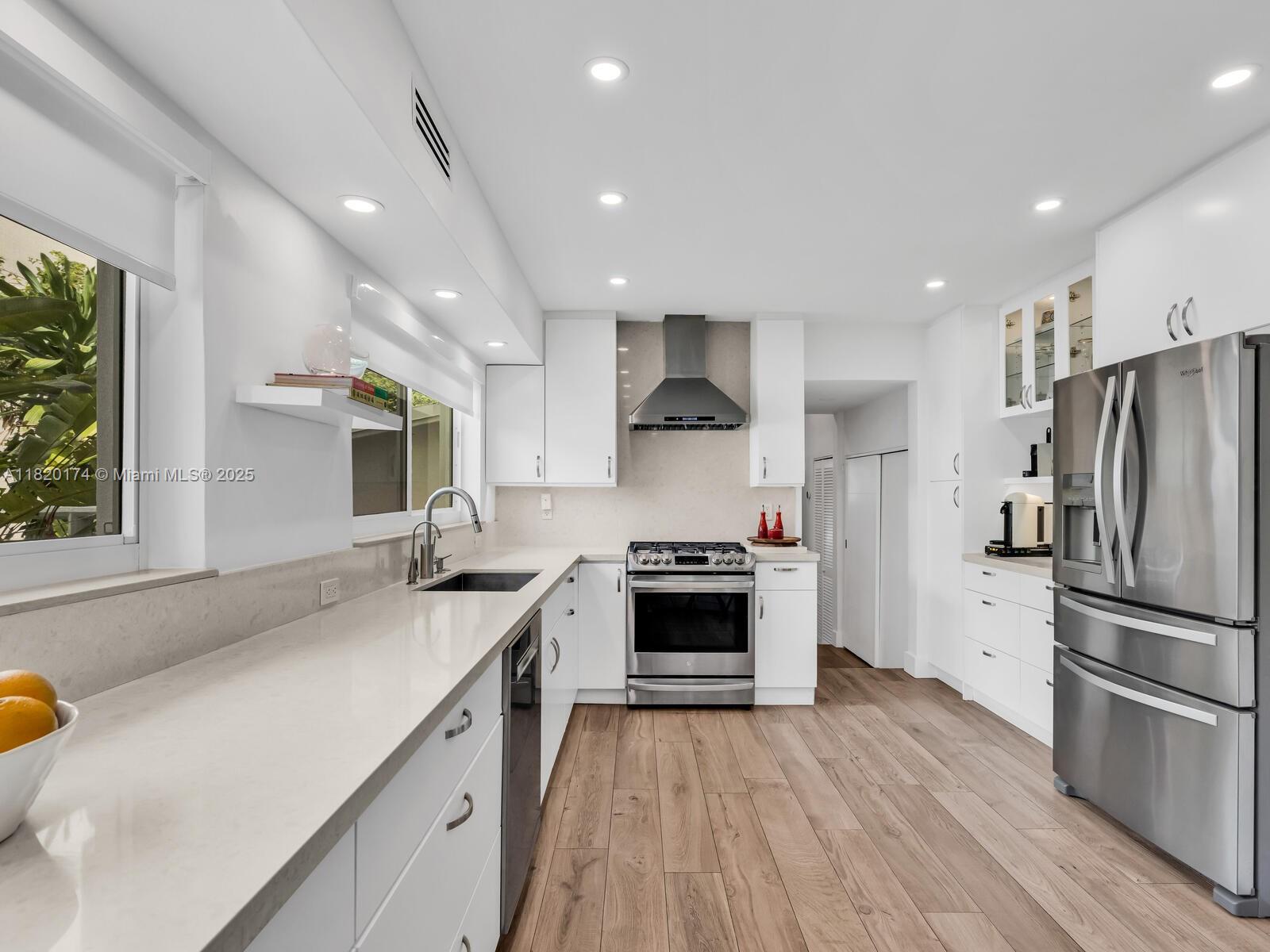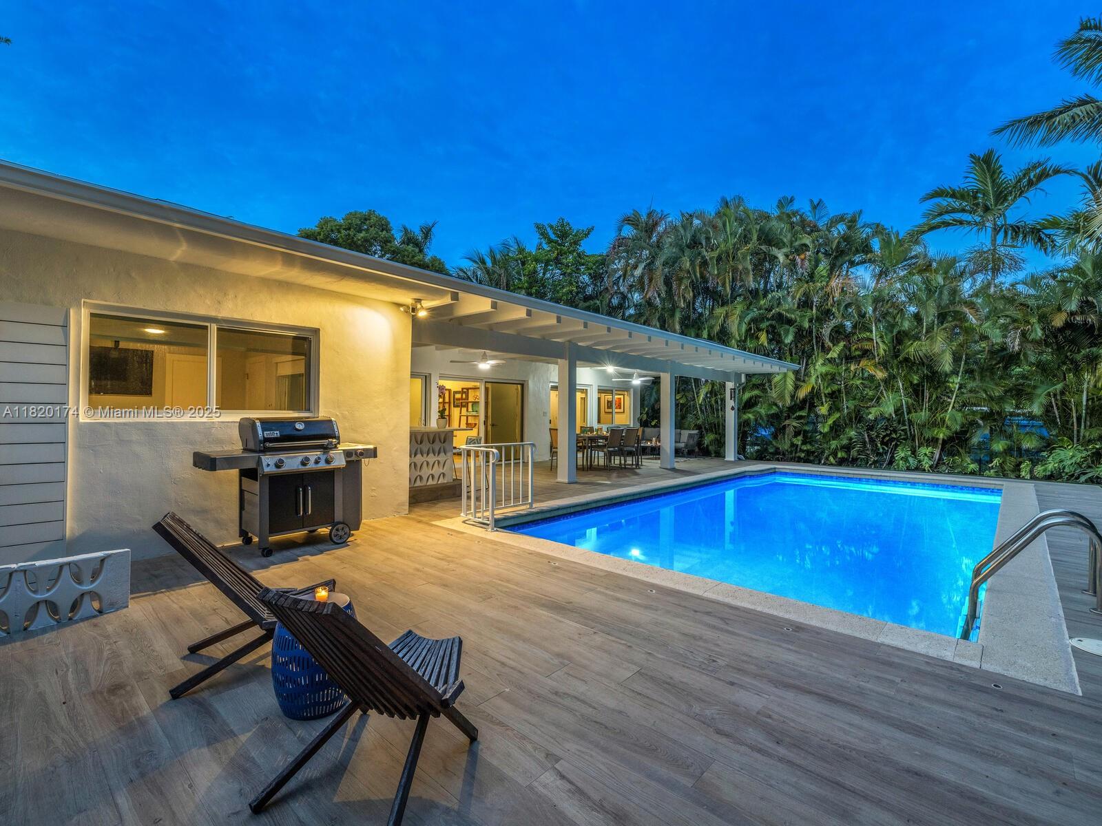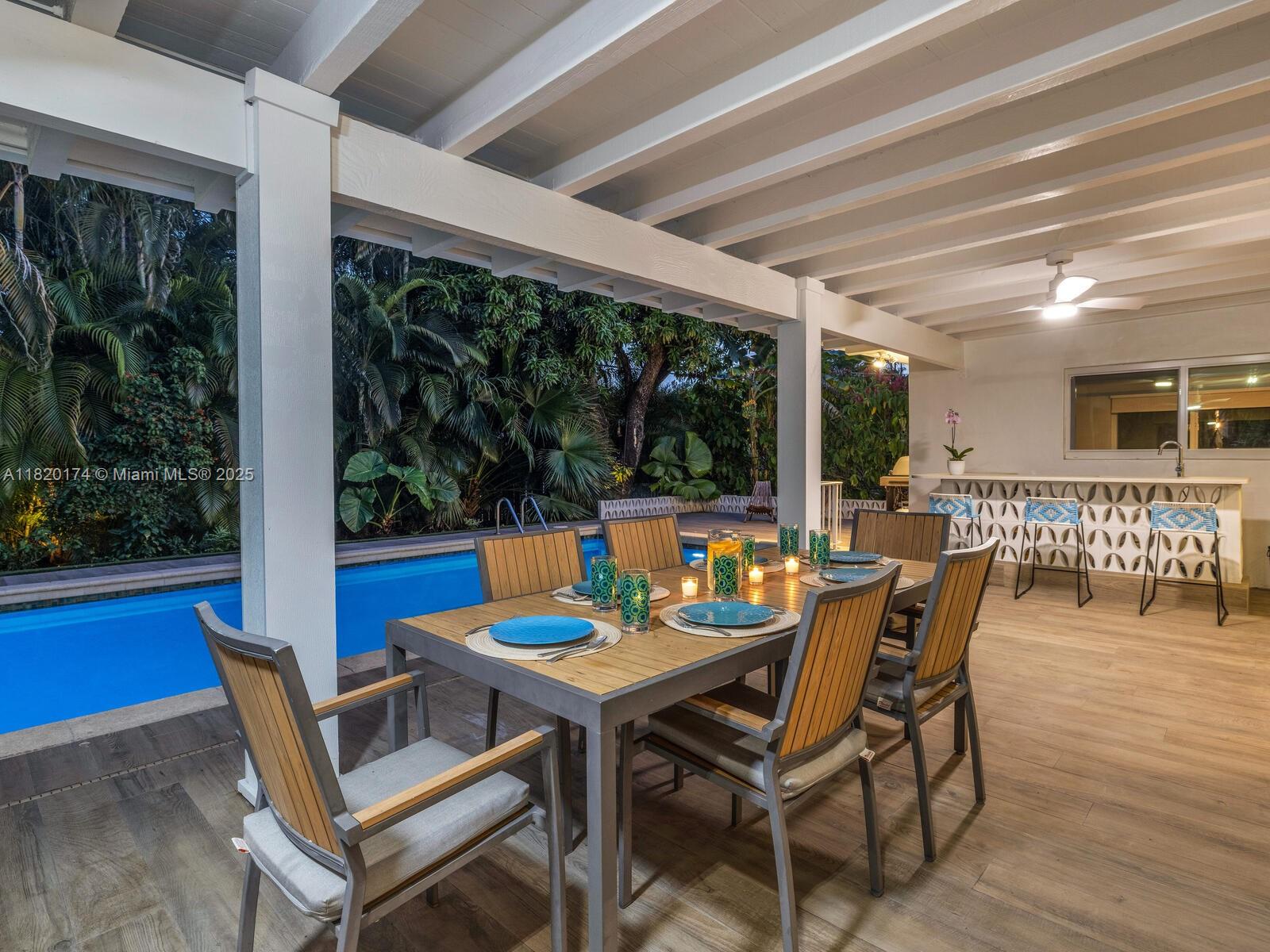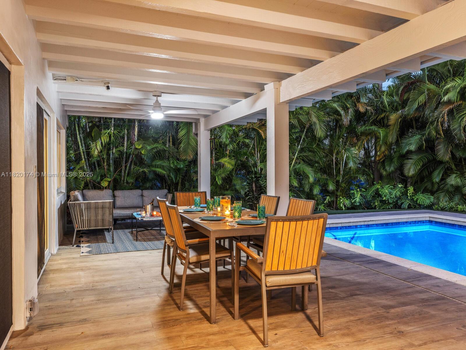 Welcome to The Blue Bay Mid-Century! With ~2,400 SF of interiors, this beautifully updated East Shores, 4-bed, 4-bath tropical modern pool home is an architectural gem with fresh bay breezes, sleek angular lines, and the best of indoor-outdoor living. Enter into bright vaulted living, leading to large dining with wall-to-wall sliding doors that open to lushly landscaped gardens, a sparkling heated pool, outdoor shower, covered veranda, and chic breeze-block wet bar. Inside, enjoy the updated eat-in chef’s kitchen with gas range, quartz countertops, wine cooler, and coffee bar. Experience ultimate privacy with the “quadruple-split” plan- one bedroom in each house corner, including the main suite with pool view, walk-in closet, and spacious double vanity bath with walk-in shower. A must see!